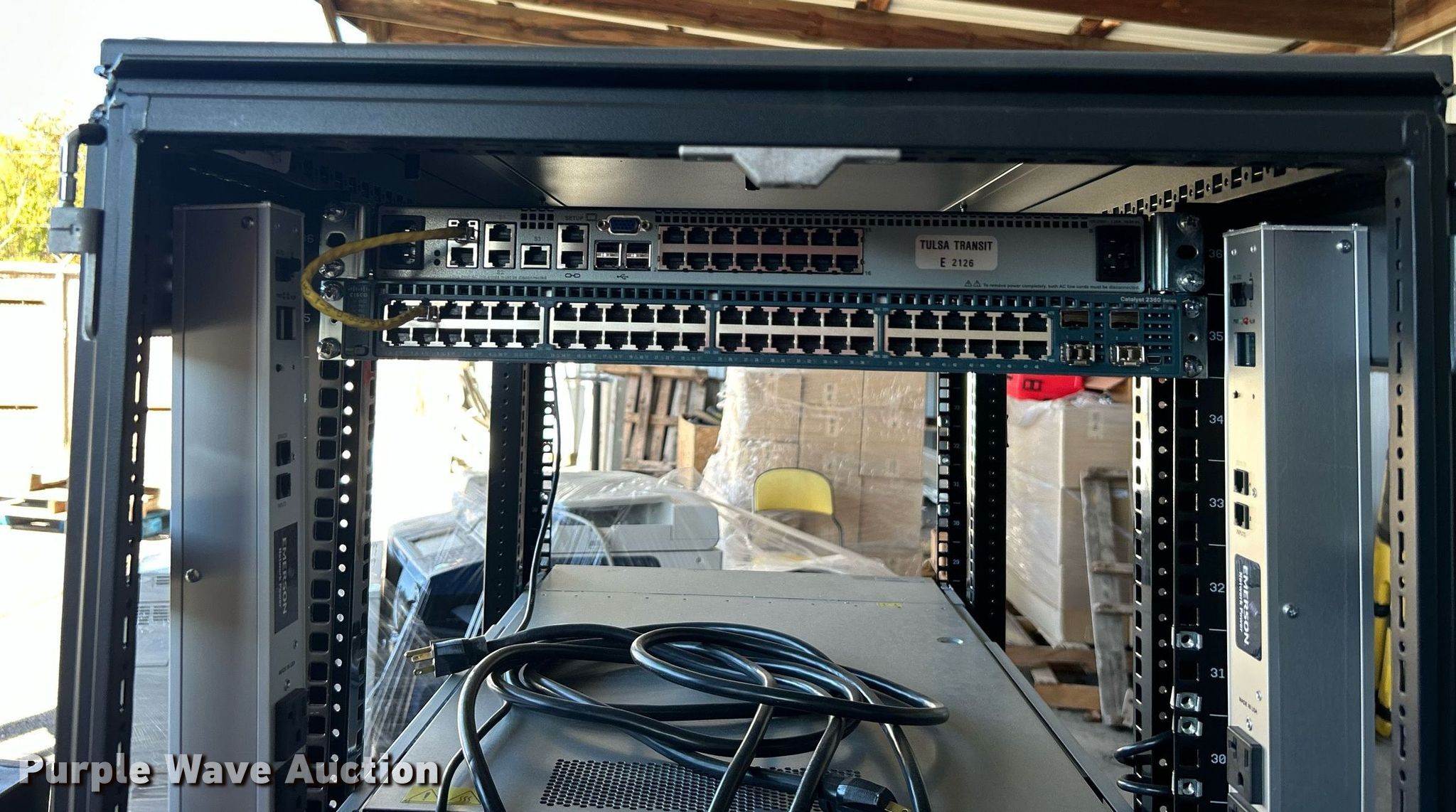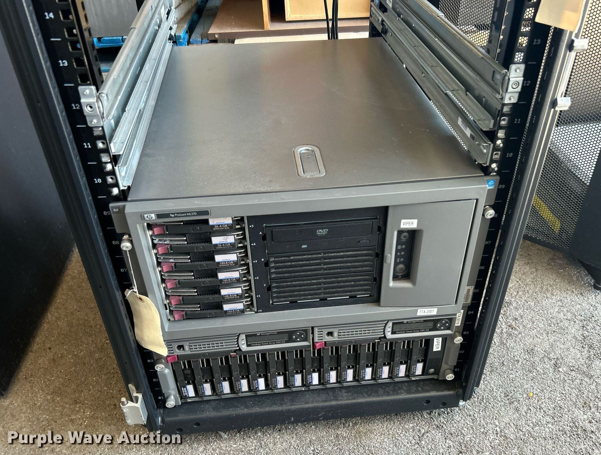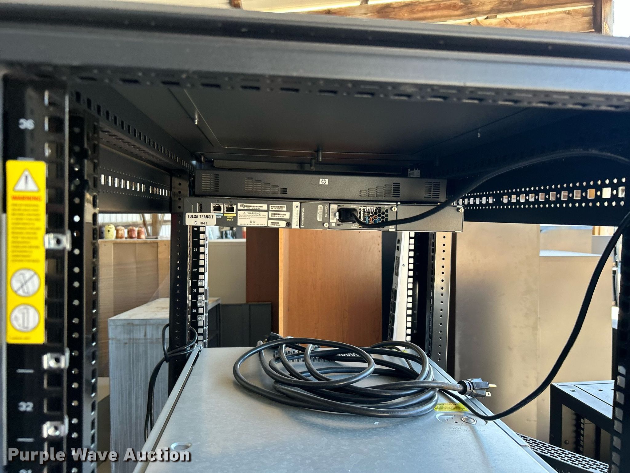 Purple Wave is selling a used Electronics in Oklahoma. This item is a Server racks with the following: Cisco 2960S, (2) HP DL370G6, Eaton 9130, HP ML370, HP Storage Works 500 G2, HP 2360, Unit #: 552