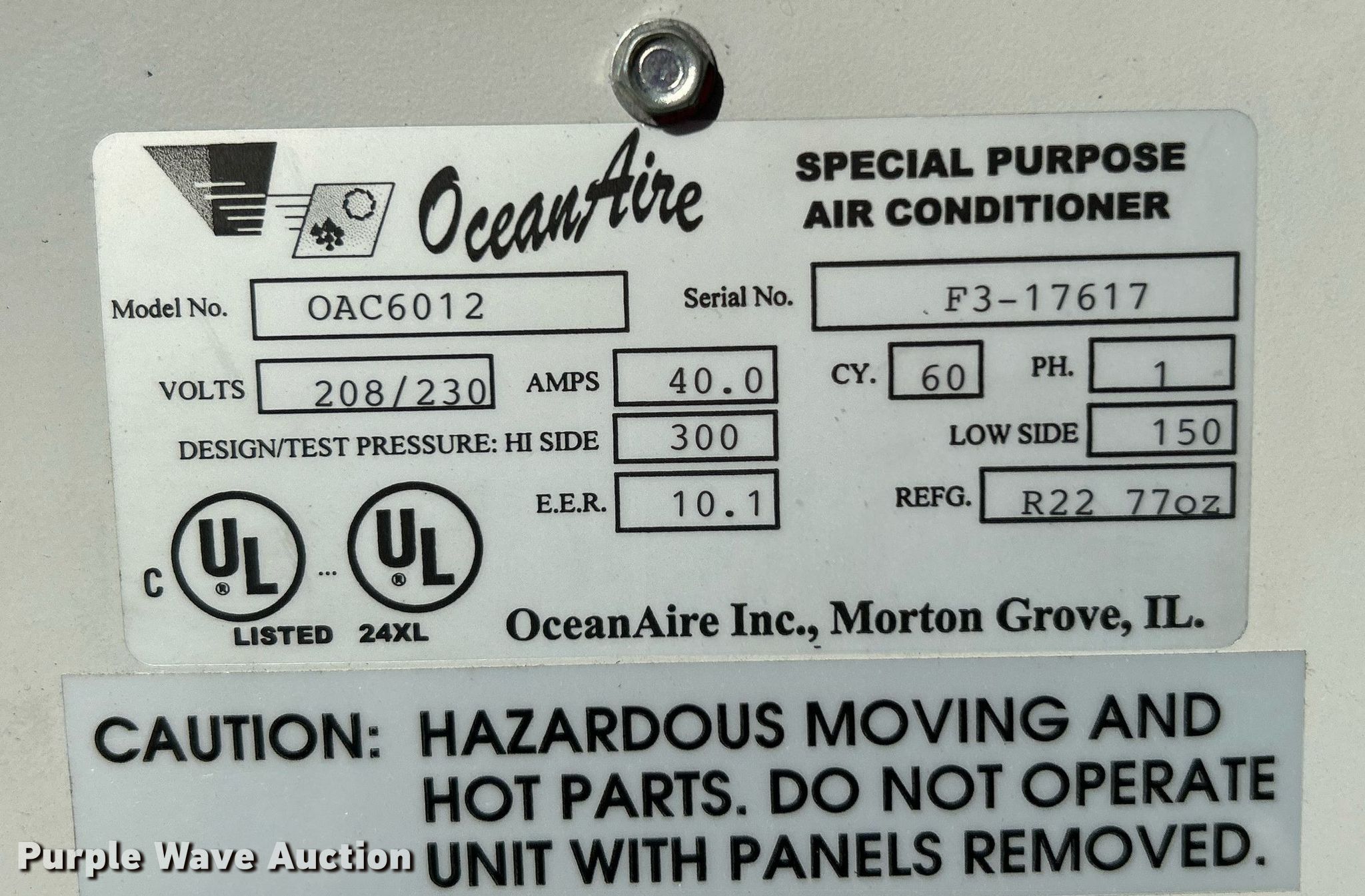Purple Wave is selling a used Tools in Oklahoma. This item is a Oceanaire OAC6012 air conditioner with the following: Unit #: 500, Unknown operating condition