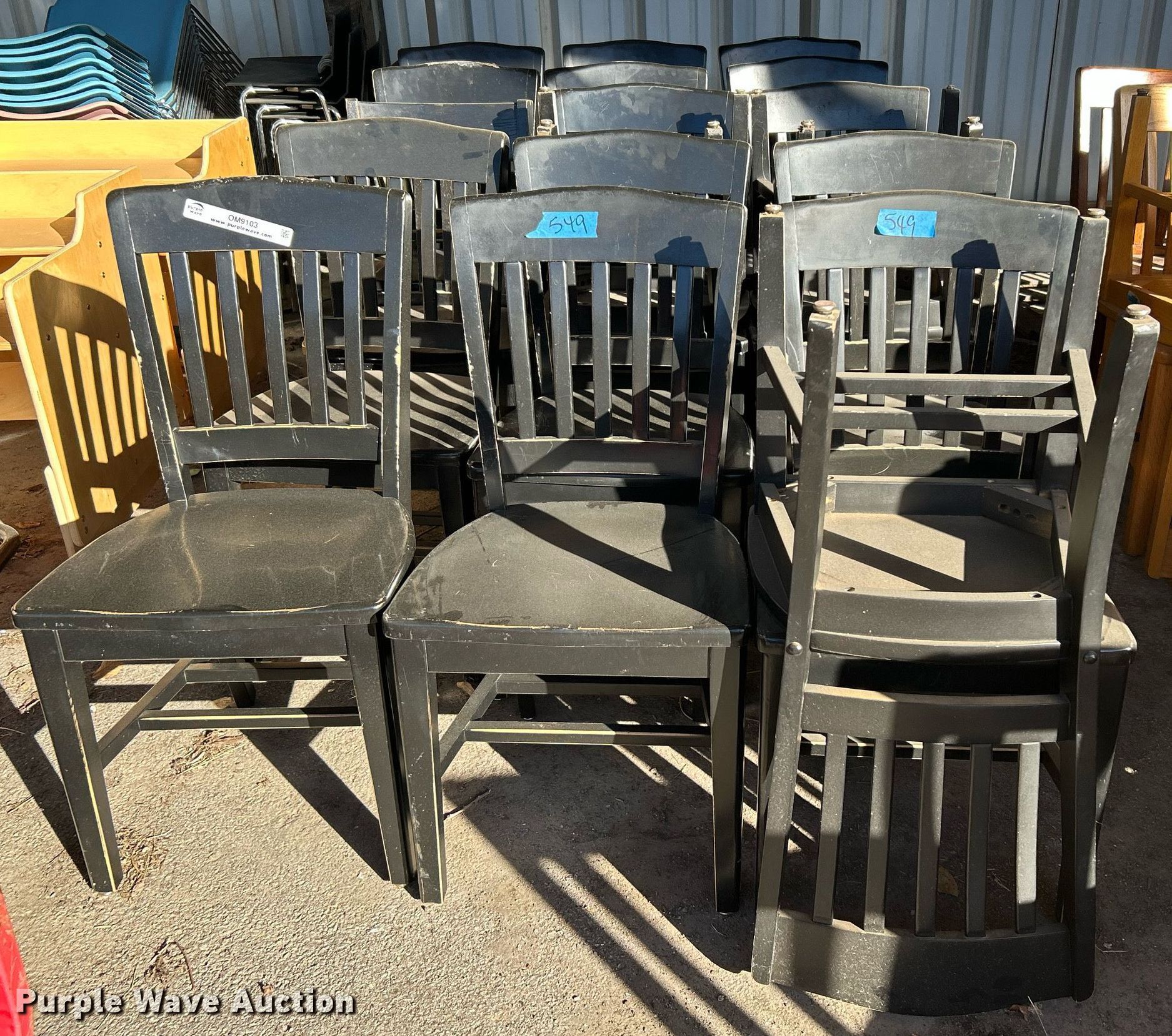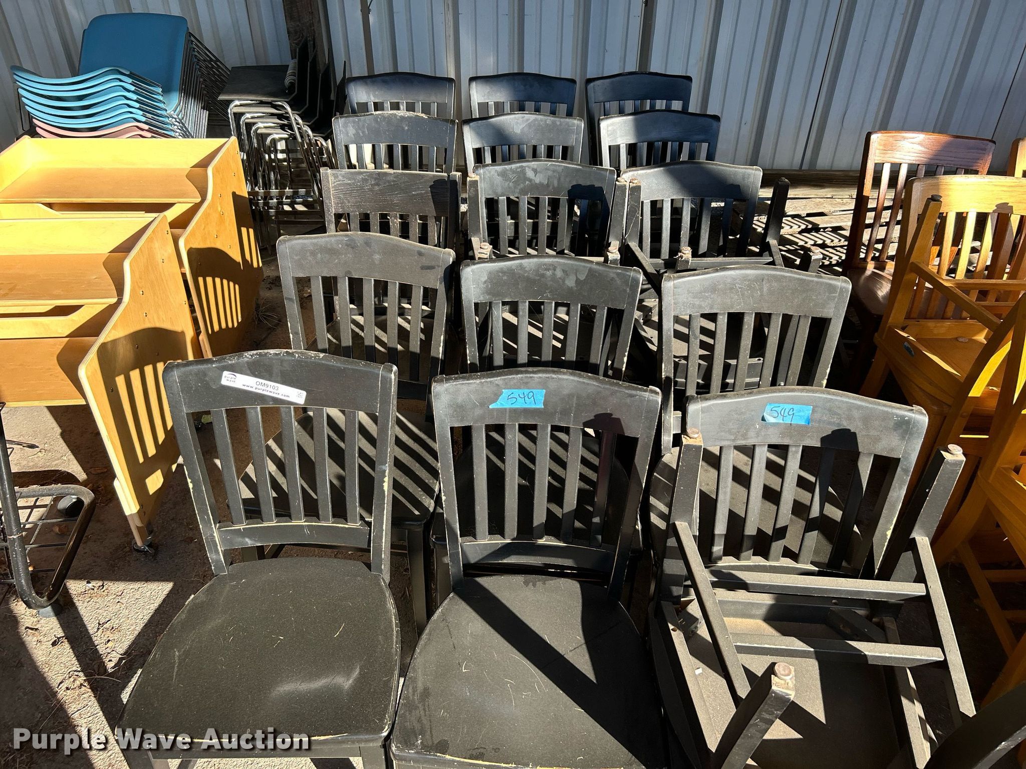 Purple Wave is selling a used Furniture in Oklahoma. This item is a Approximately (18) chairs with the following: Unit #: 549