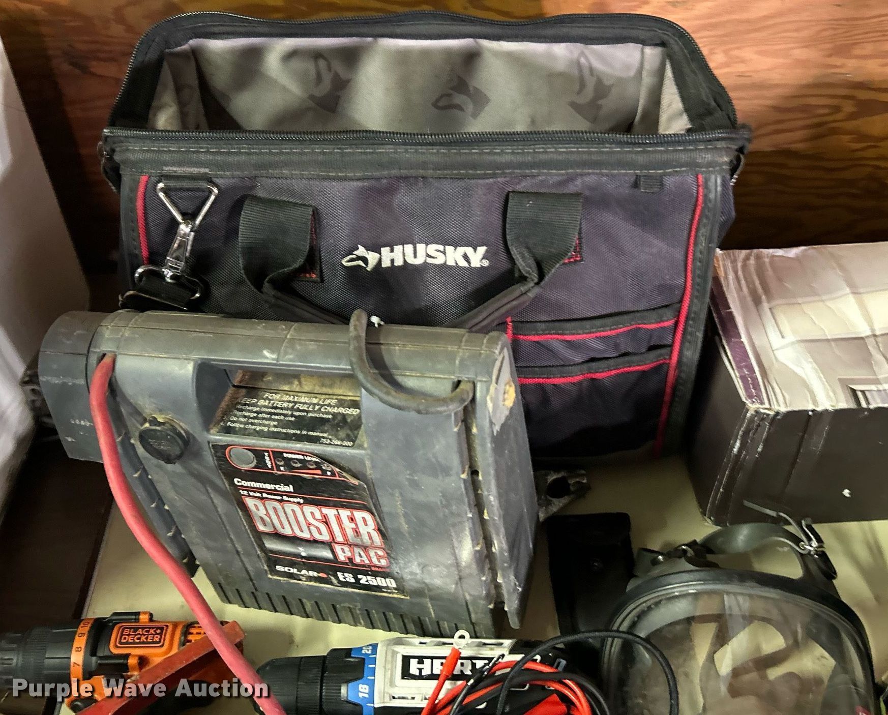 Purple Wave is selling a used Tools in Oklahoma. This item is a Power tools with the following: Husky tool bag, Unit #: 1026