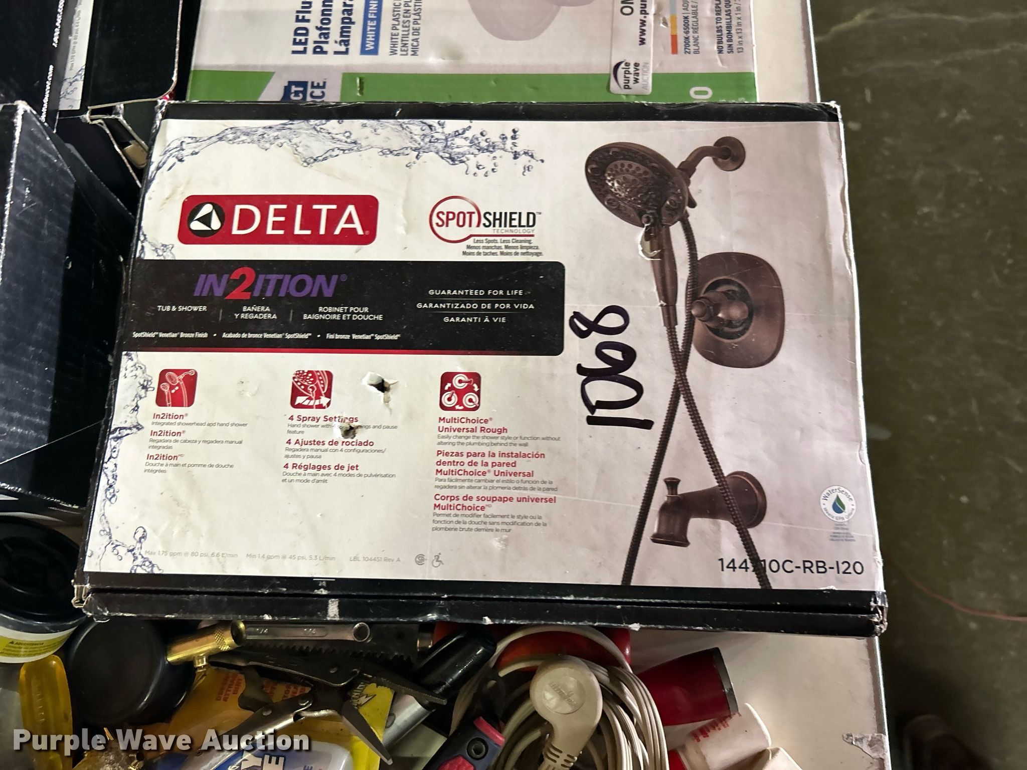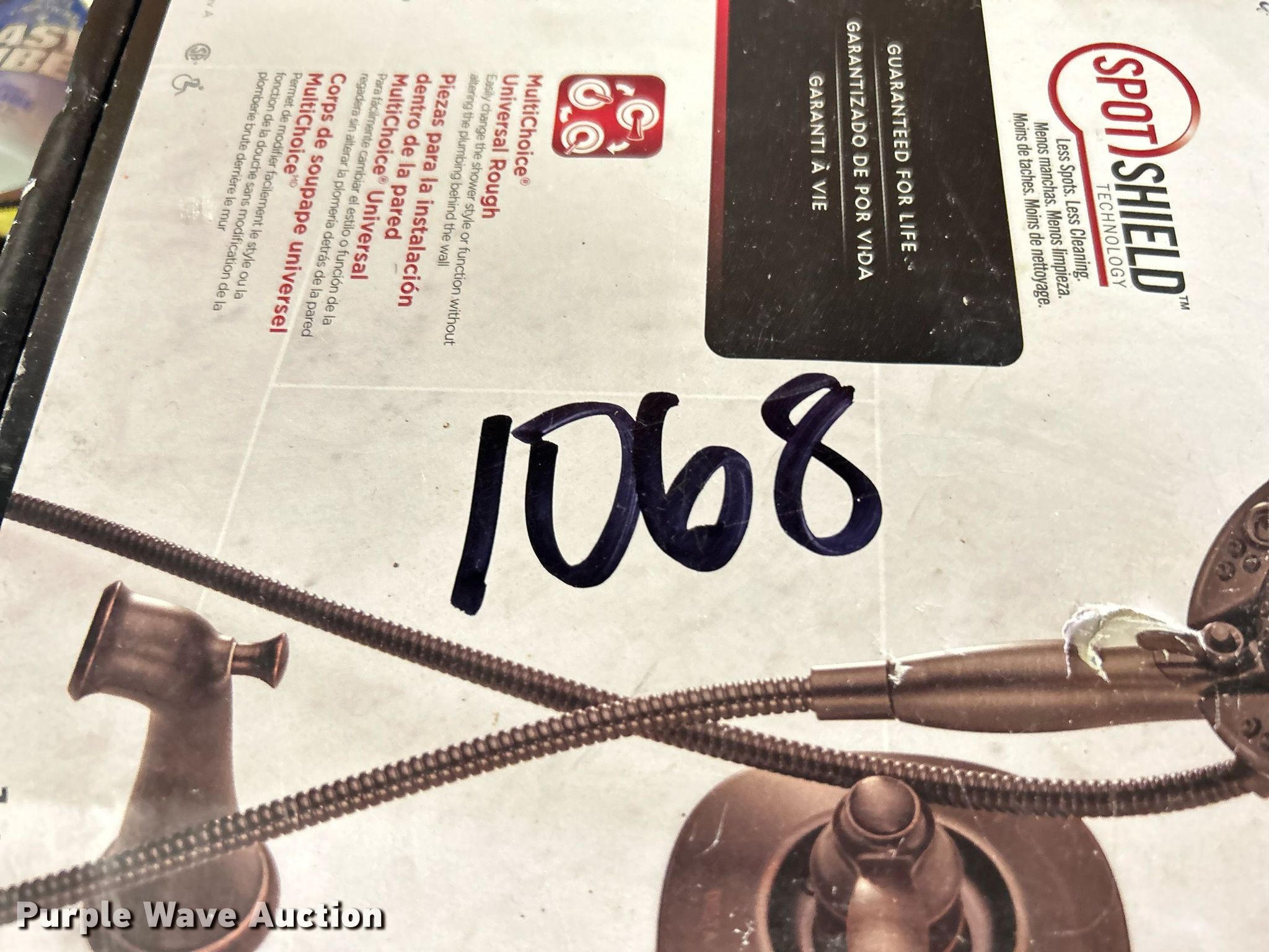 Purple Wave is selling a used Building Materials in Oklahoma. This item is a Delta bathroom fixtures with the following: B114915C-SS, 144710C-RB-120, 14498C-OB-A, Unit #: 1068