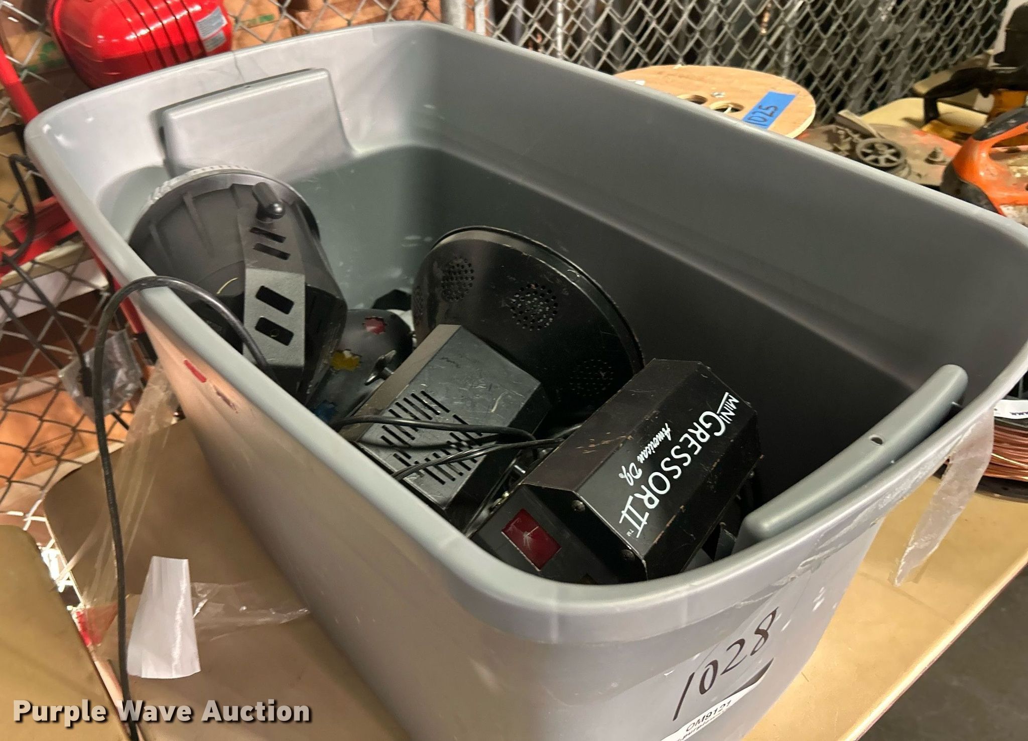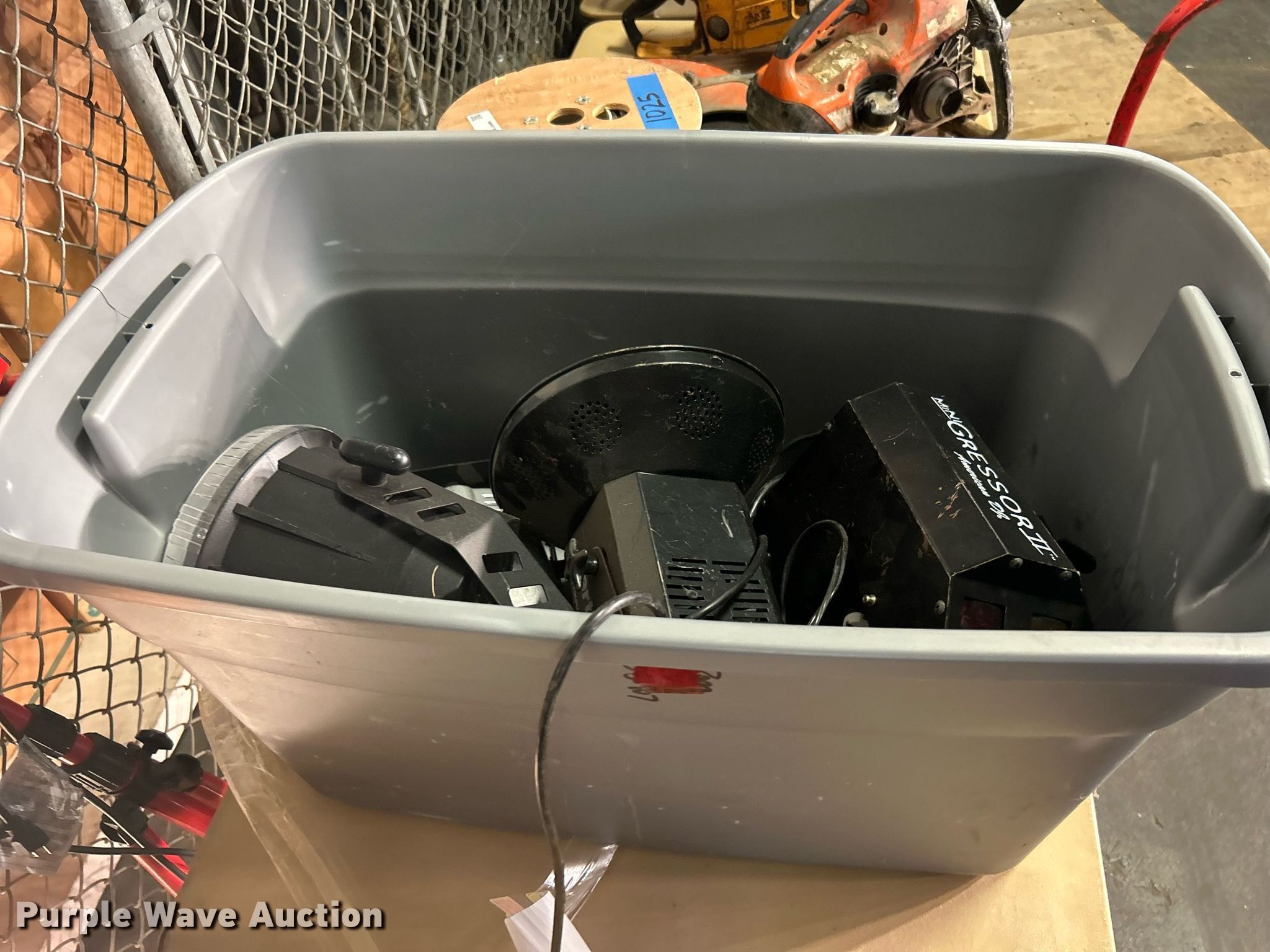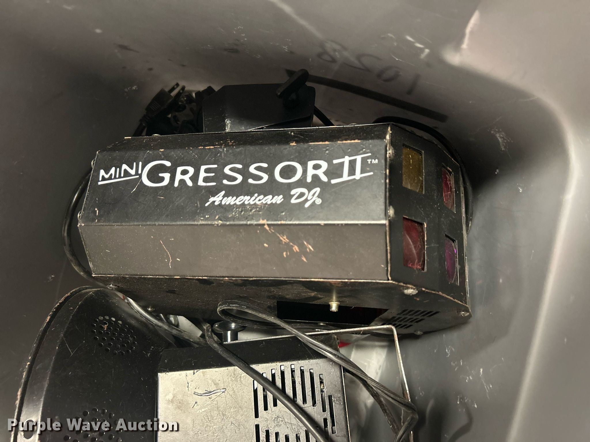 Purple Wave is selling a used Building Materials in Oklahoma. This item is a Lights with the following: Vertigo American DJ, Enterprises Snap Shot, Mini Gressor II, Unit #: 1028
