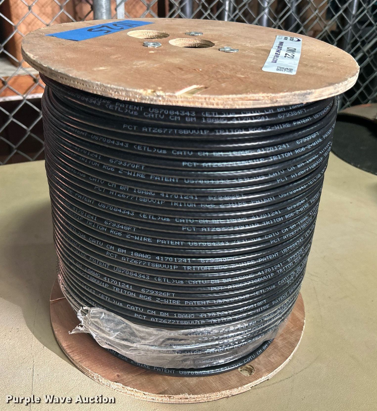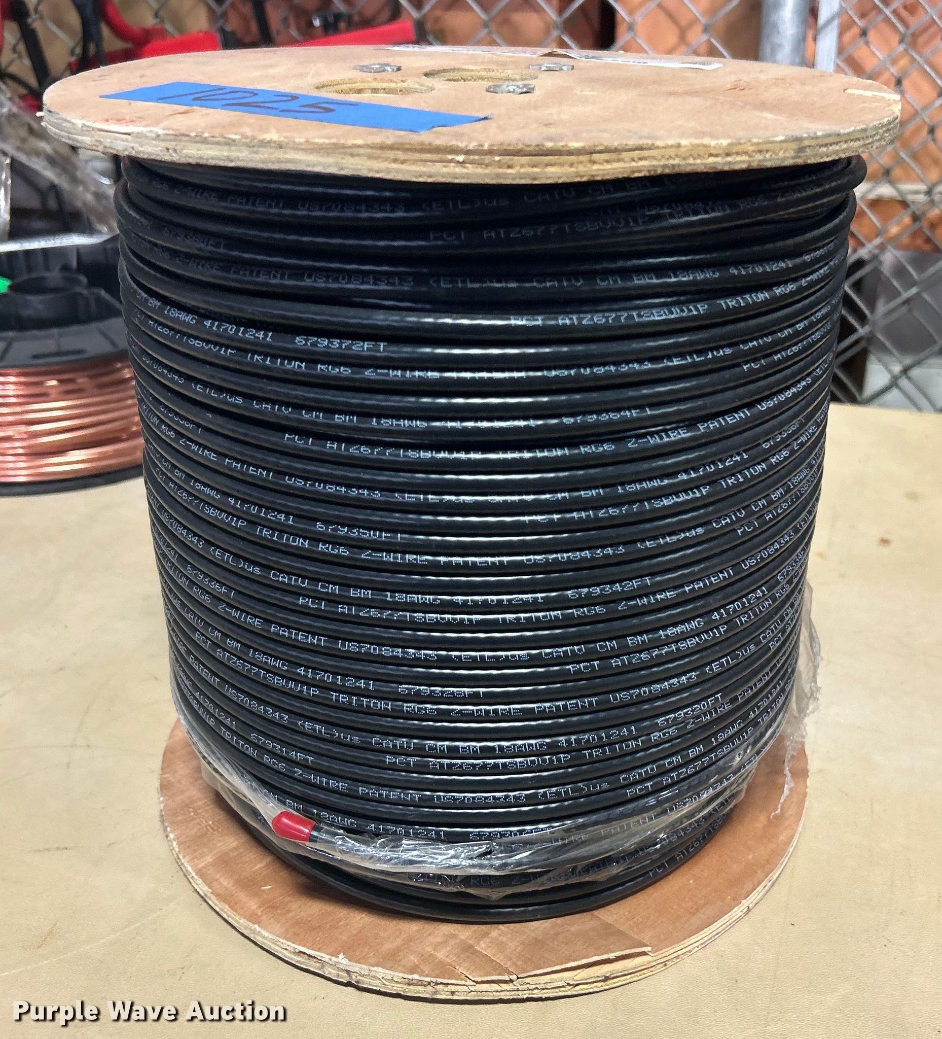 Purple Wave is selling a used Building Materials in Oklahoma. This item is a Coaxial cable with the following: ATZ677TX-BVVM1P, Triton 18awg z-wire, Unit #: 1025