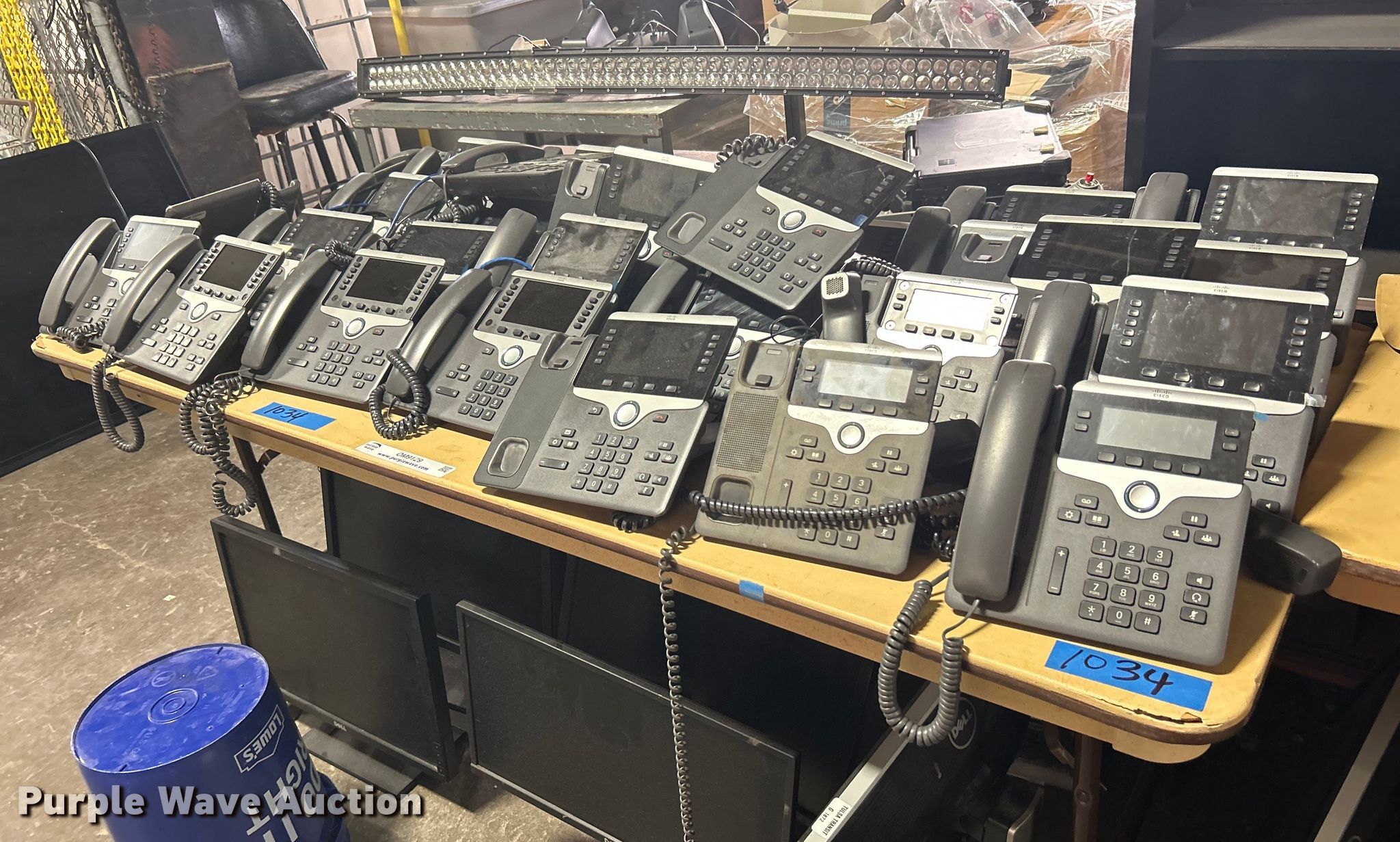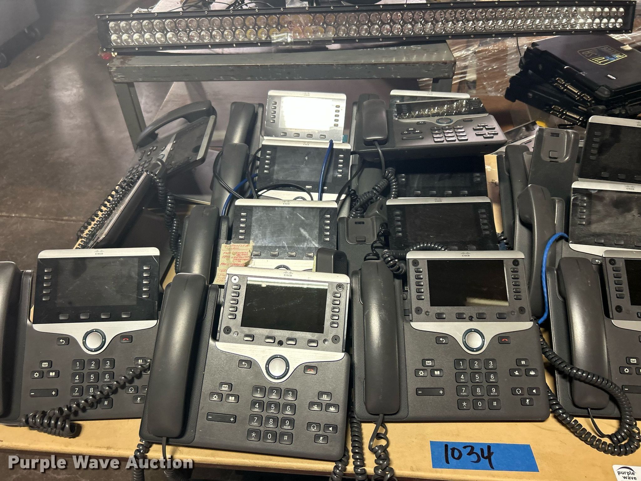 Purple Wave is selling a used Electronics in Oklahoma. This item is a Phones with the following: Cisco CP-8831-K9 Unified IP, Cisco CP-8851 IP, Cisco CP-7841 IP, Cisco CP-8821 wireless, Docking station, Unit #: 1034
