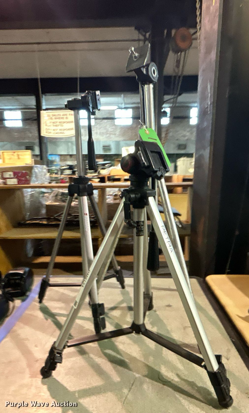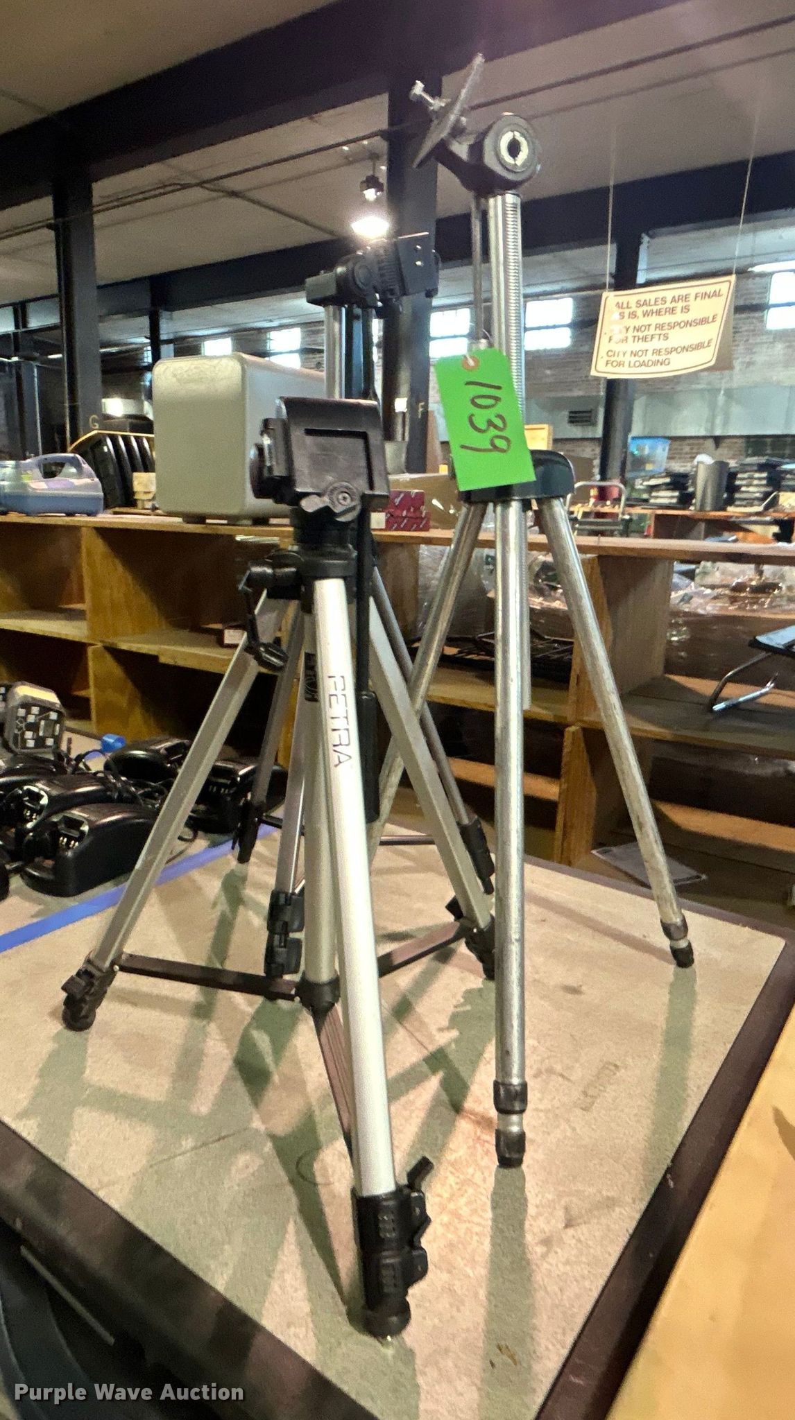 Purple Wave is selling a used Electronics in Oklahoma. This item is a Photography equipment with the following: (3) tripods, Ambico, Petra, Unit #: 1039