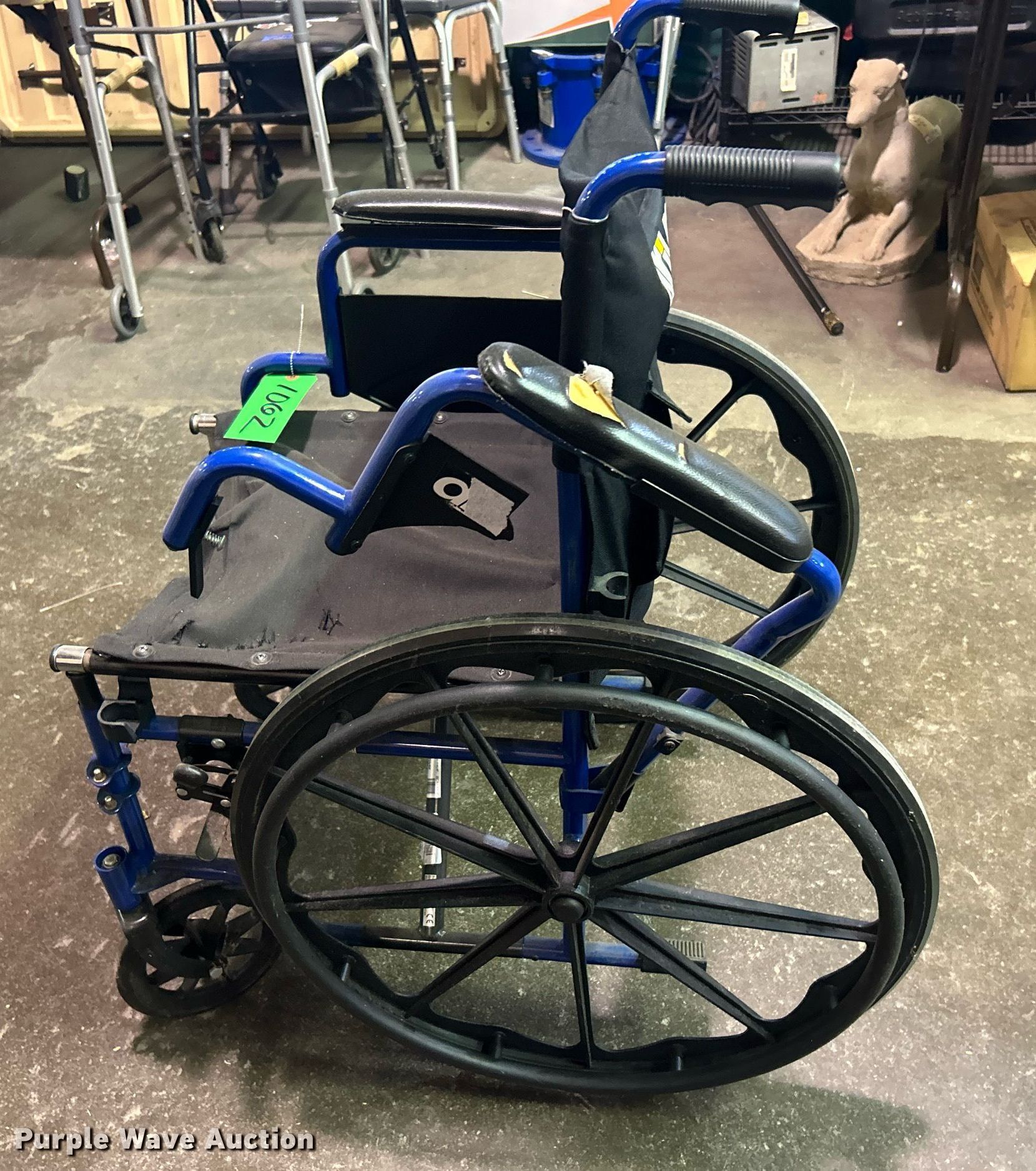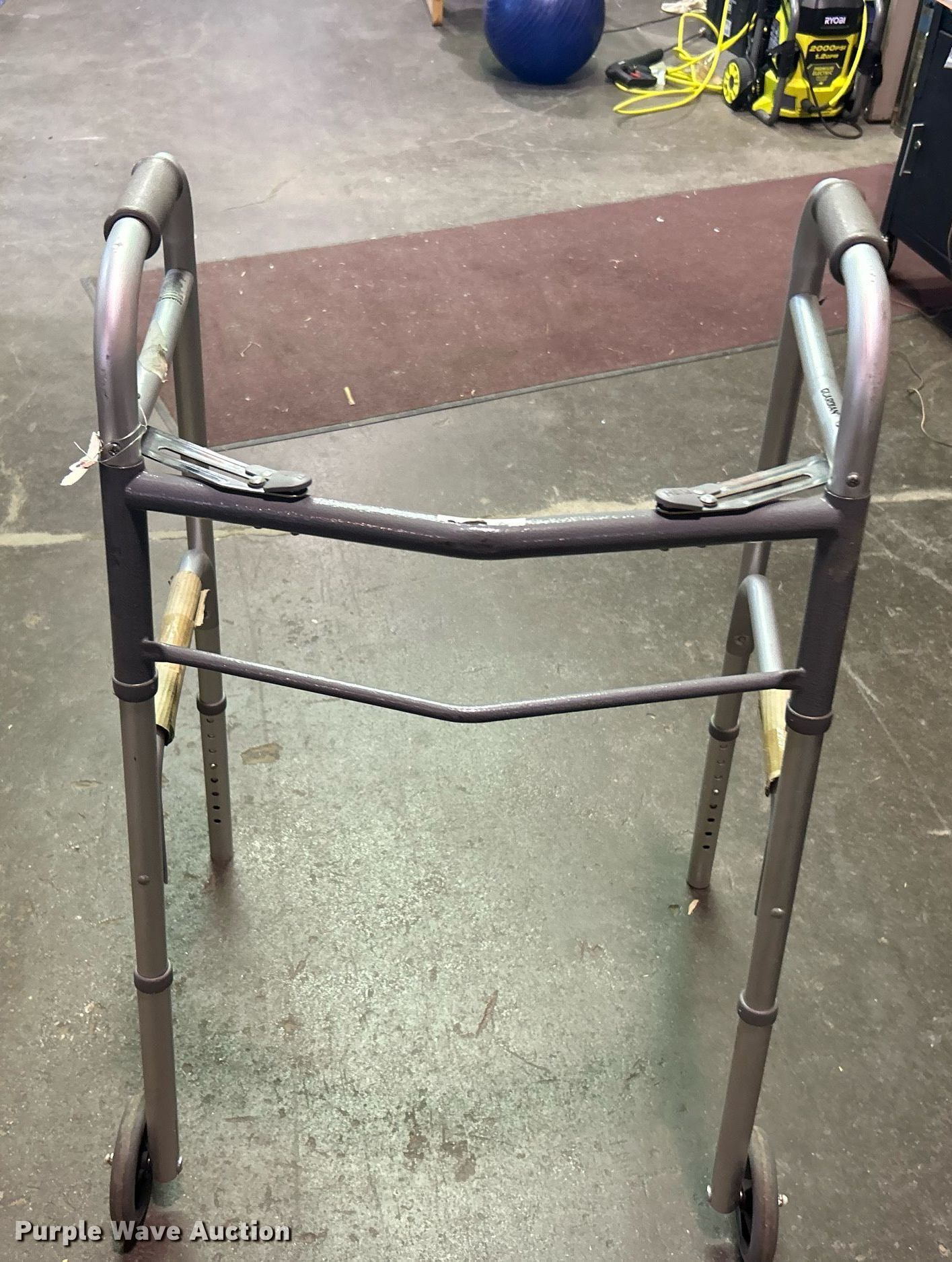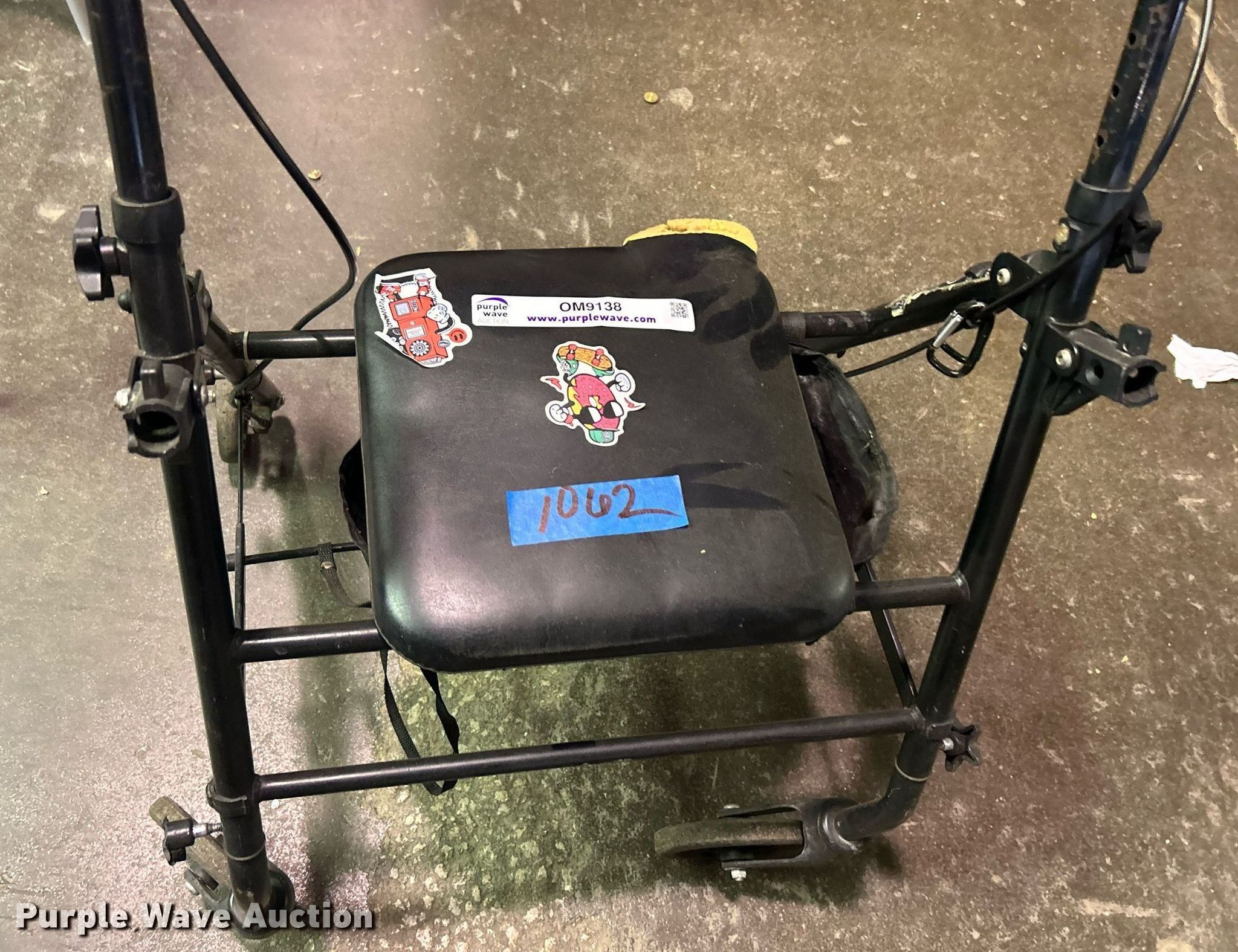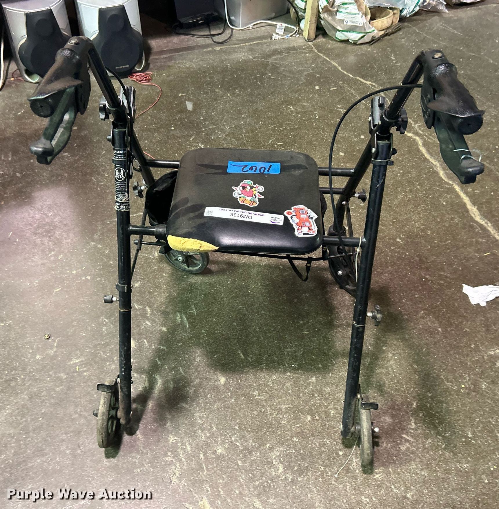 Purple Wave is selling a used Medical Equip. in Oklahoma. This item is a Medical supplies with the following: Wheelchair, Bath bench, Coasters missing, Walker, Crutches, Cane, Unit #: 1062