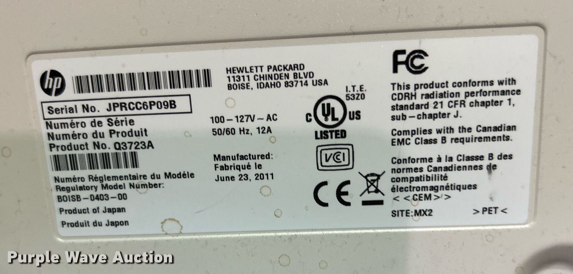 Purple Wave is selling a used Office Supplies and Equip. in Oklahoma. This item is a HP LaserJet 9050dn printer with the following: Unit #: 1021