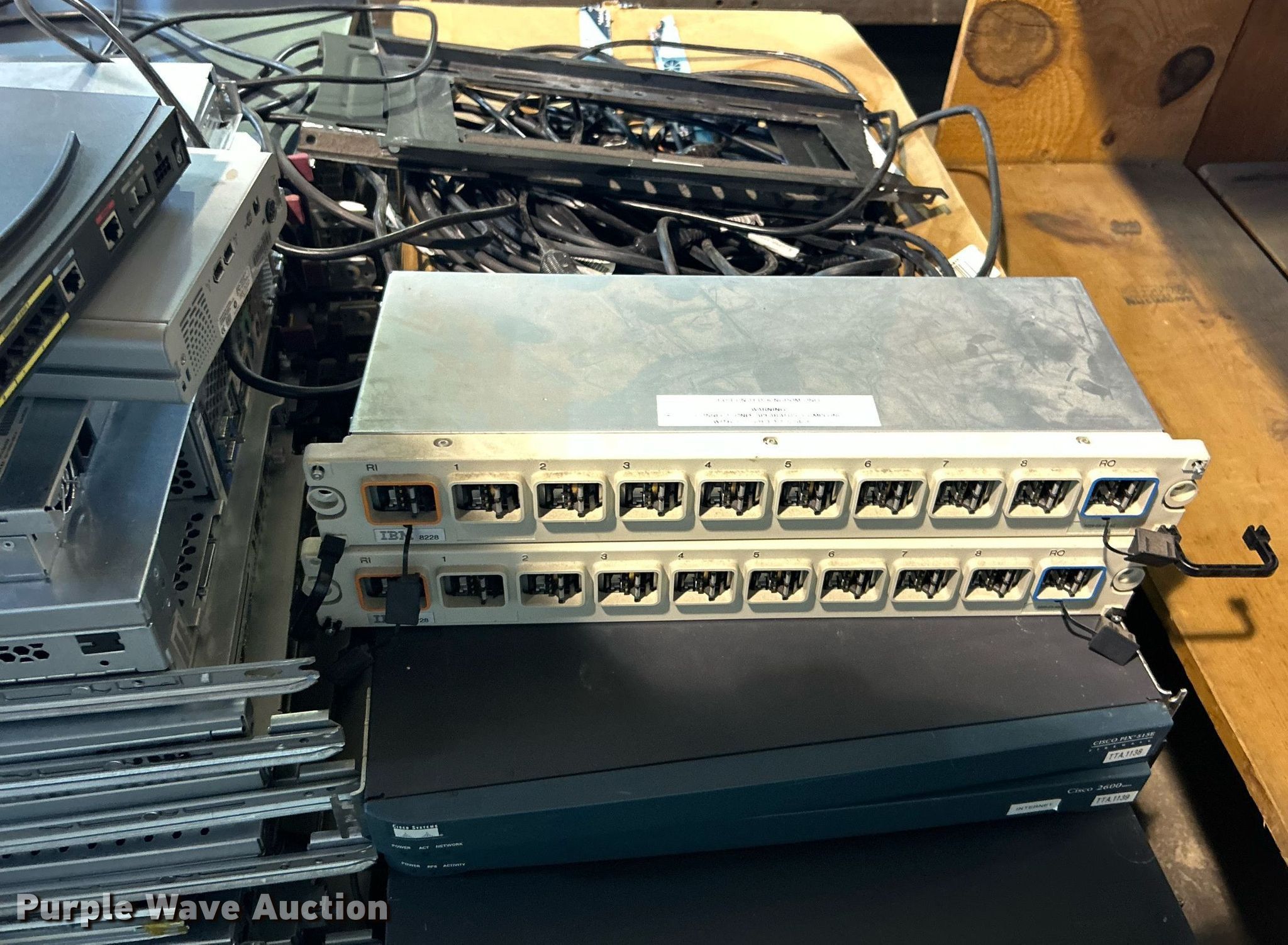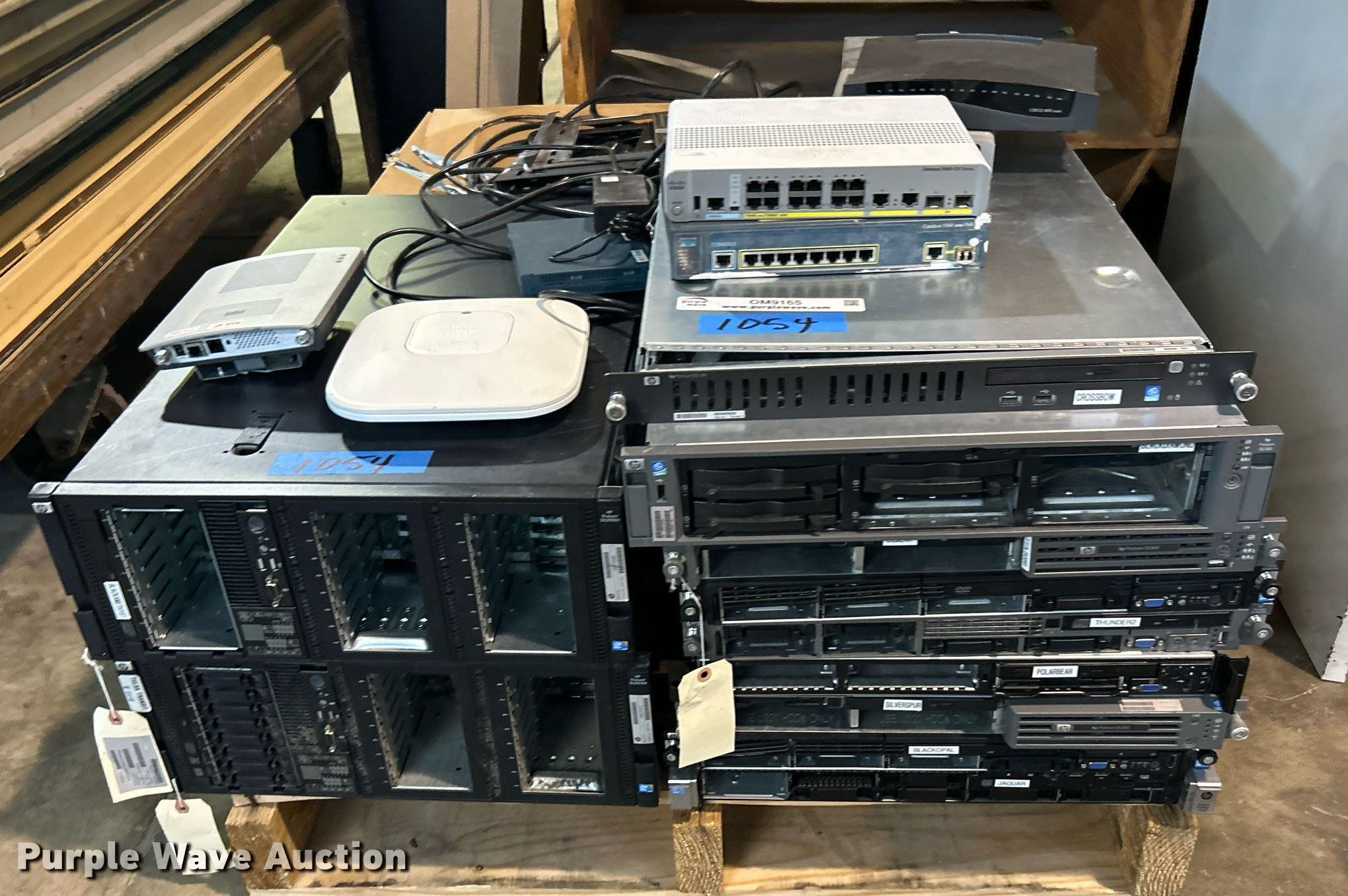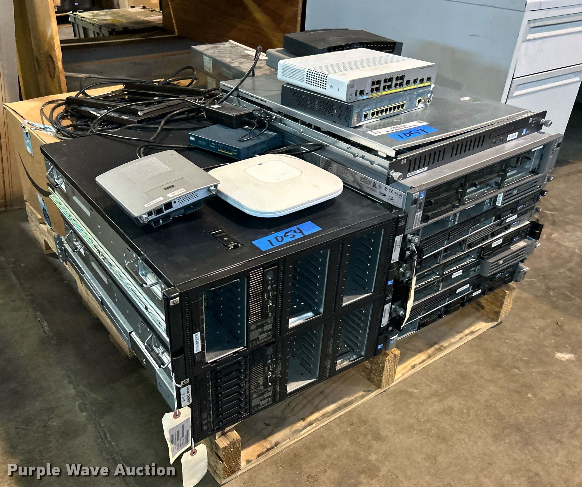 Purple Wave is selling a used Electronics in Oklahoma. This item is a Network equipment with the following: Cisco, PIX515E, 2600, 2800, (2) 2960S, (2) 3560, IBM, (2) 8228, HP, DL140, DL380, DL360, (2) DL370G6, Unit #: 1054
