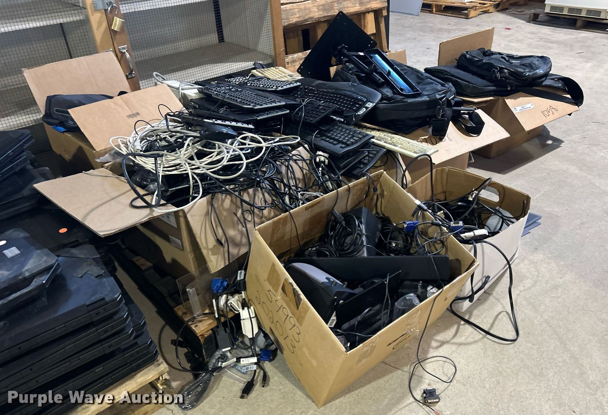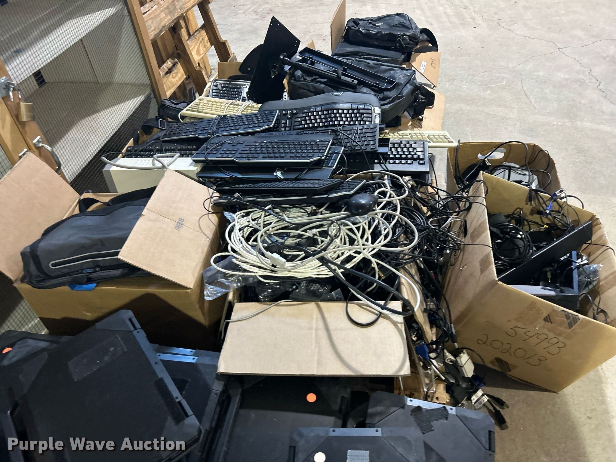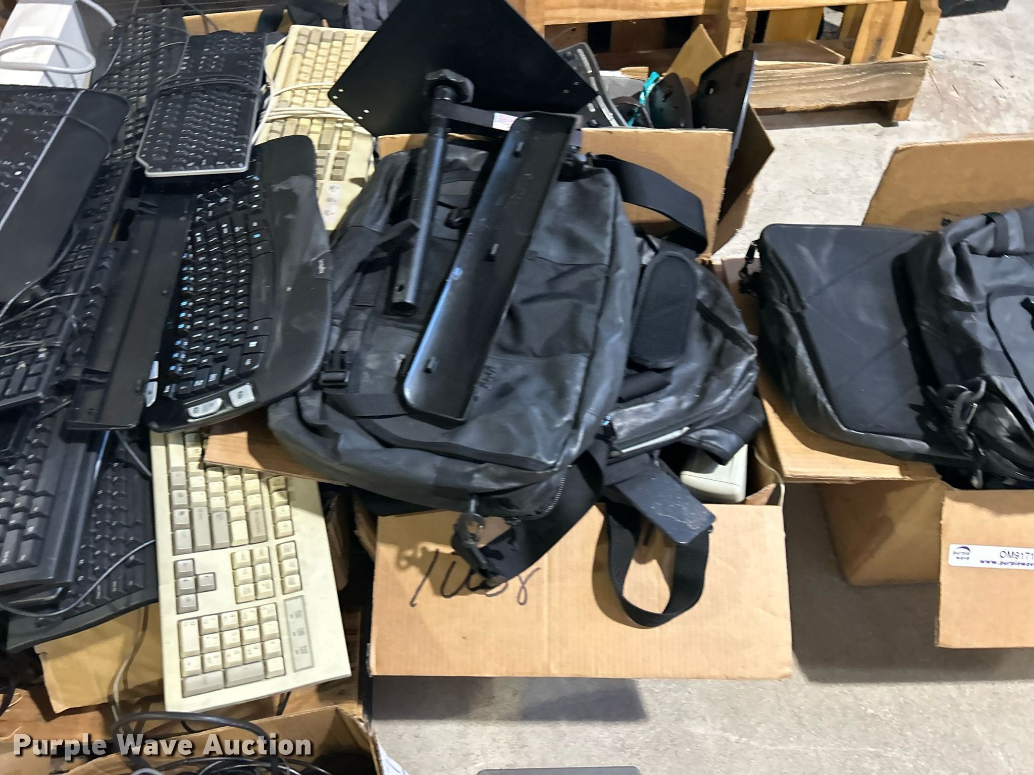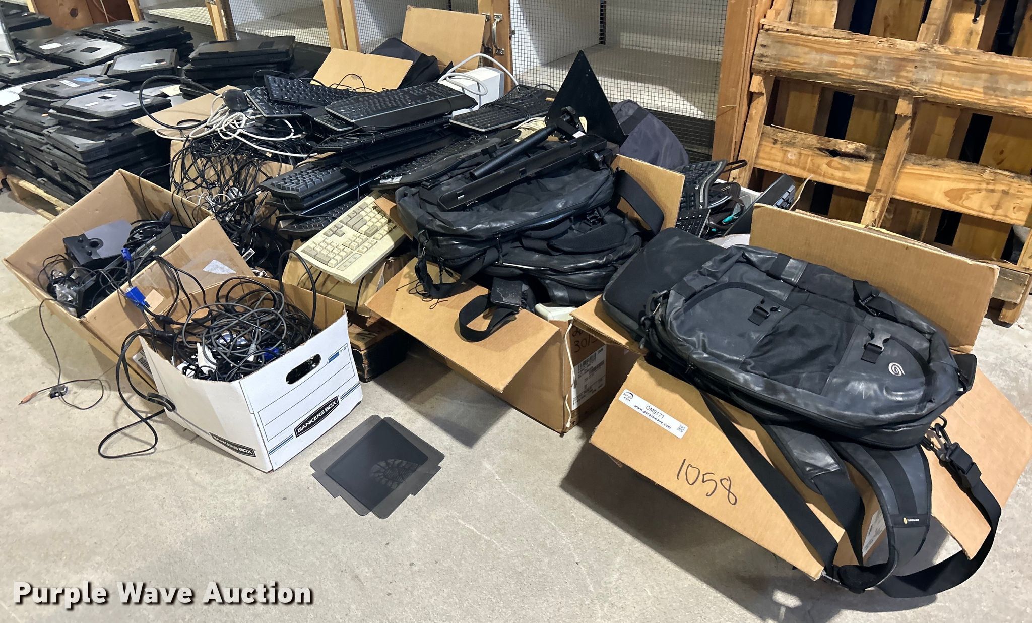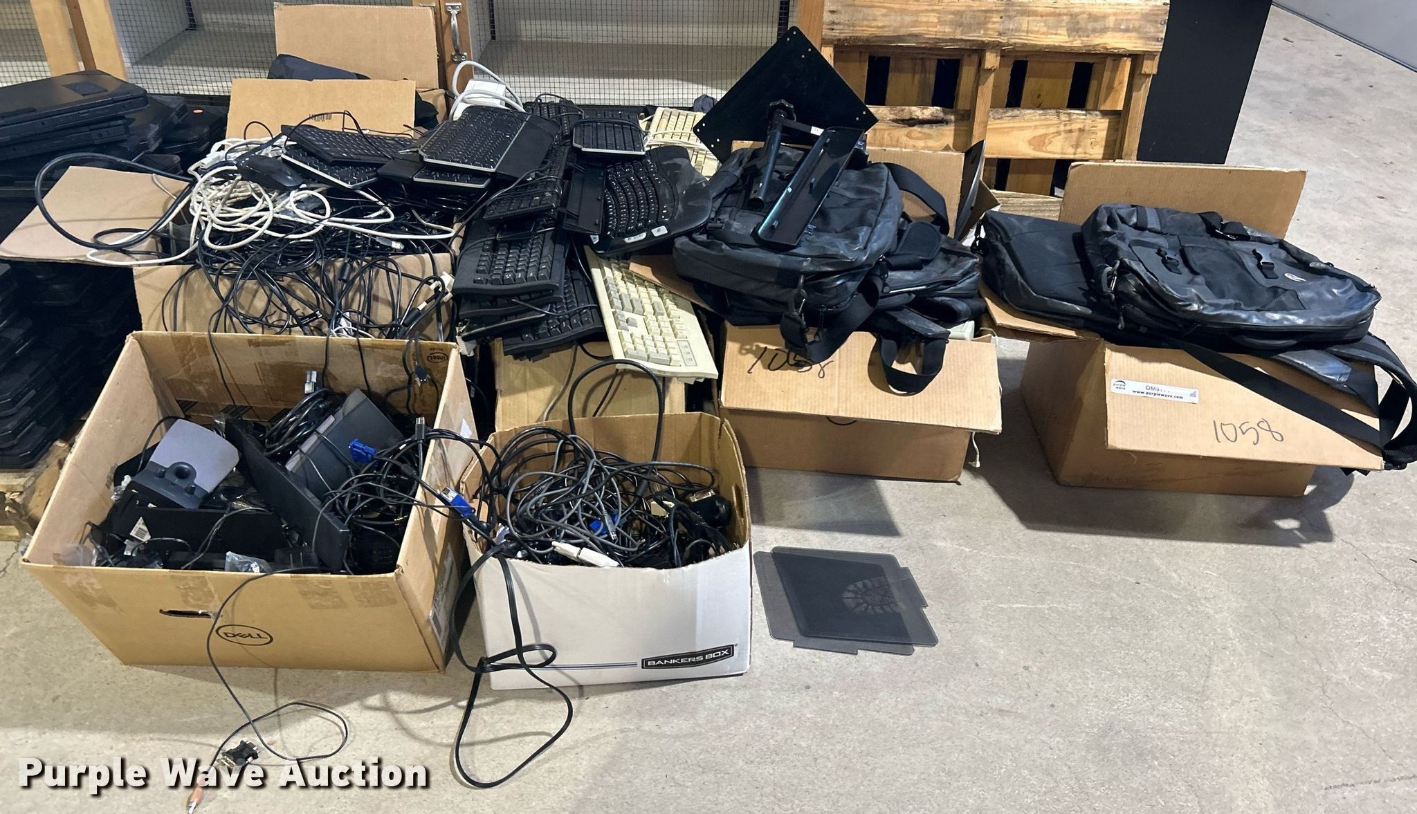 Purple Wave is selling a used Electronics in Oklahoma. This item is a Computer accessories with the following: Computer bags, Cables, Keyboards, Unit #: 1058