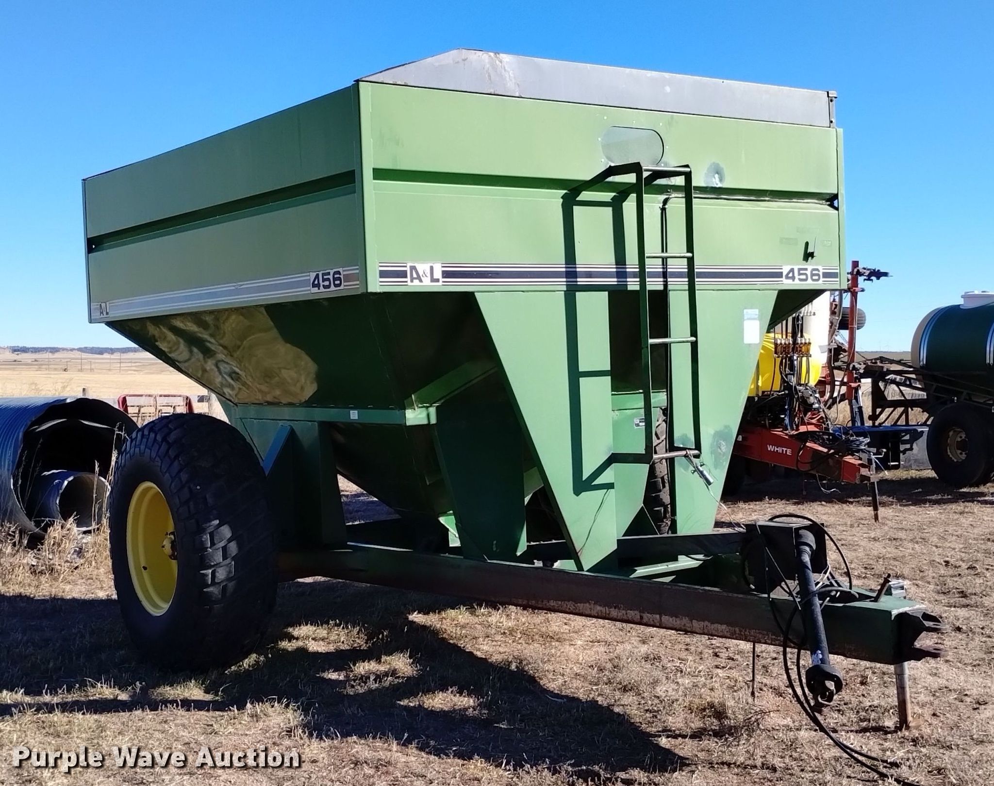 Purple Wave is selling a used Grain Cart or Gravity Wagon in Wyoming. This item is a A&L 456 grain cart with the following: Serial: A82678