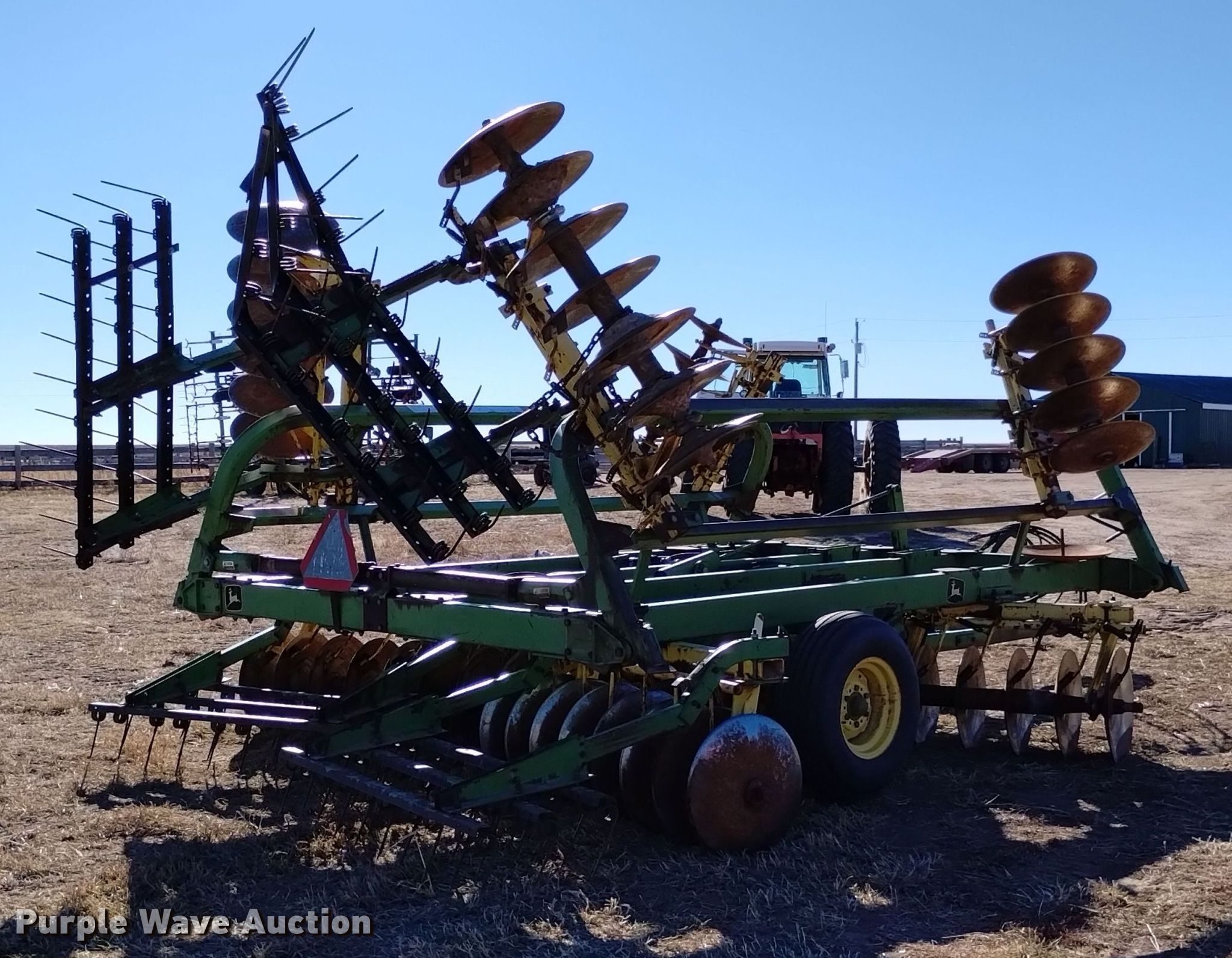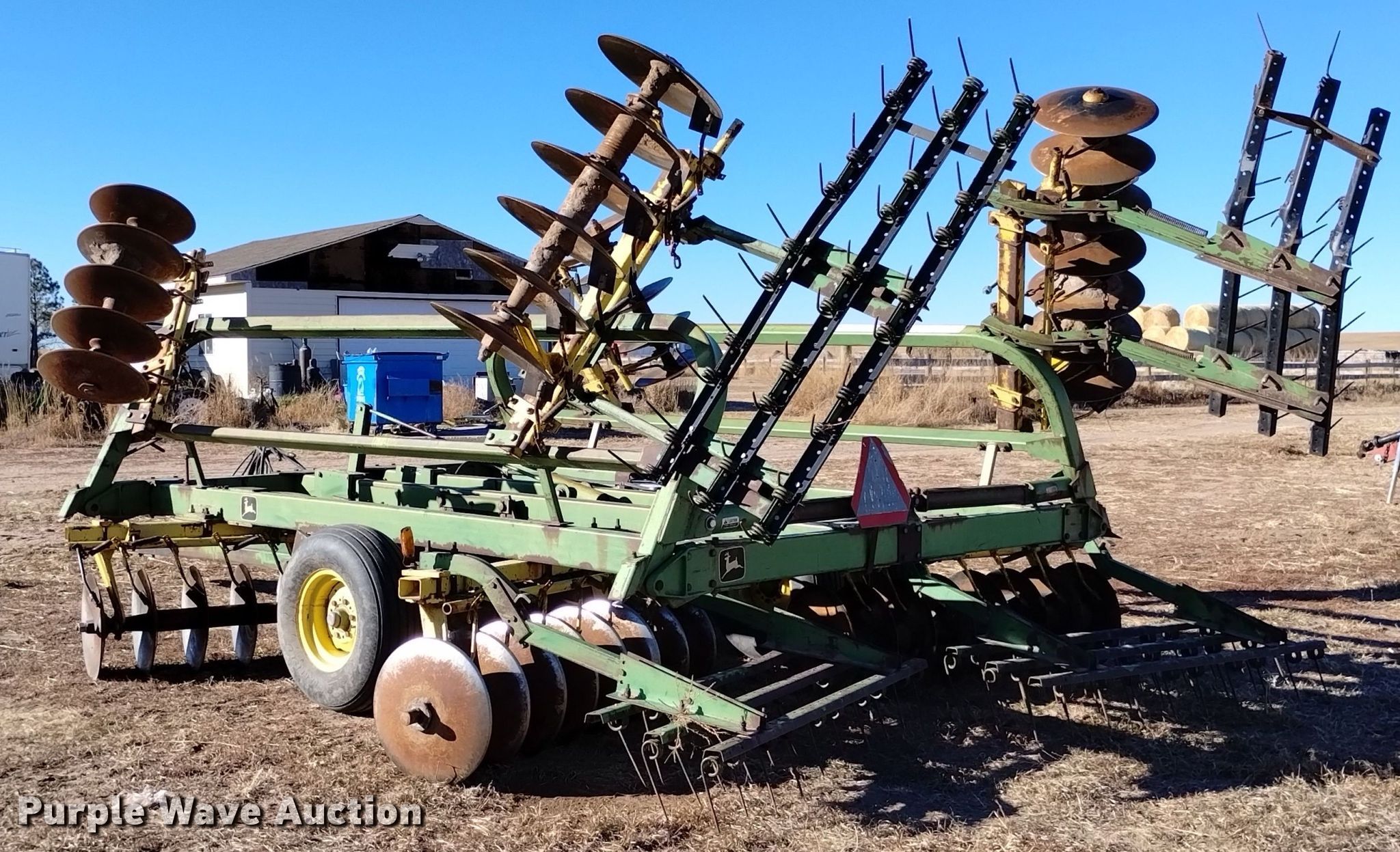 Purple Wave is selling a used Disk in Wyoming. This item is a John Deere 230 double off-set disk with the following: Overall width: 22', Serial: 020953