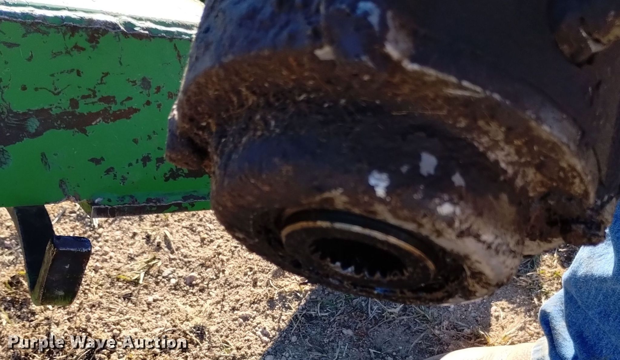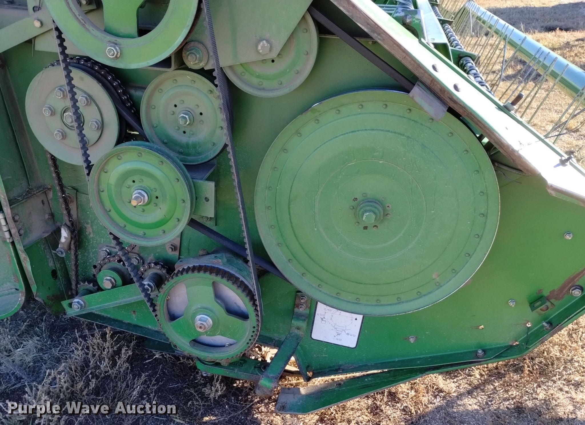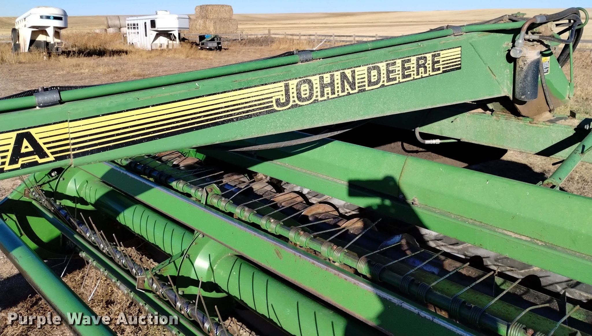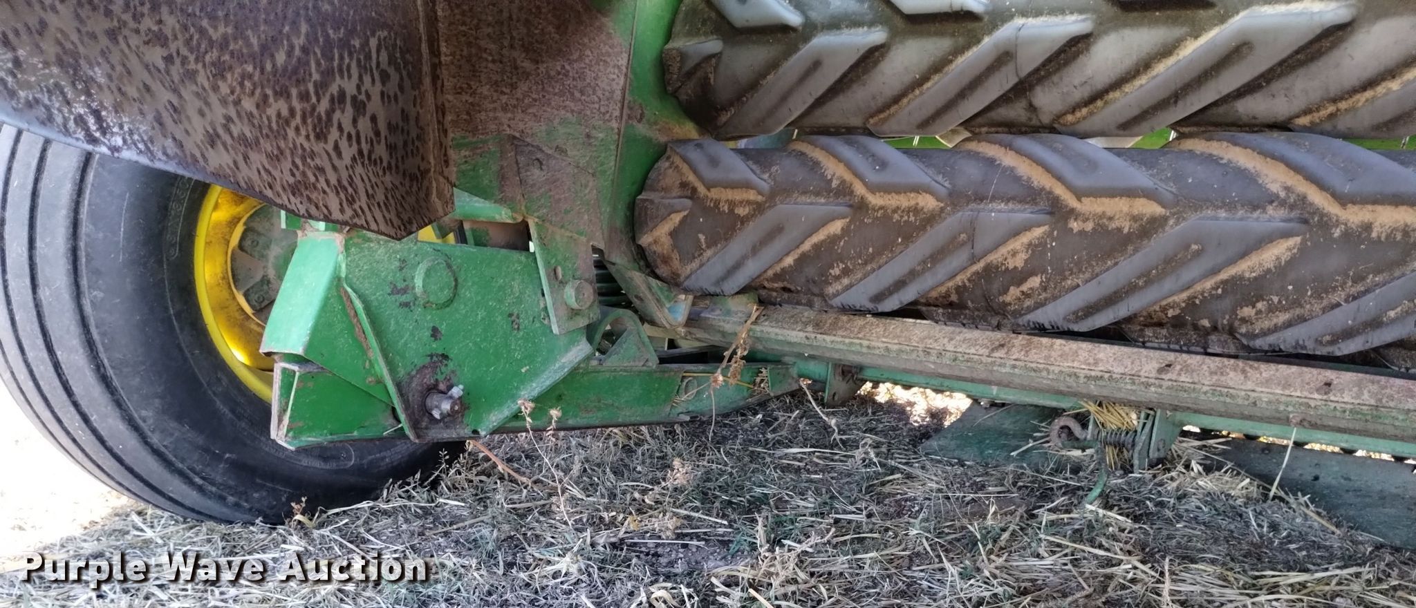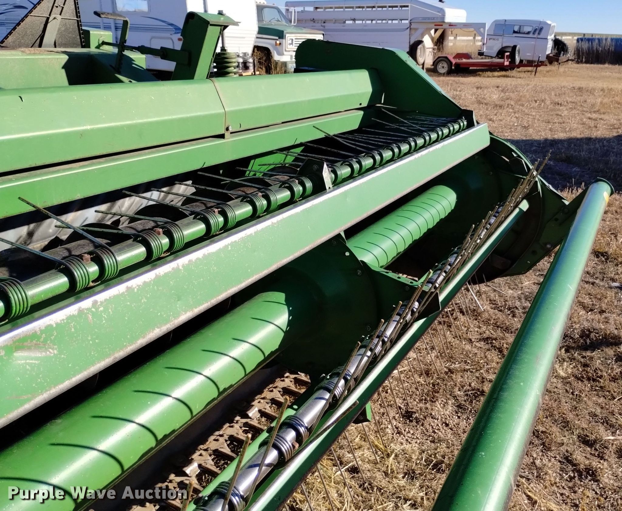 John Deere 1600A windrower. Serial: EO1600A985367. Features PTO: 1000, Hydraulic PTO pump, Hitch Draw bar, Swivel, Head Sickle, Width: 14', Hydraulic head tilt, Conditioners: Rubber/ rubber. Tires Size: 31x13.50-15. Carpenter, WY 82054