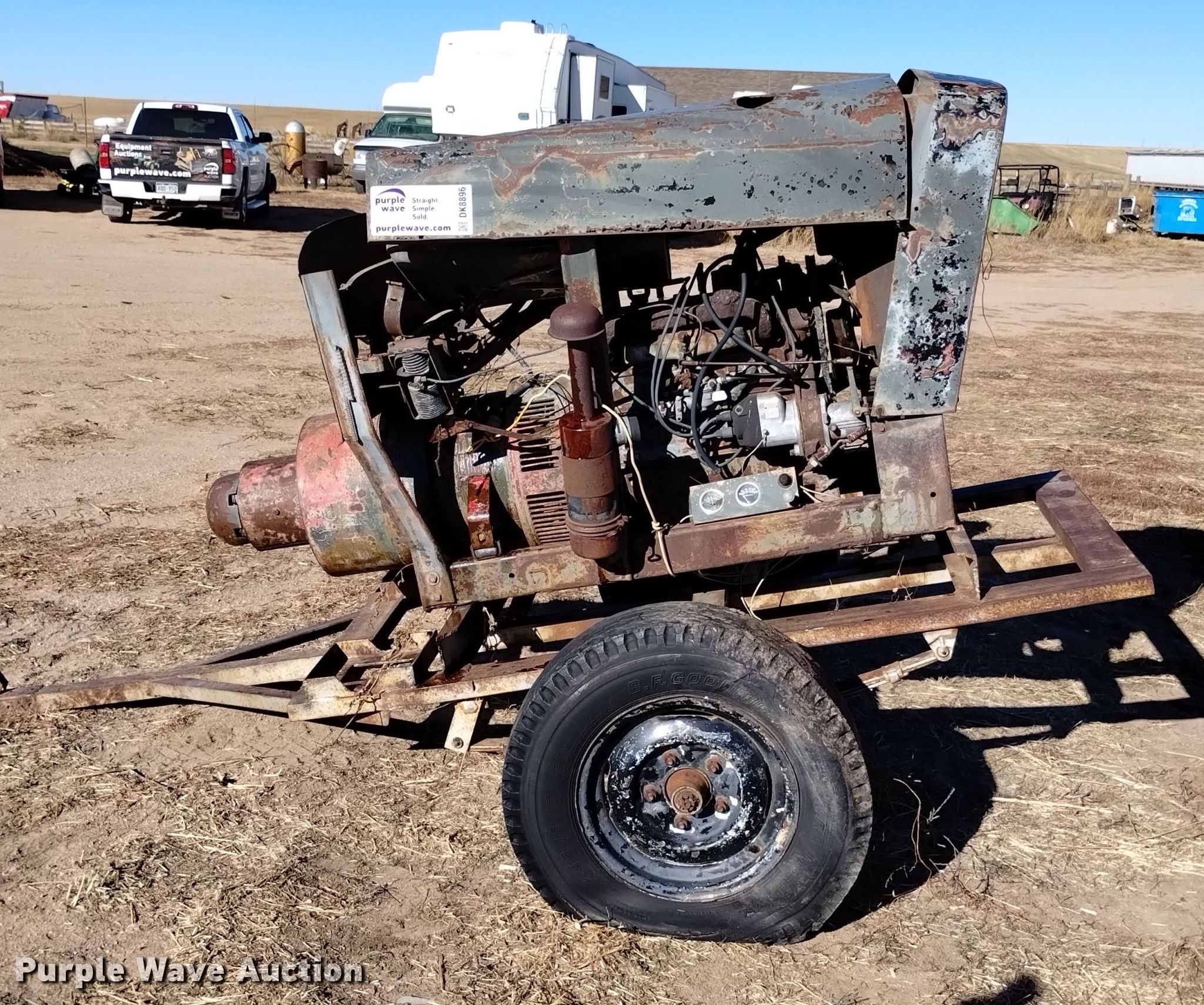 Lincoln SA-200 welder. Serial: R17759. Engine Cylinders: 4, Fuel type: Gas. Features Welder Capabilities: Stick, Fuel tank, Trailer mounted. Trailer Ball hitch size: 1 7/8", Axles: Single, Tire size: 7.00-15LT. Notes Non-operational unit Fall damage. Carpenter, WY 82054
