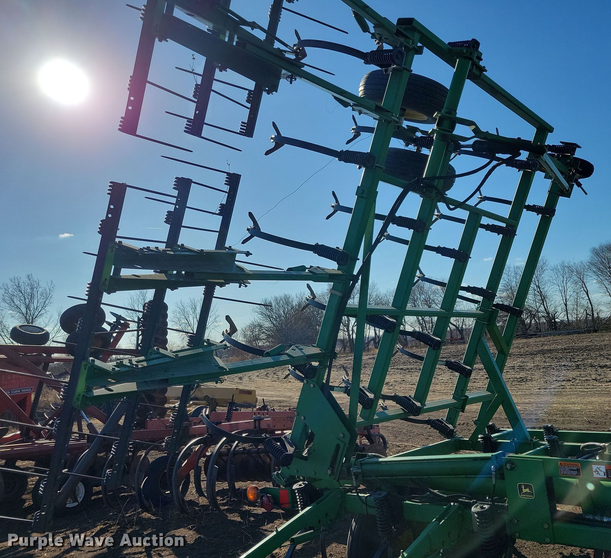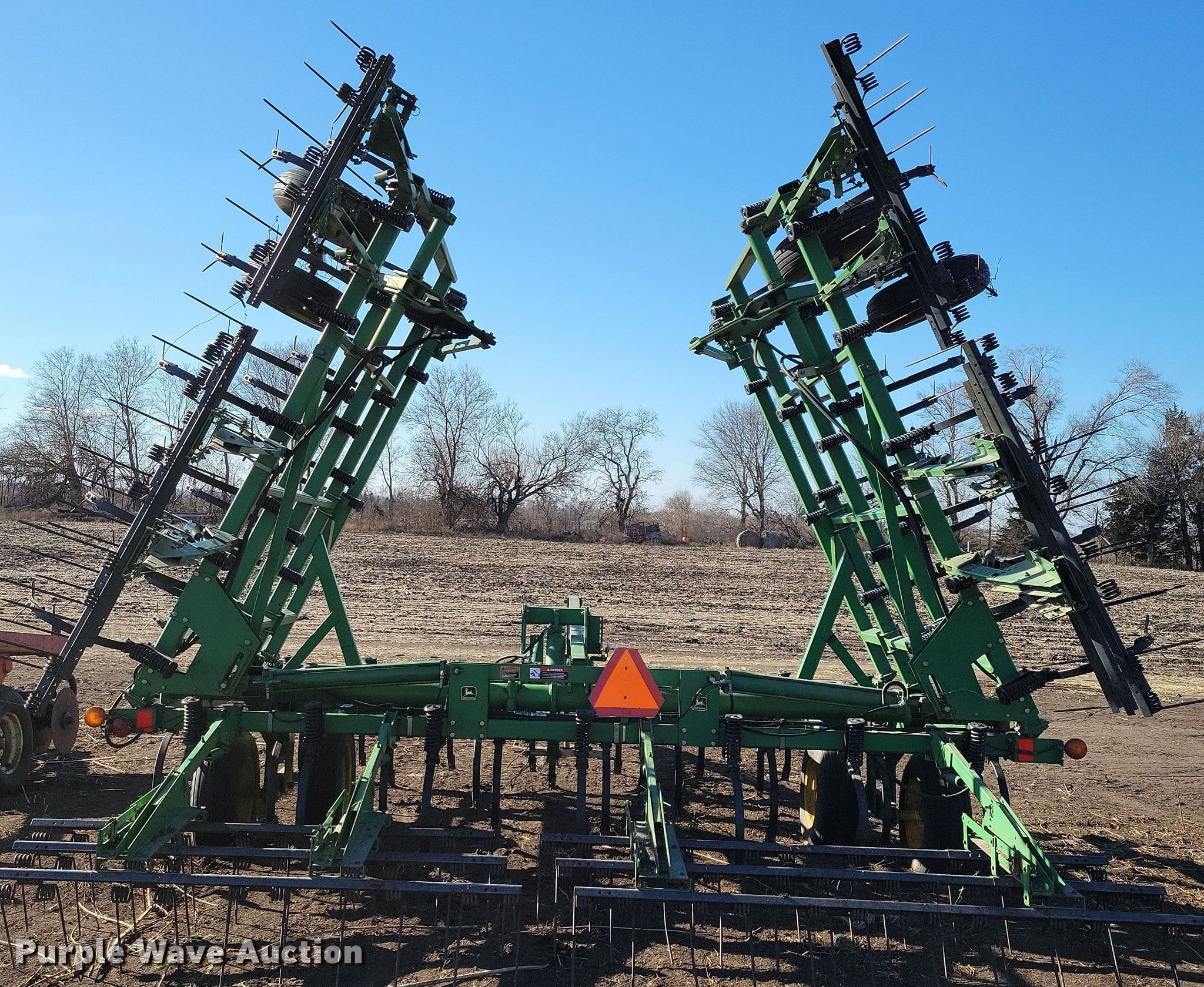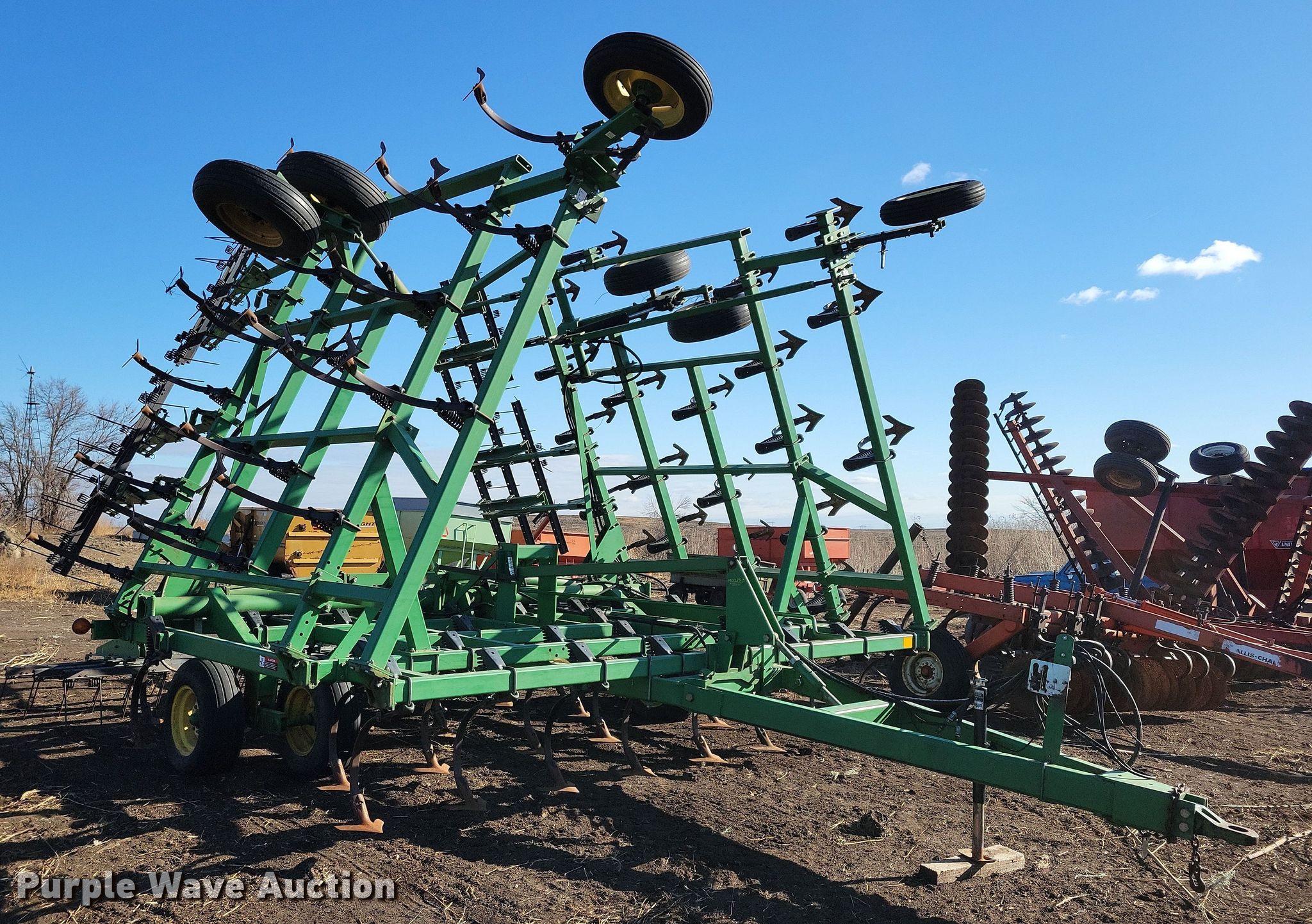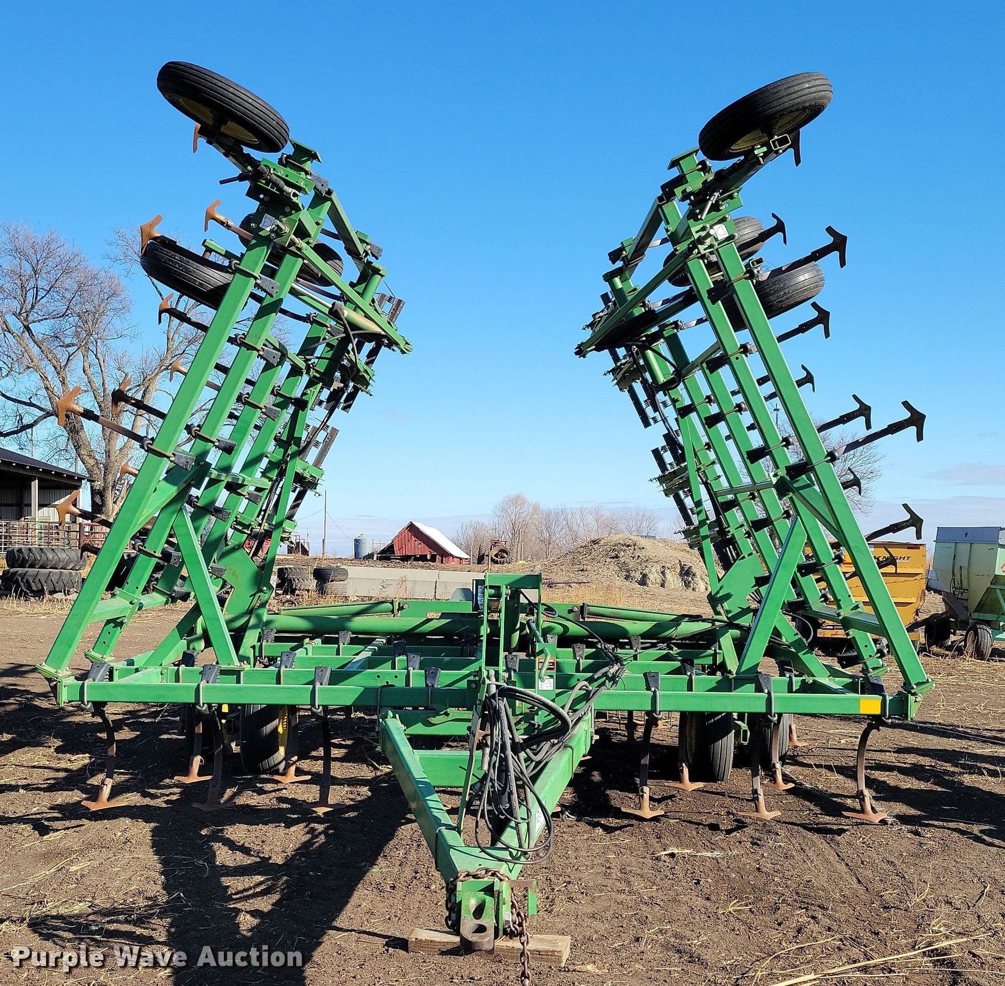 Purple Wave is selling a used Field Cultivator or Sweep Plow in Iowa. This item is a John Deere field cultivator with the following: Overall width: 35' 8", Serial: N00980X010007