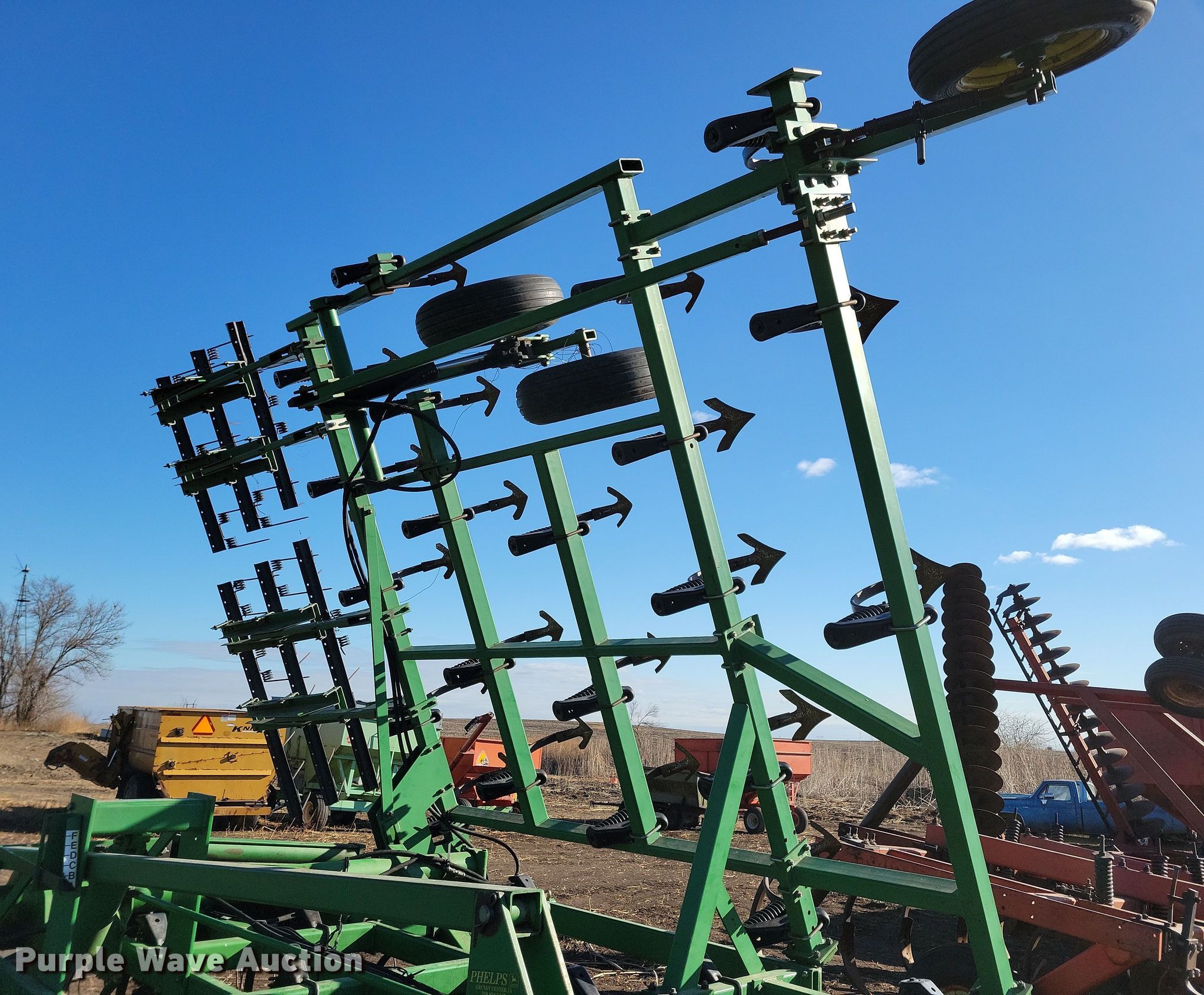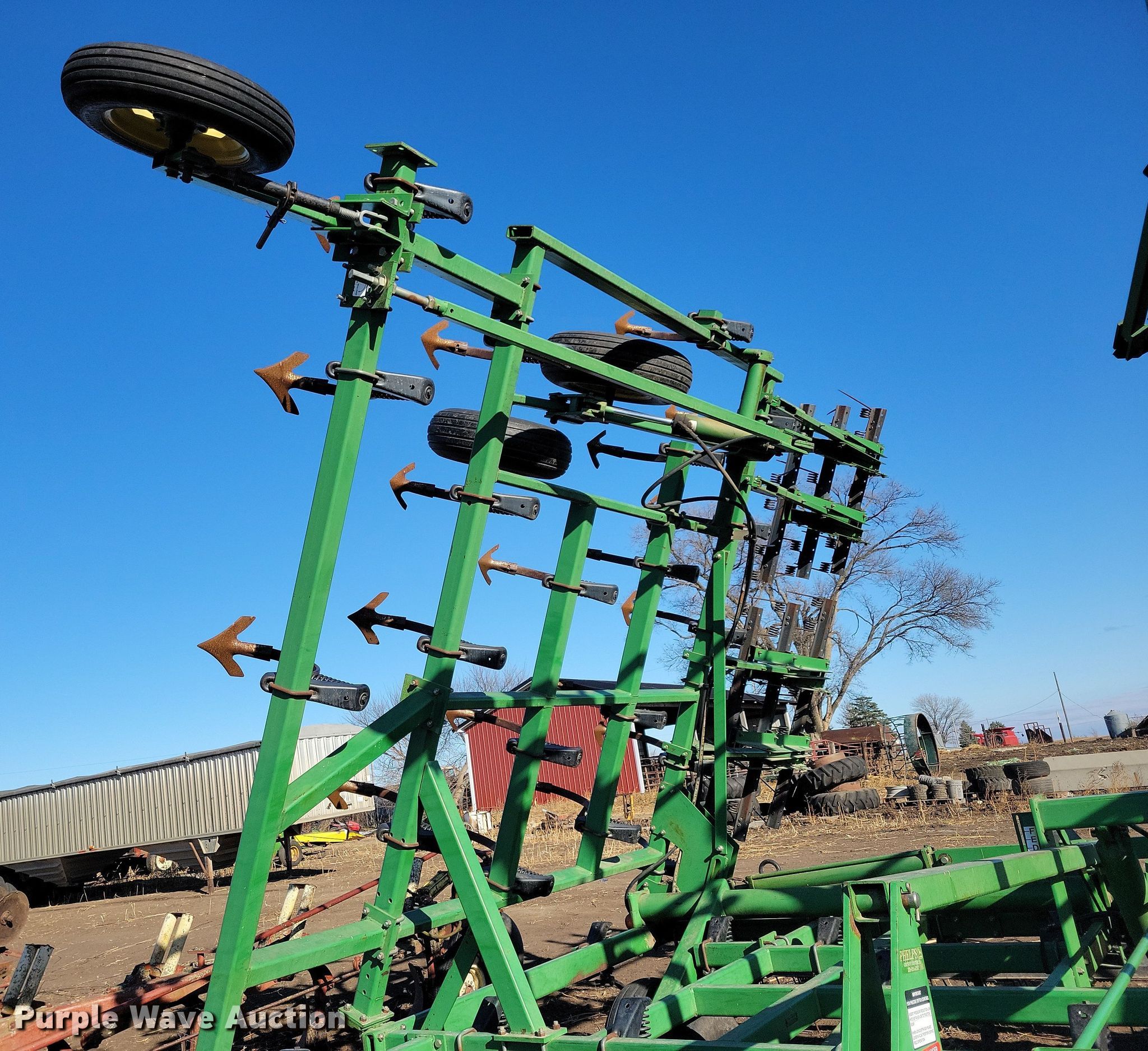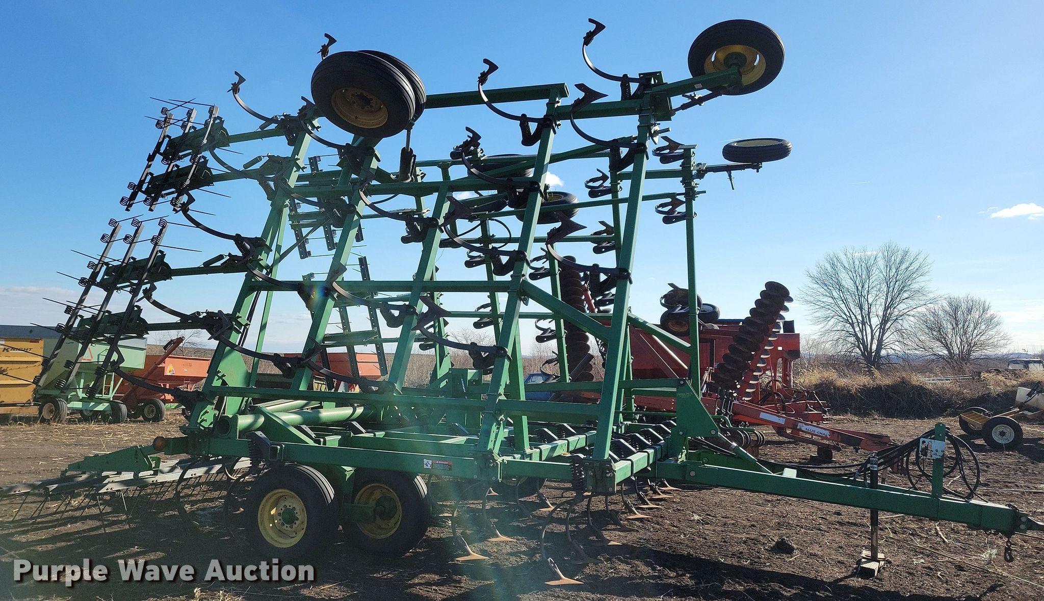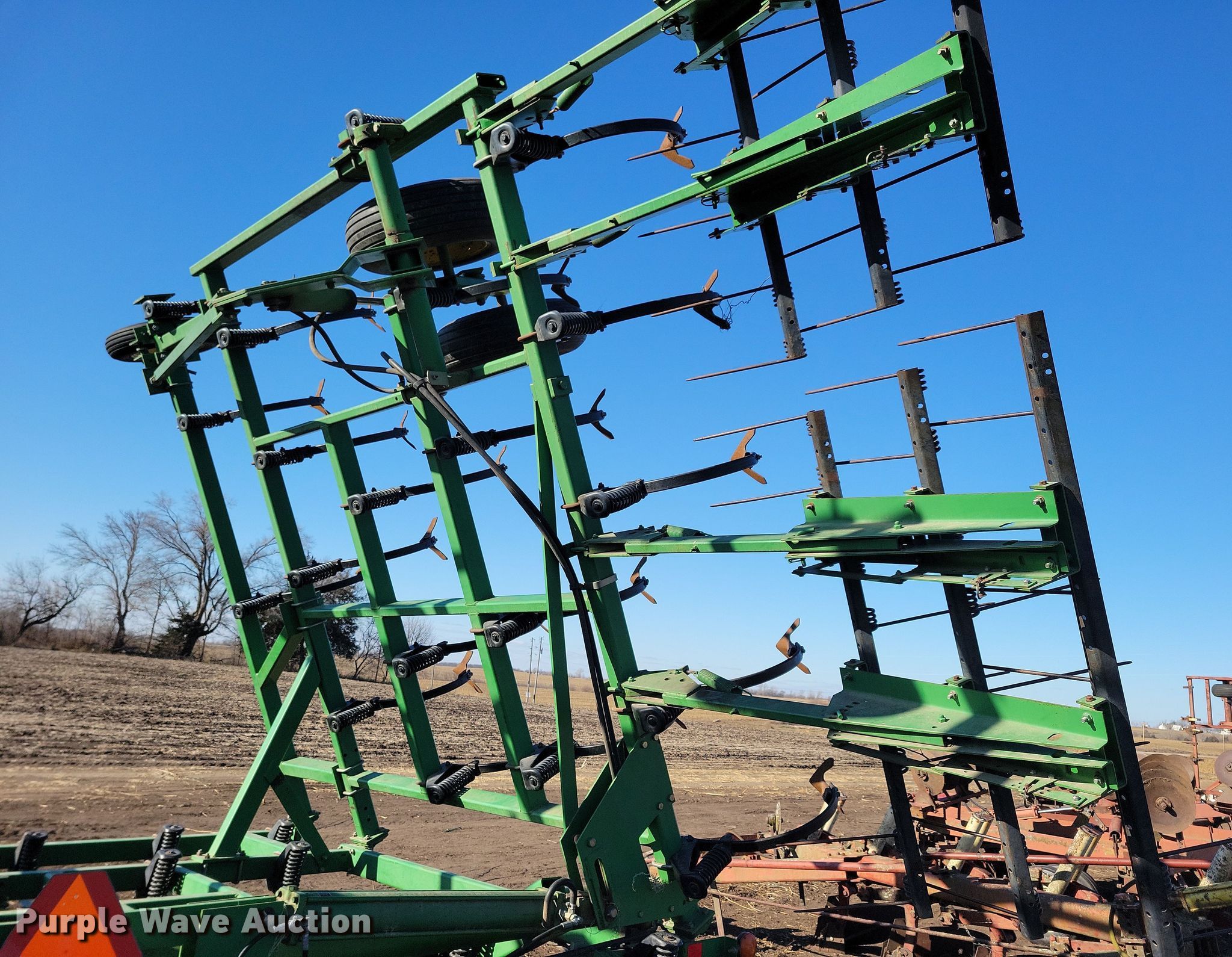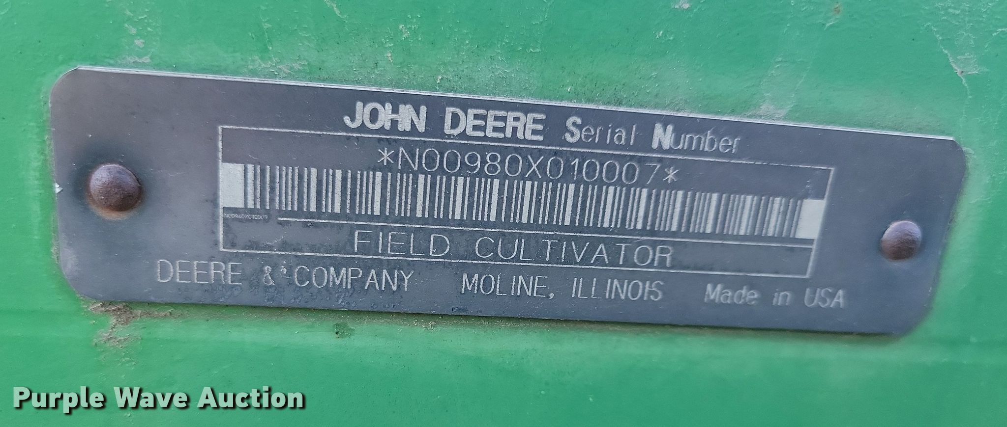 Purple Wave is selling a used Field Cultivator or Sweep Plow in Iowa. This item is a John Deere field cultivator with the following: Overall width: 35' 8", Serial: N00980X010007