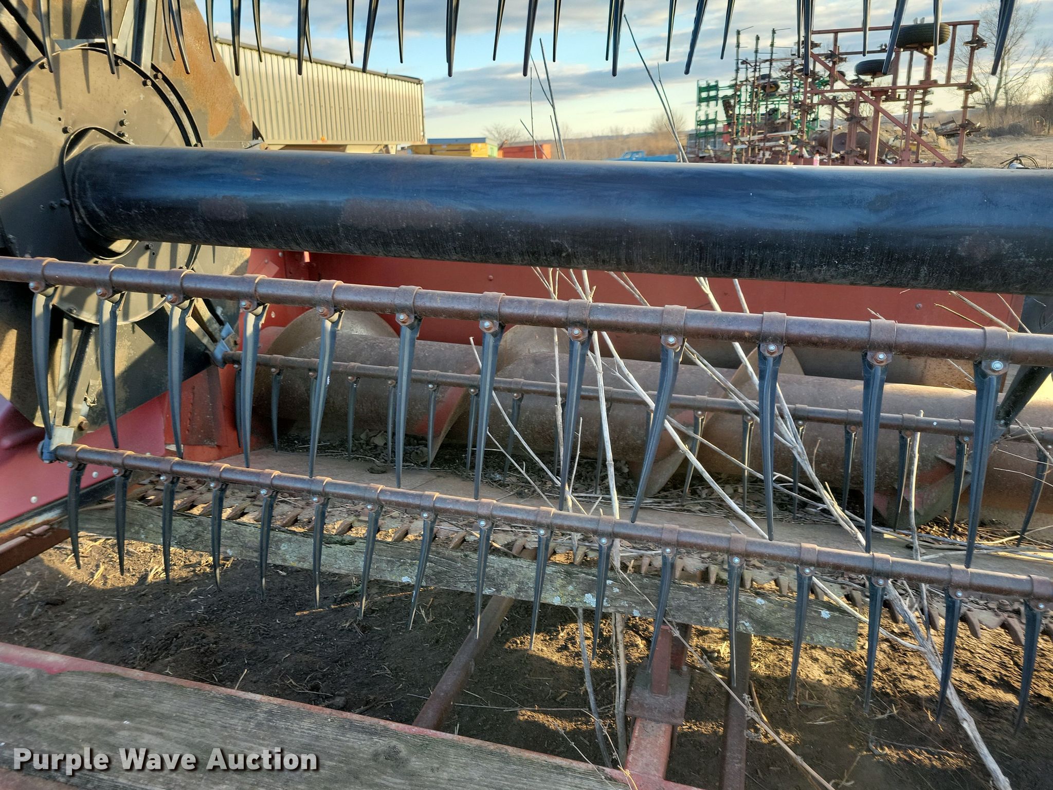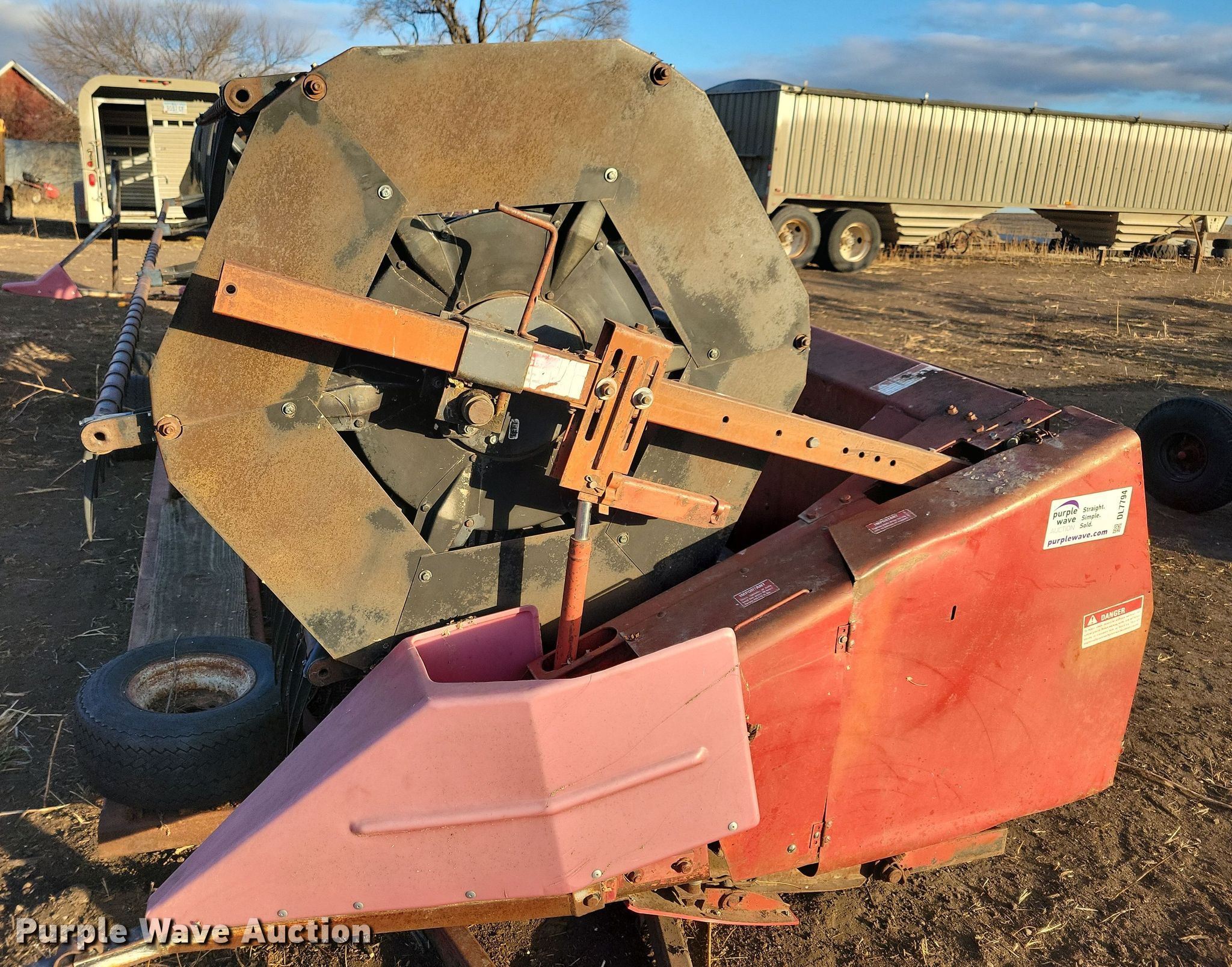 International 820-20 flex head. Serial: 1480106U016333. Features Width: 20', Reel: Finger Hydraulic reel height control, Drivelines: Single. Tires Tire size: 20.5x8-10. Tiernan Bros Farm Retirement. Woodward, IA 50276