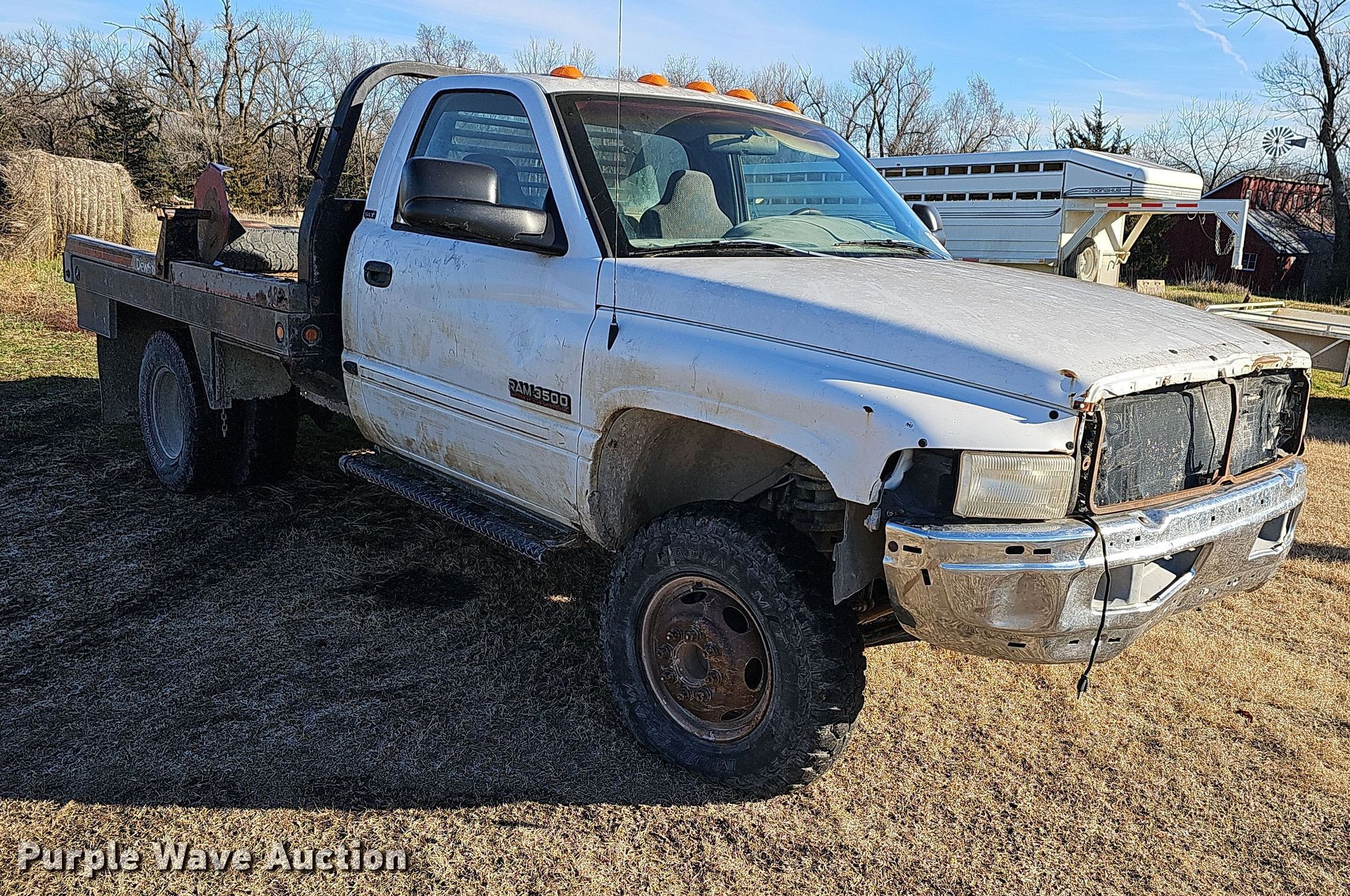 This 2001 Dodge Ram 3500 Laramie SLT bale bed pickup truck will sell to the highest bidder regardless of price.