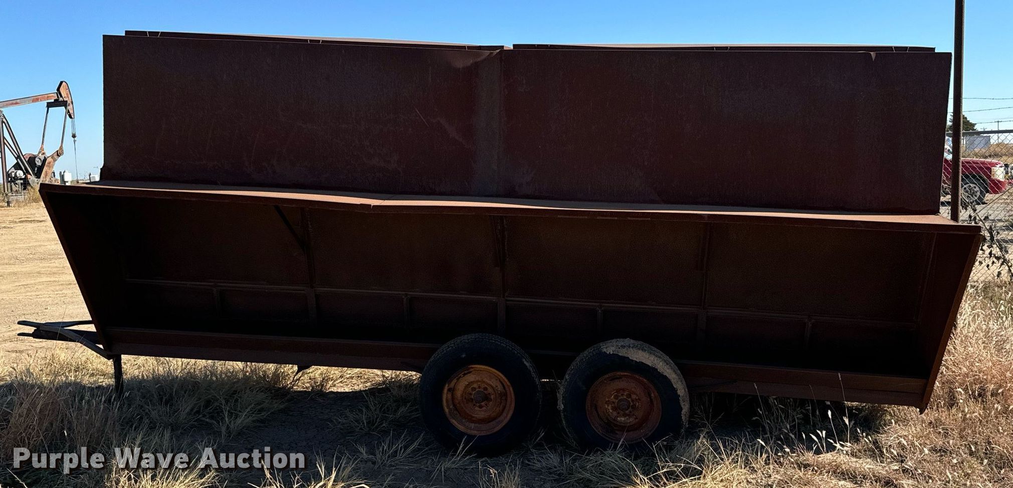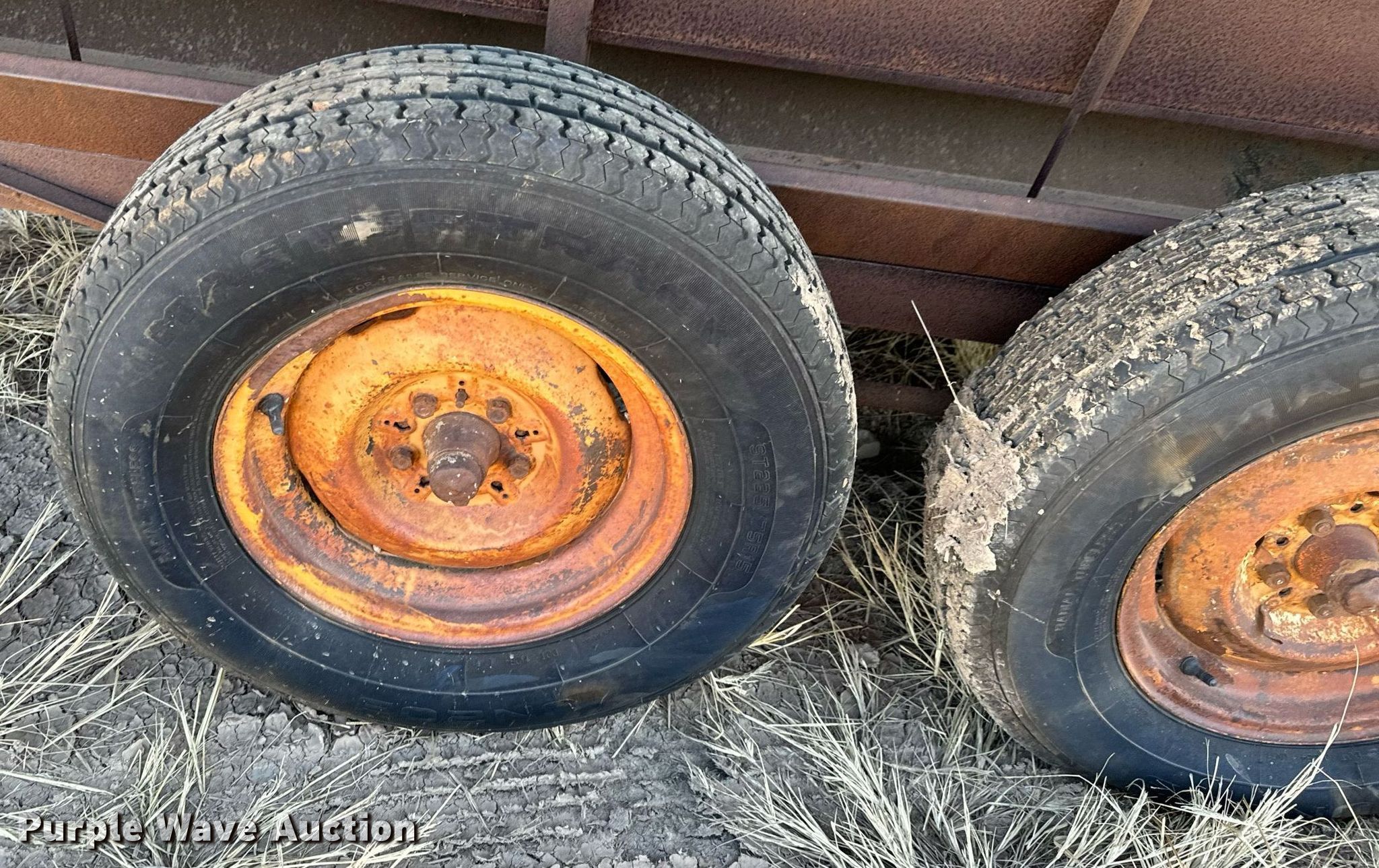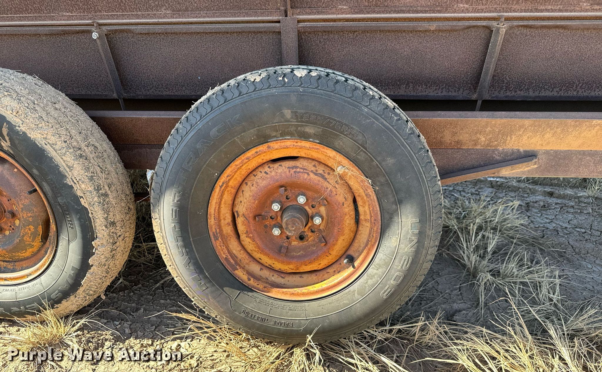 Purple Wave is selling a used Livestock Equip. in Oklahoma. This item is a Shop built creep feeder with the following: Overall: 19' 6" L x 94" W, Tires: 225/75R15