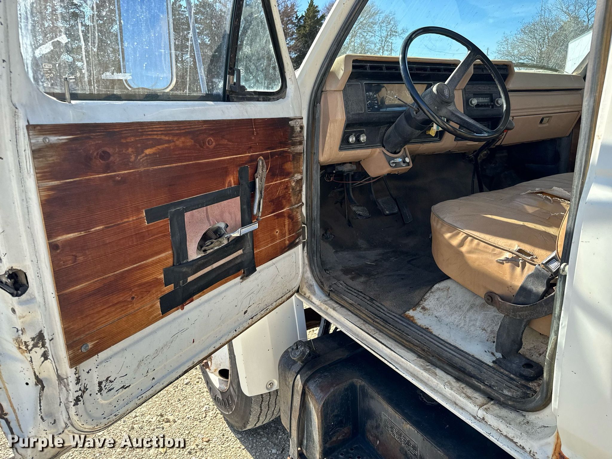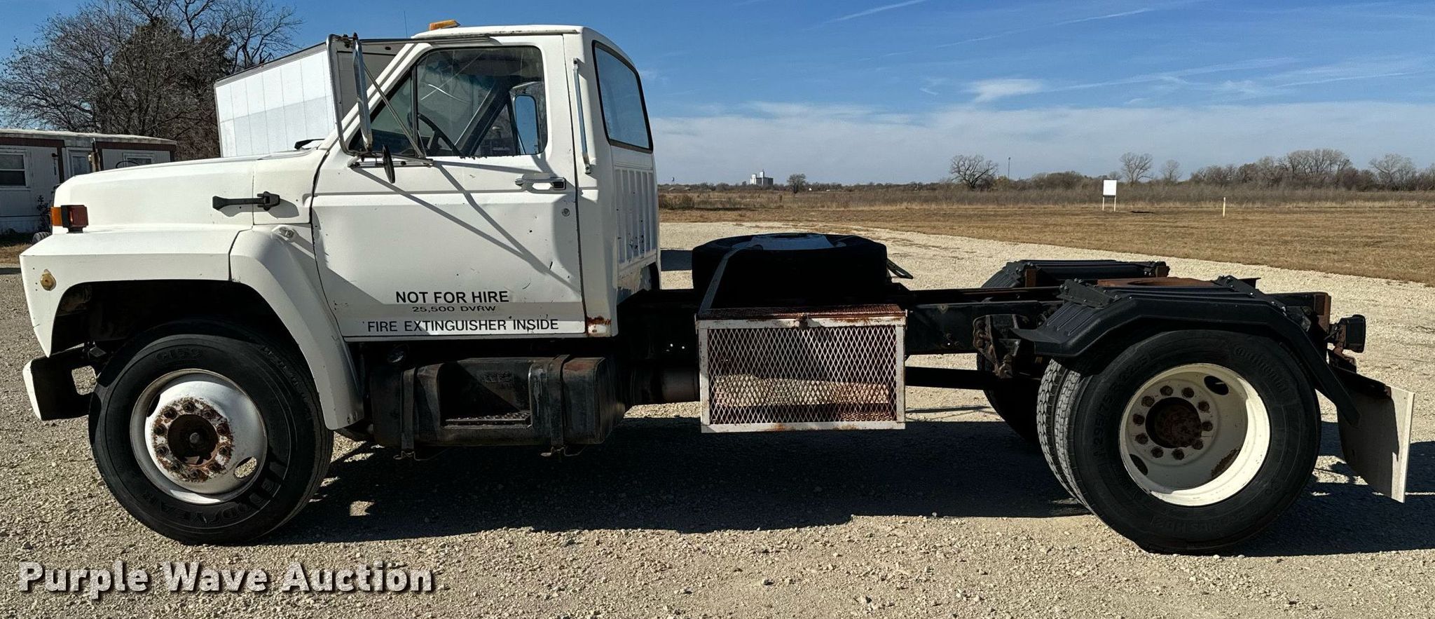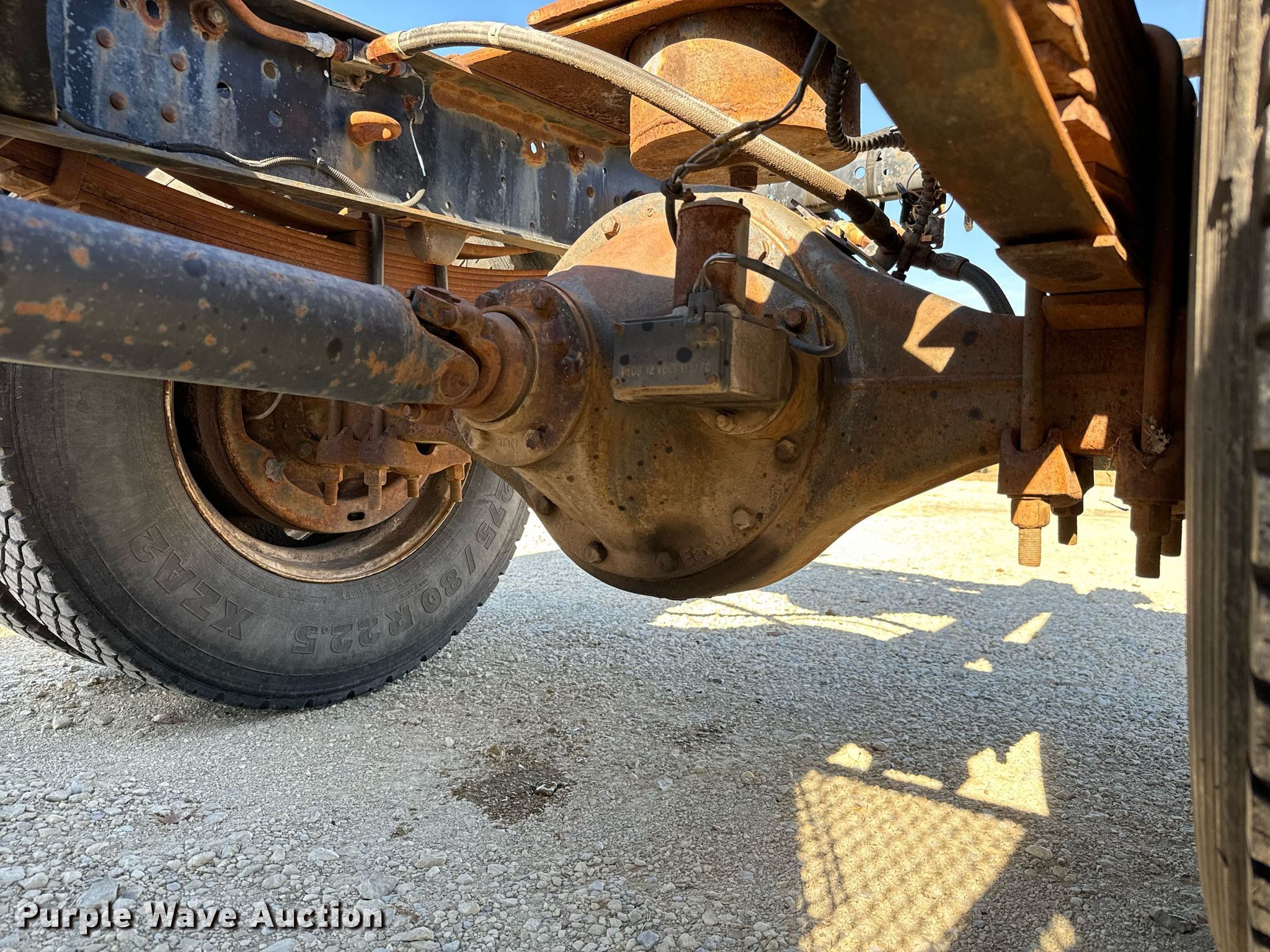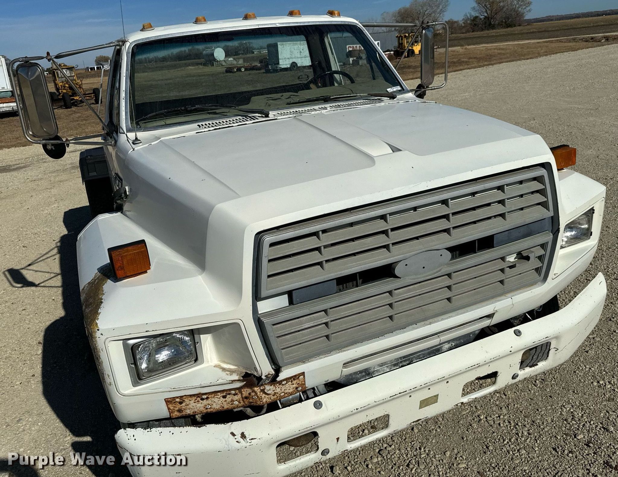 1985 Ford F700 truck cab and chassis. Miles: 144,684 on odometer, VIN: 1FDNF70HXFVA03319. Engine Displacement: 6.1L, Cylinders: 8, Fuel type: Gas. Transmission Manual, Speed: 5, plus 2. Chassis Axles: Single, Suspension: Spring, Brakes: Hydraulic, Truck chassis: 10' 8", GVWR: 24,500 lbs. Interior Heat. Features Deck plate: Steel, Fuel tank: Dual, Hitch: Gooseneck. Tires Front: 10R22.5, Rear: 295/75R22.5. Notes Windshield chipped or cracked, Gooseneck hitch , Drivers side window crank issues. Kansas title. Title distribution may be delayed up to 14 days from verification of funds. Phoenix Equipment. Nickerson, KS 67561