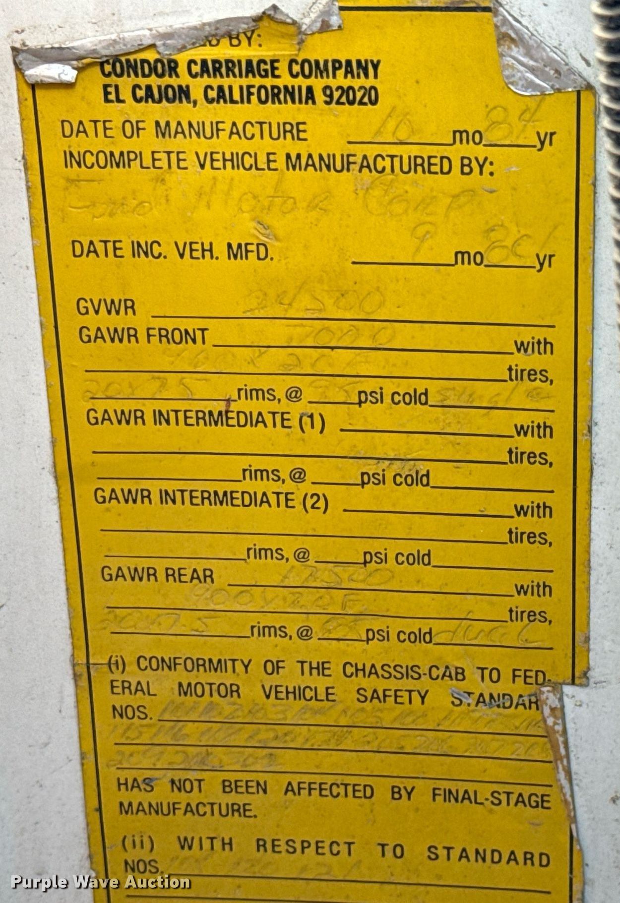 Purple Wave is selling a used Truck Chassis in Kansas. This item is a 1985 Ford F700 truck cab and chassis with the following: Miles: 144,684 on odometer, VIN: 1FDNF70HXFVA03319