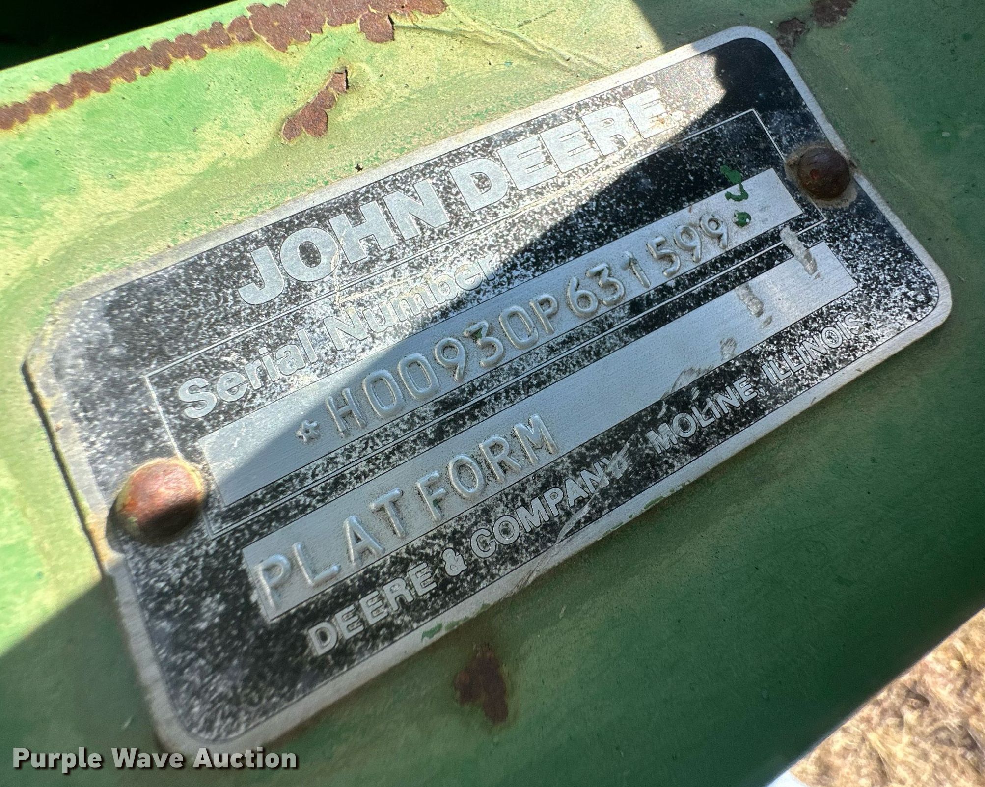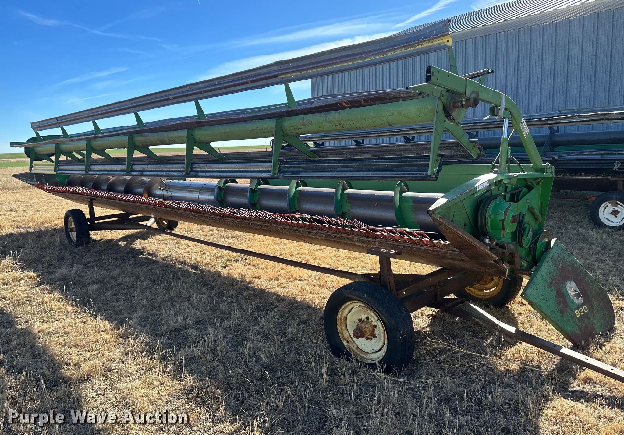 Purple Wave is selling a used Platform or Stripper Head in Kansas. This item is a John Deere 930 rigid head with the following: Serial: H00930P631599