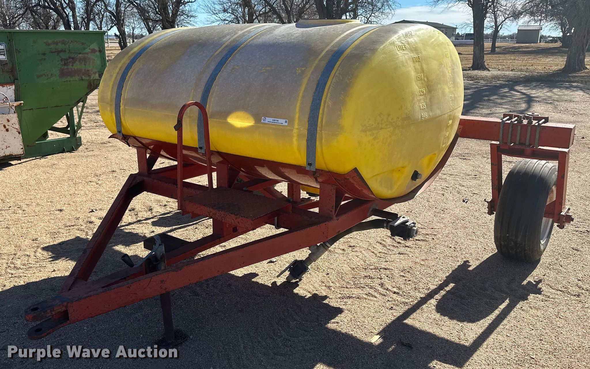Purple Wave is selling a used Applicator Attach. in Kansas. This item is a Tank trailer with the following: Tank type: Poly, Capacity: 500 gallons, Tire size: 11L-15SL