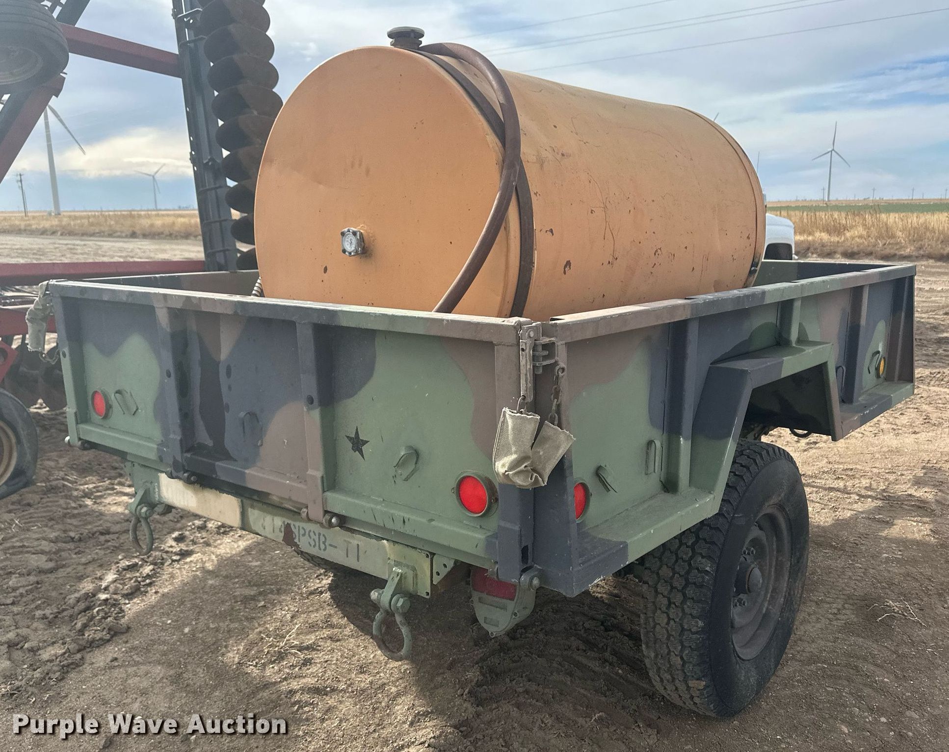 Kasel tank trailer. VIN: 2574. Features Capacity: 500 gallons. Chassis Ball hitch: 2", Landing gear: Single, Suspension: Spring, Brakes: Hydraulic. Tires Steel wheels, Size: 235/85R16. Transfer of ownership documentation will be a bill of sale. Ulysses, KS 67880