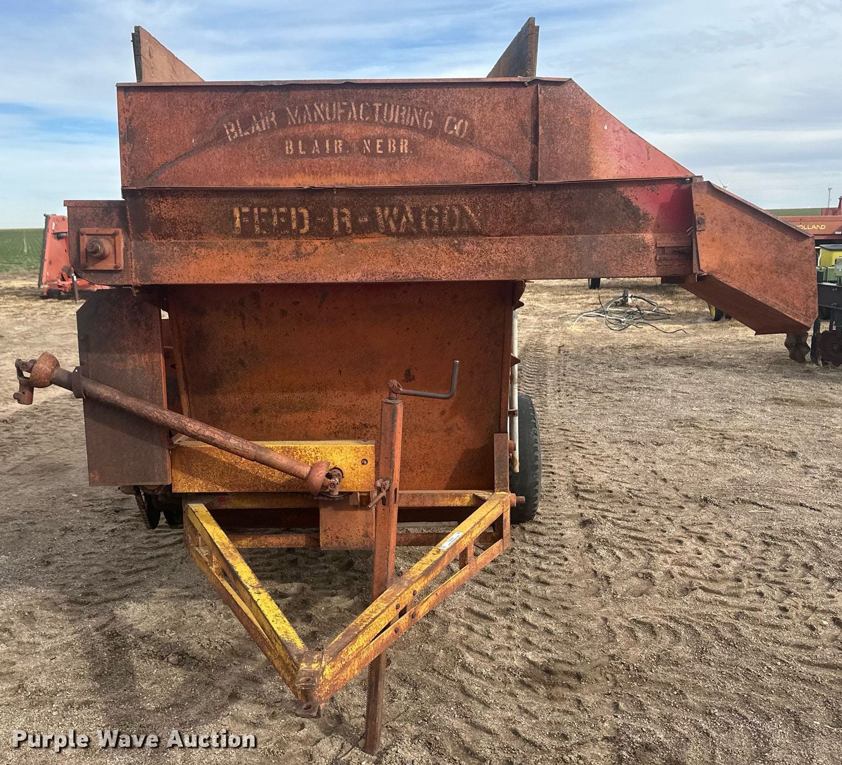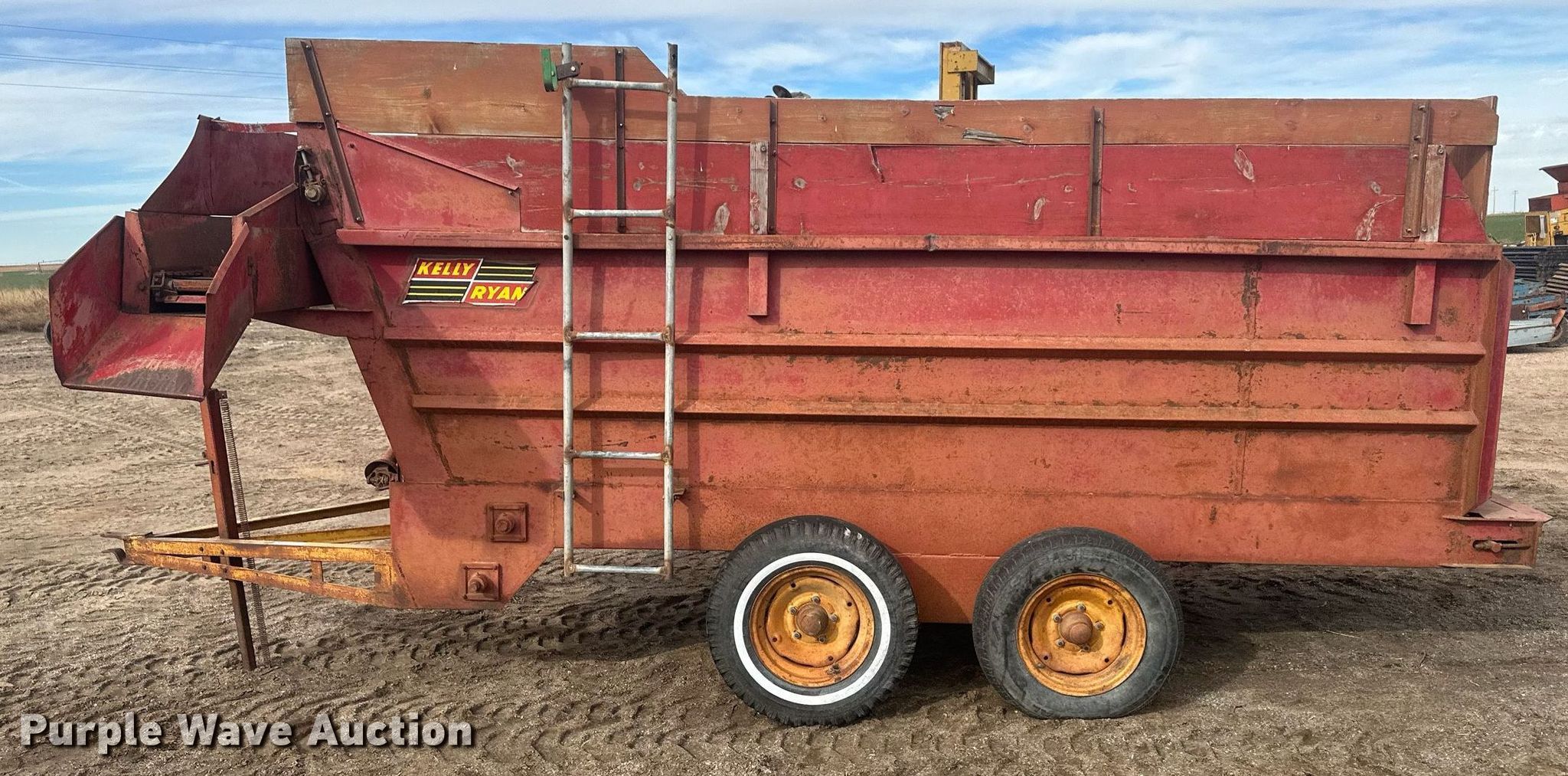 Purple Wave is selling a used Feed Mixer or Bale Processor in Kansas. This item is a Kelly-Ryan feed wagon with the following: PTO: 540, Discharge: Side, Width: 15", Chute: Manual