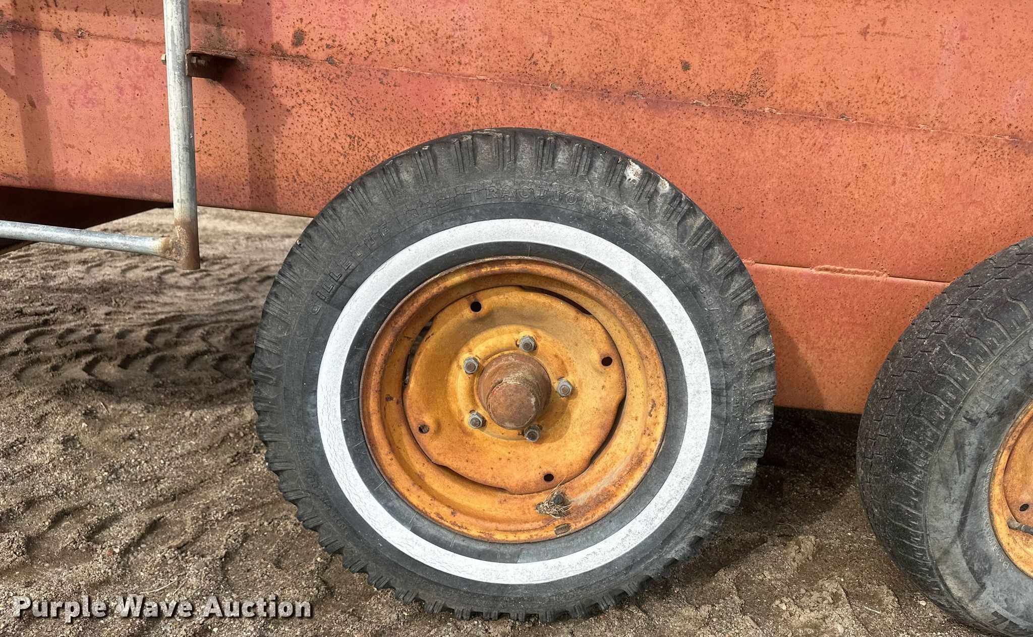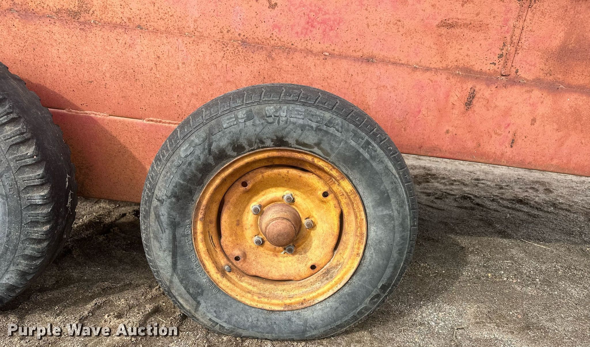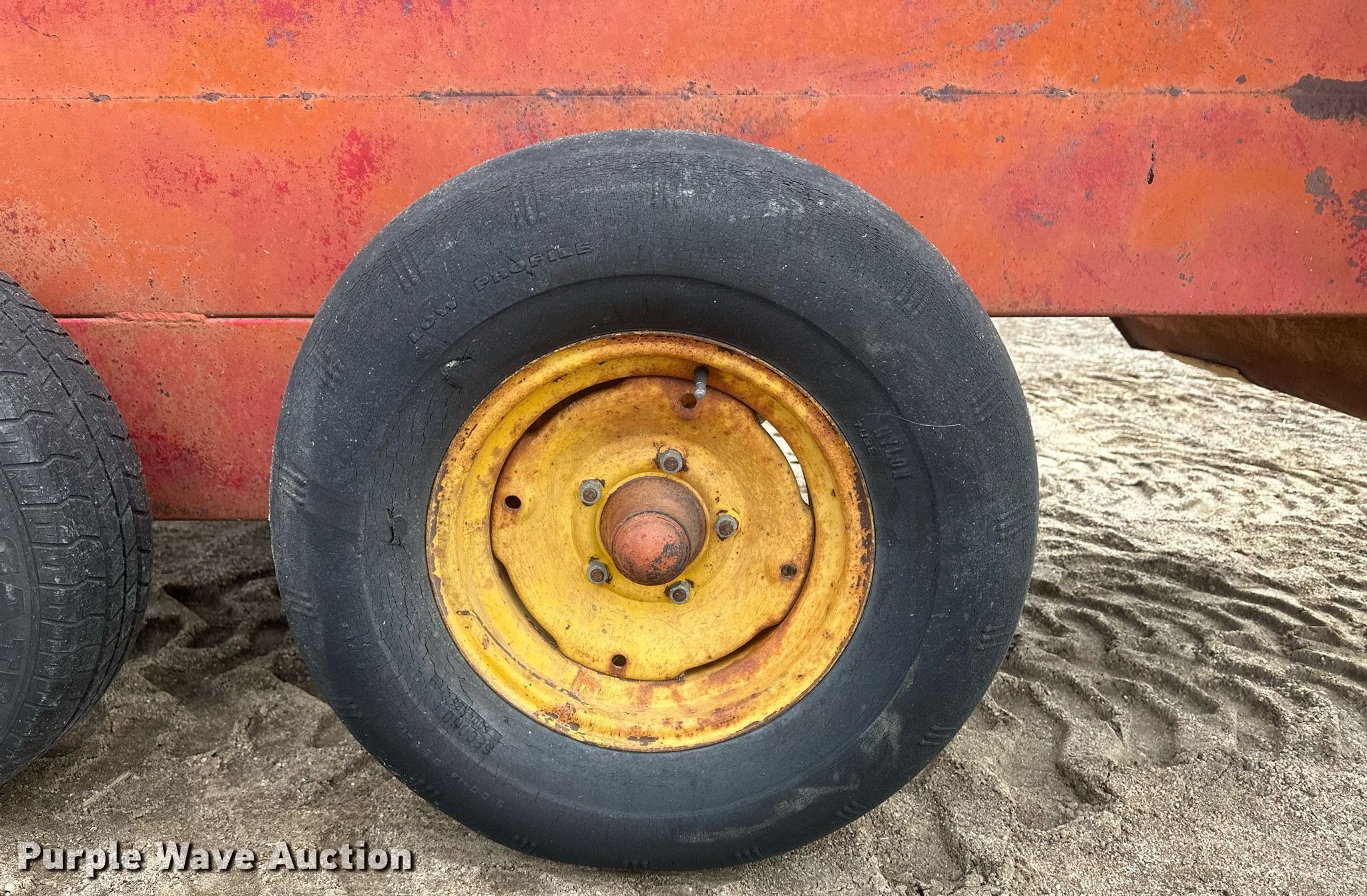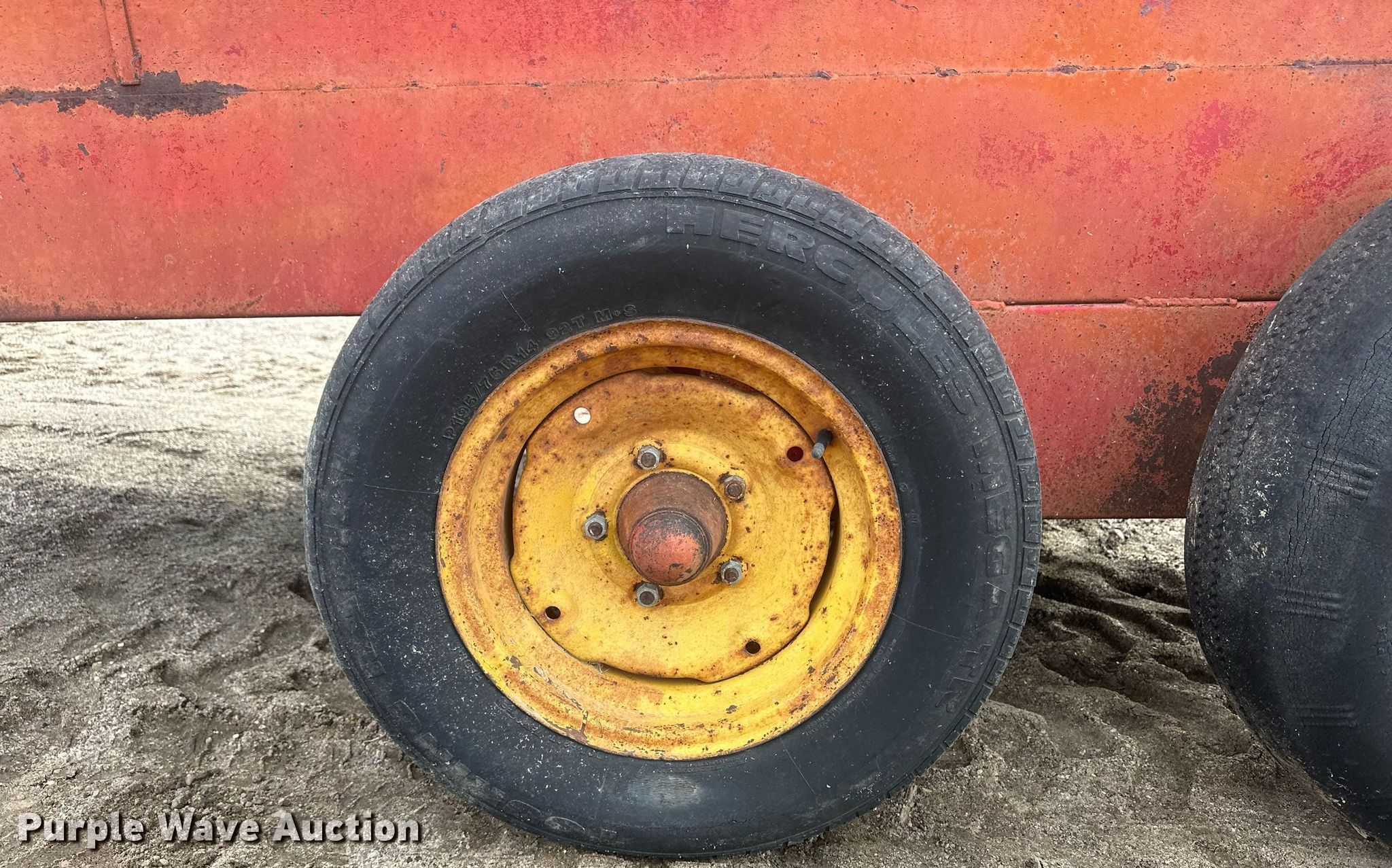 Kelly-Ryan feed wagon. Features. PTO: 540, Discharge: Side Width: 15", Chute: Manual. Chassis Axles: Tandem. Tires Size: 3.8/8.50-14. Ulysses, KS 67880