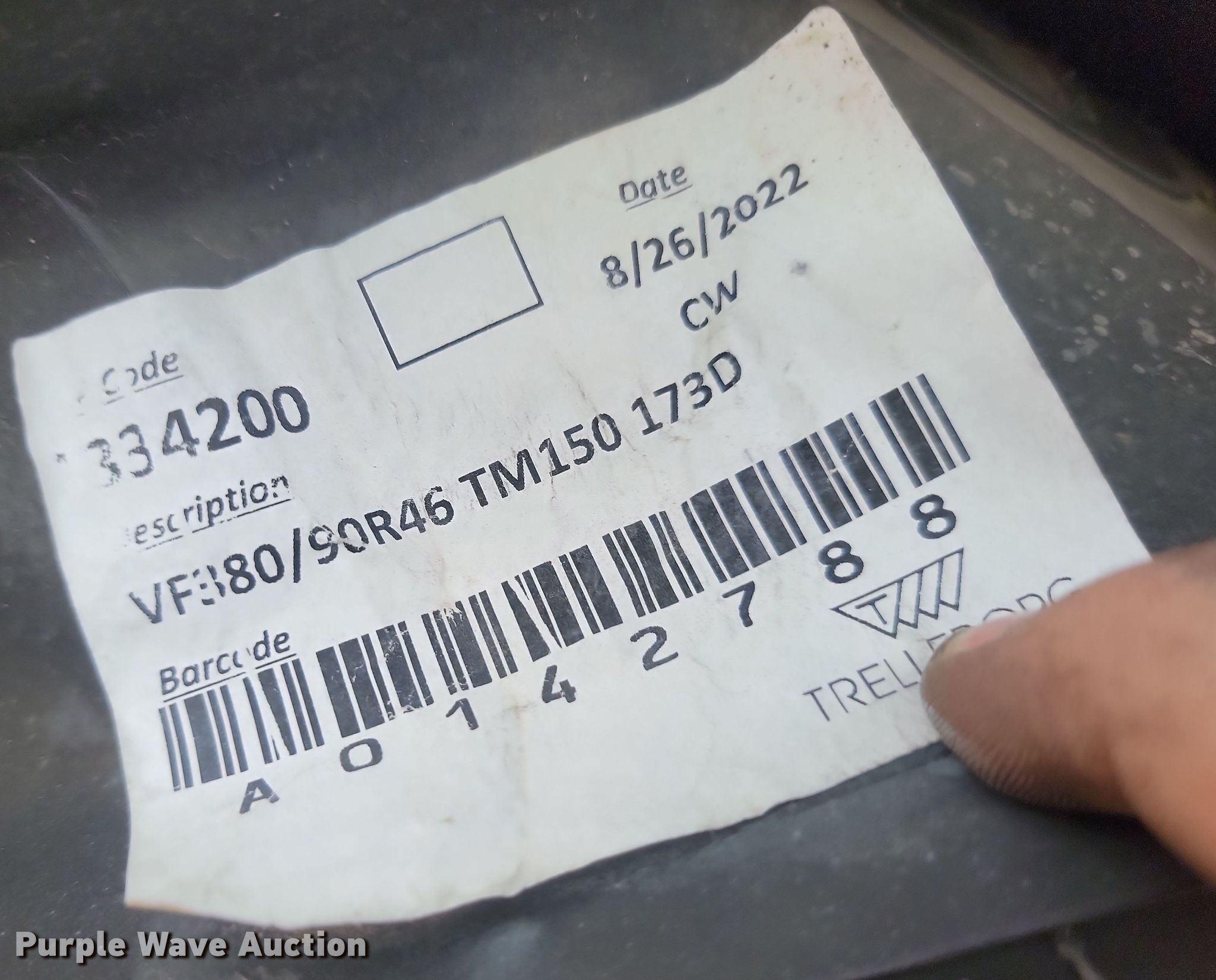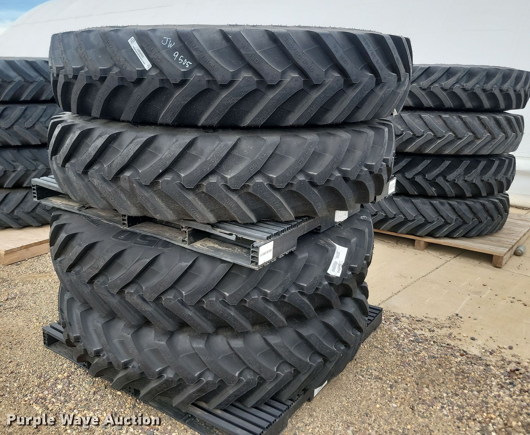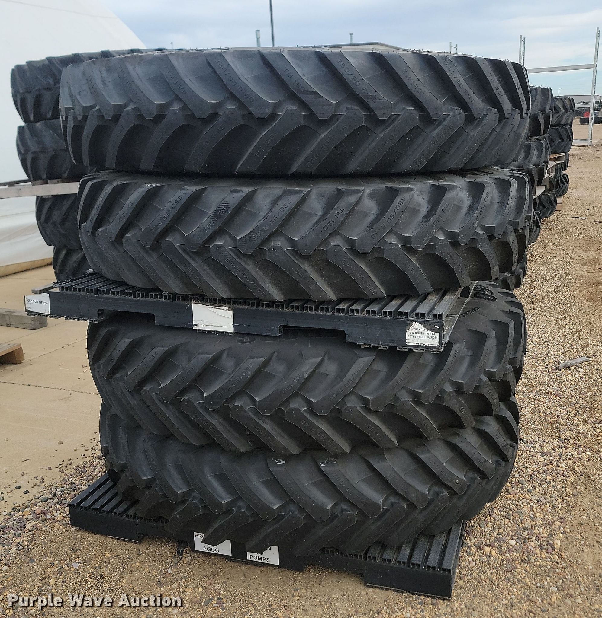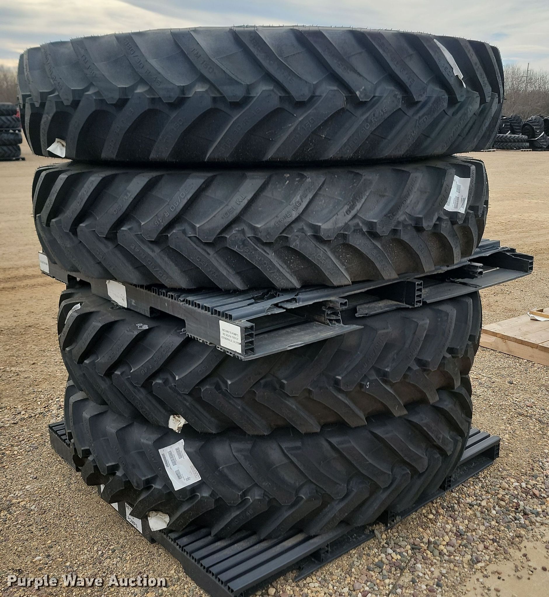 Purple Wave is selling a used Industrial Tires or Tracks in Minnesota. This item is a (4) Trelleborg TM150 380/90R46 tires and wheels with the following: Unused