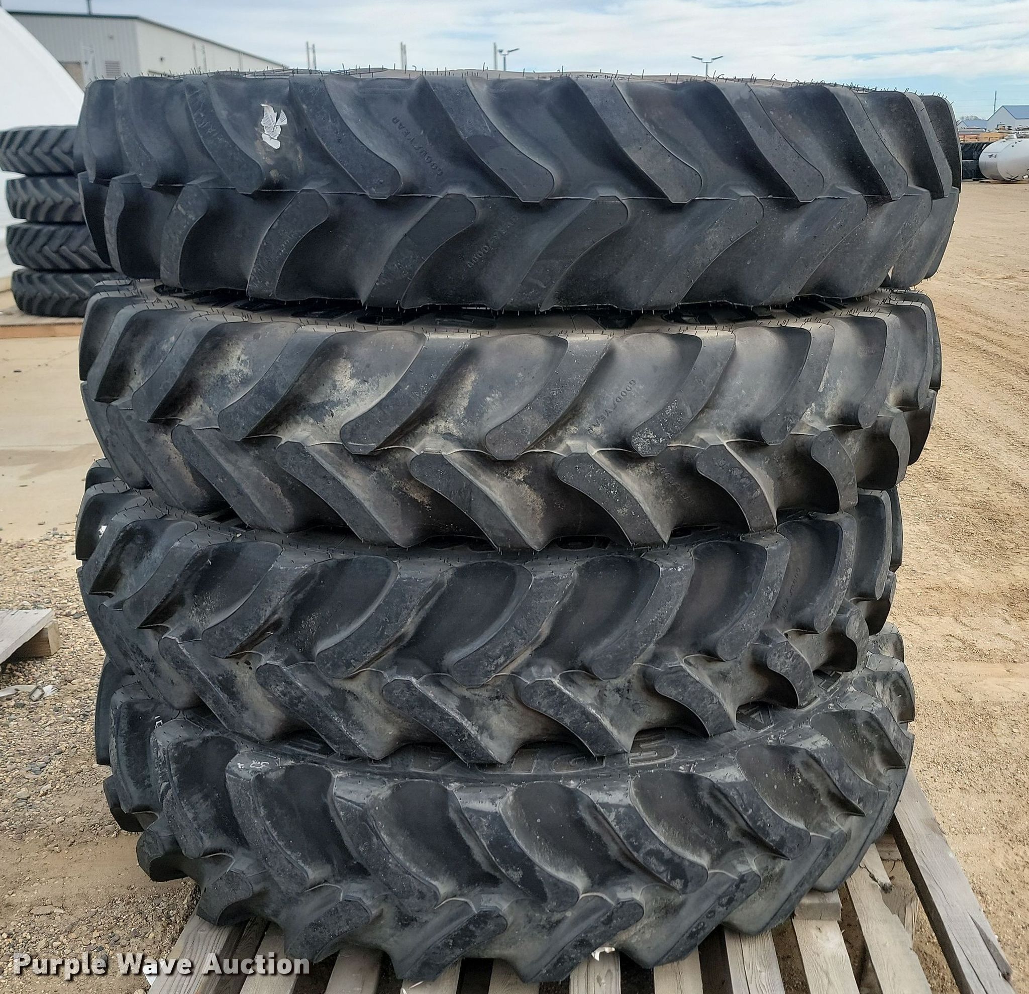 Purple Wave is selling a used Industrial Tires or Tracks in Minnesota. This item is a (4) Goodyear Ultra Sprayer 380/90R46 tires and wheels with the following: Unused