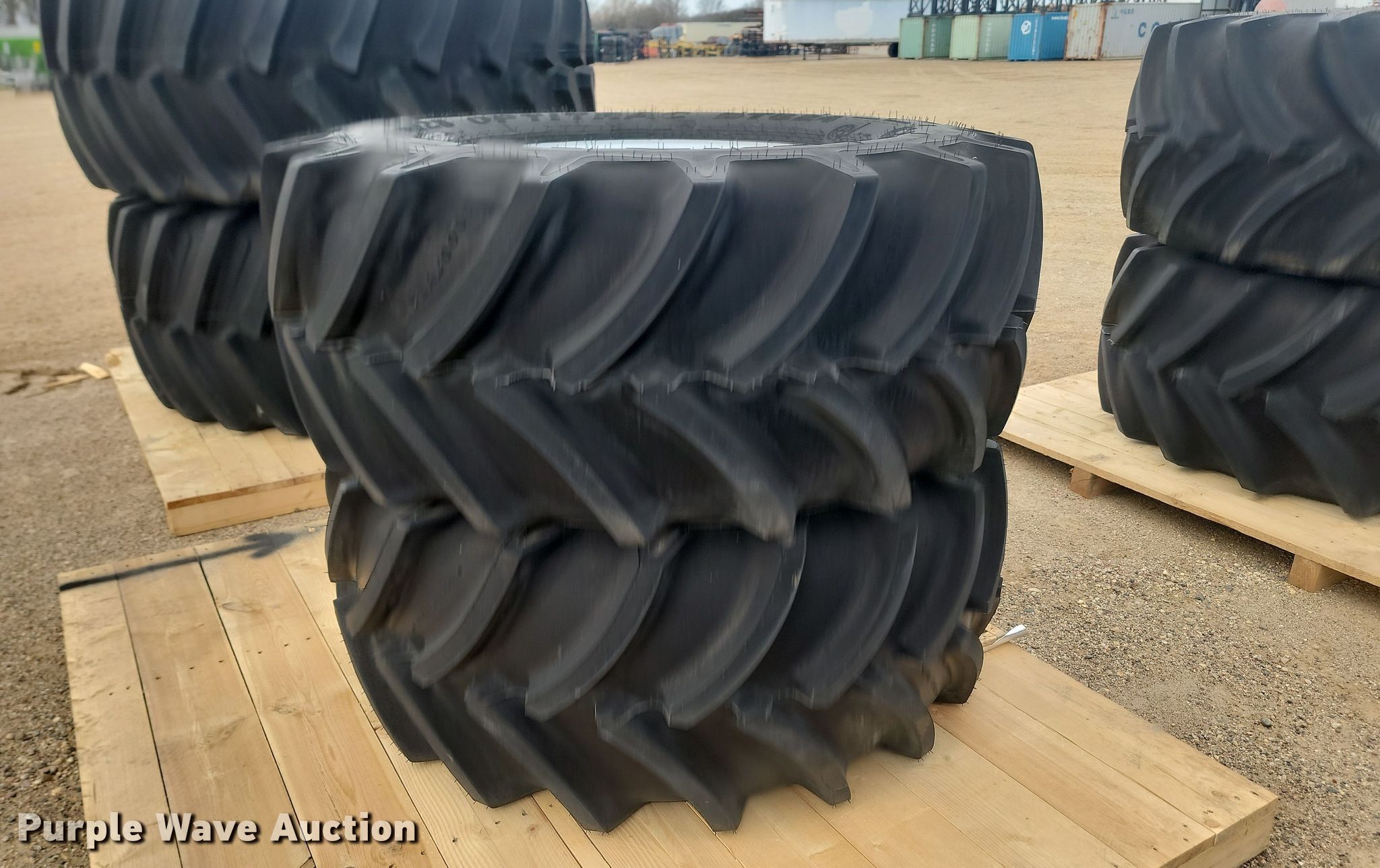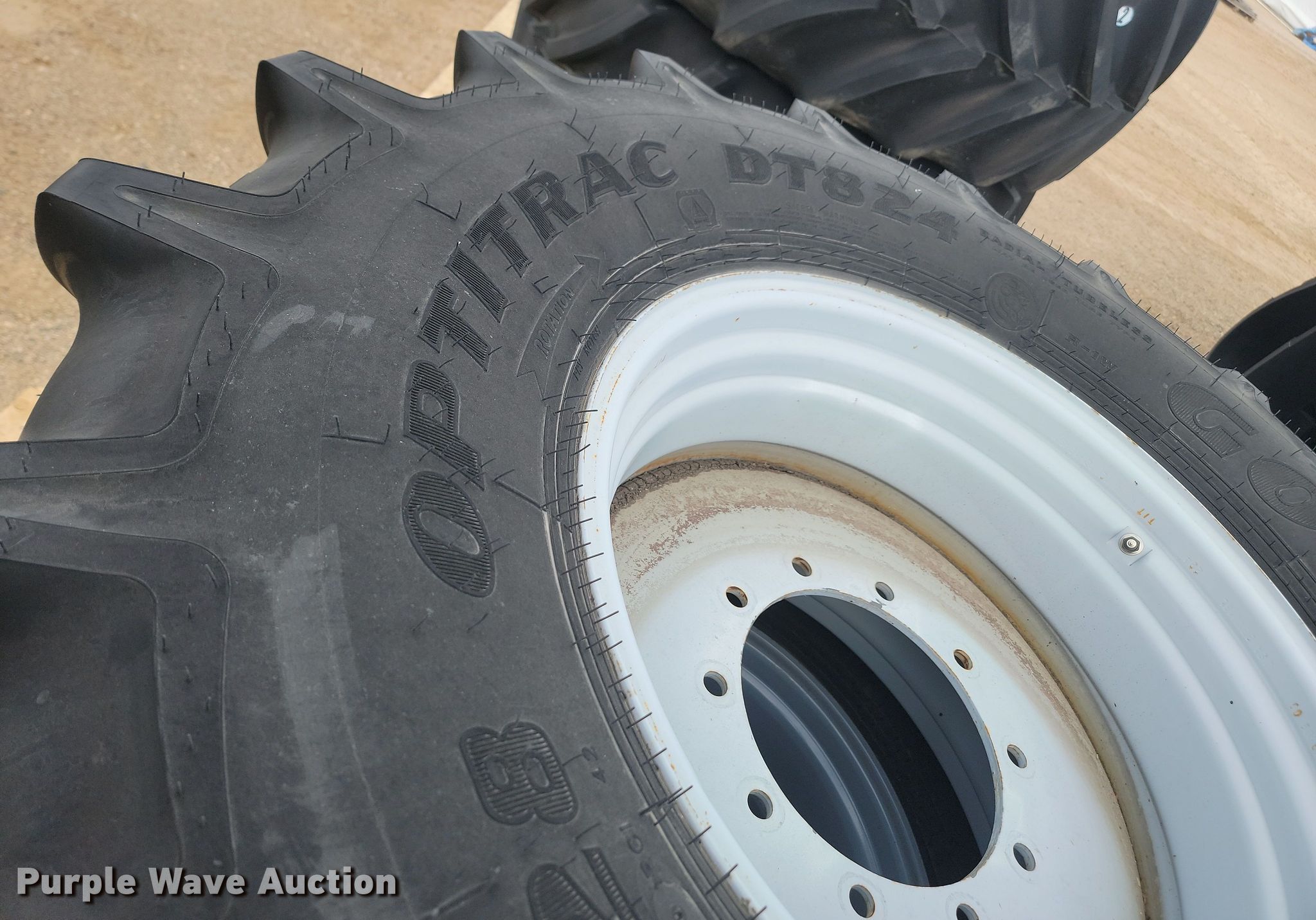 Purple Wave is selling a used Industrial Tires or Tracks in Minnesota. This item is a (2) Goodyear Optic Trac DT824 600/65R28 tires and wheels with the following: Unused