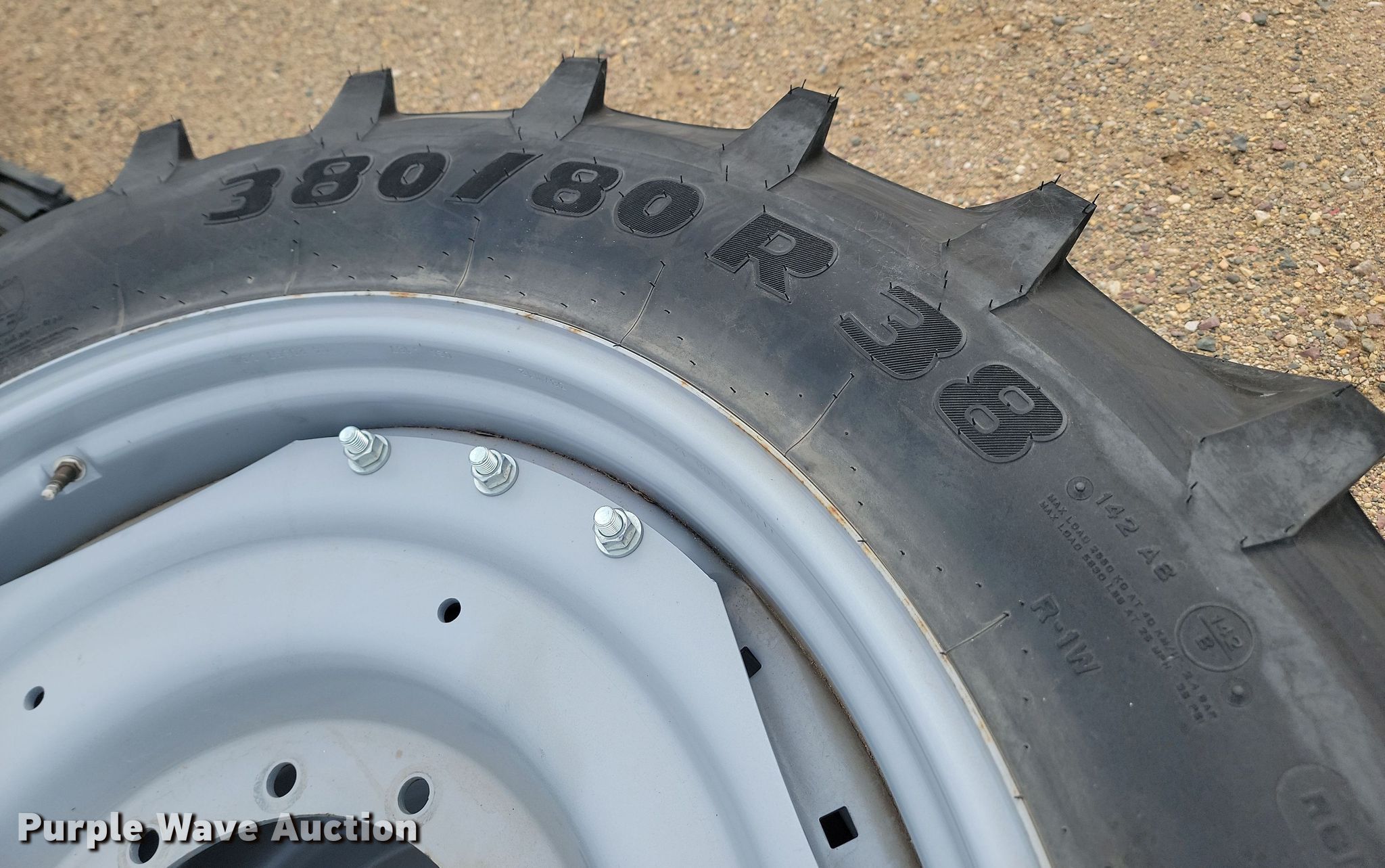 (2) Trelleborg TM600 380/80R38 tires and wheels. Unused. AGCO. 202 Industrial Parkway. Jackson, MN 56143