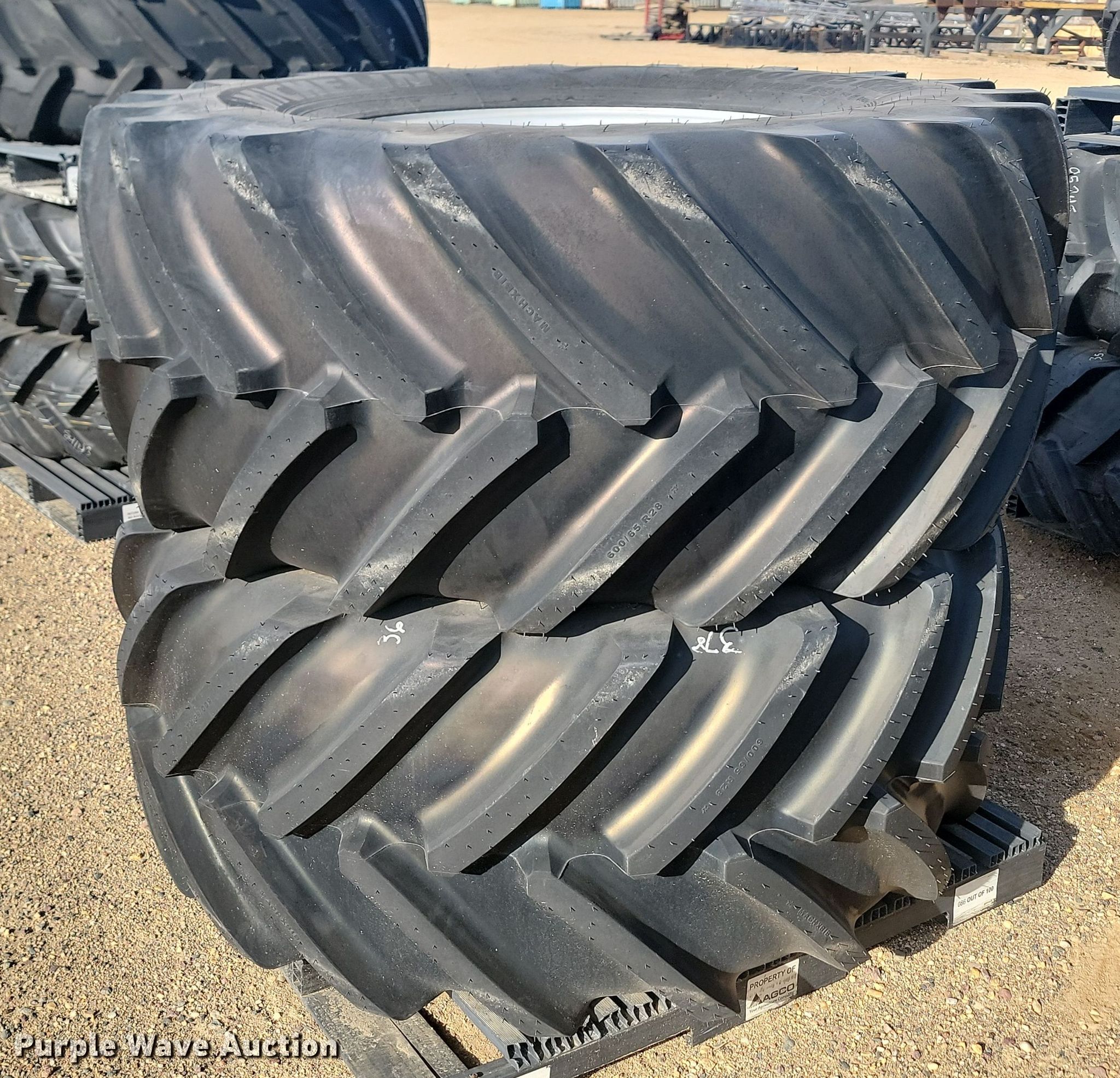 Purple Wave is selling a used Industrial Tires or Tracks in Minnesota. This item is a (2) Michelin Mach x Bib 600/65R28 tires and wheels with the following: Unused