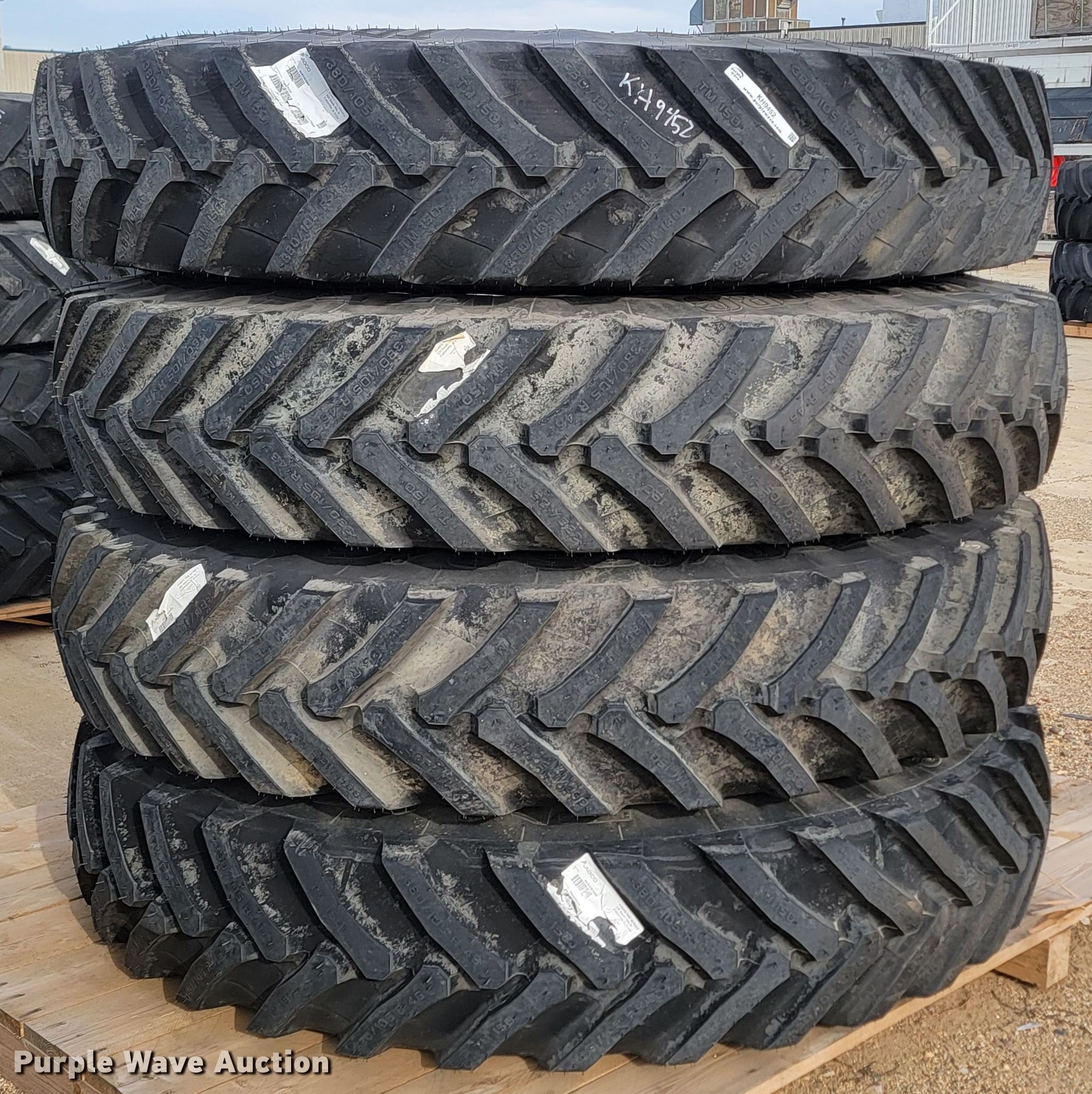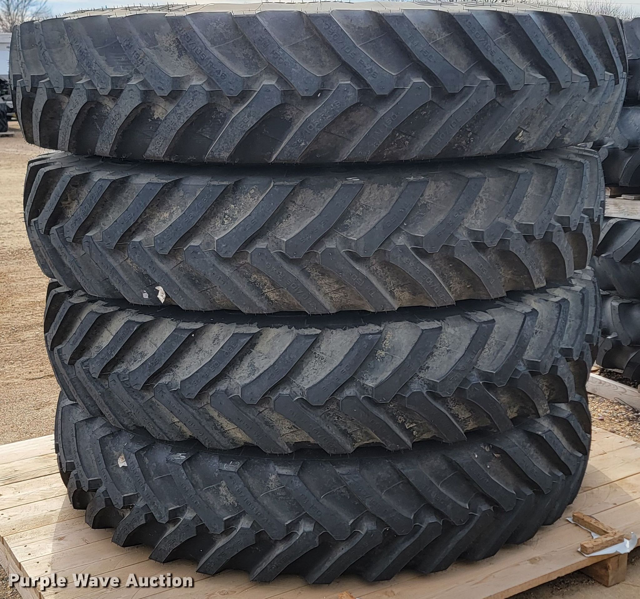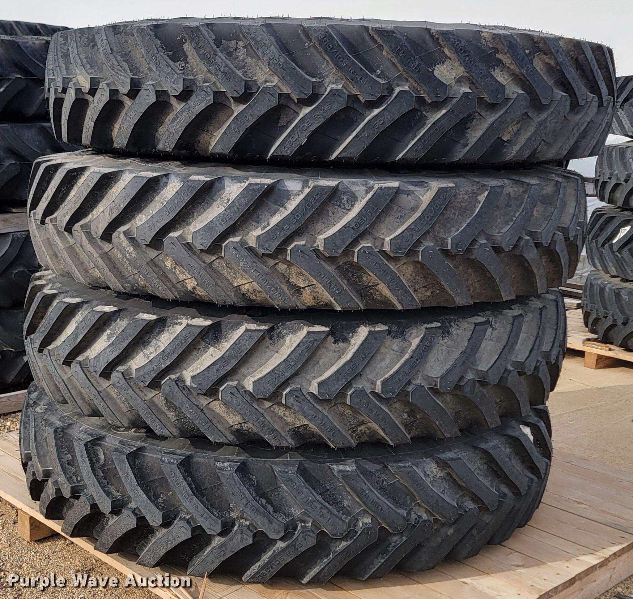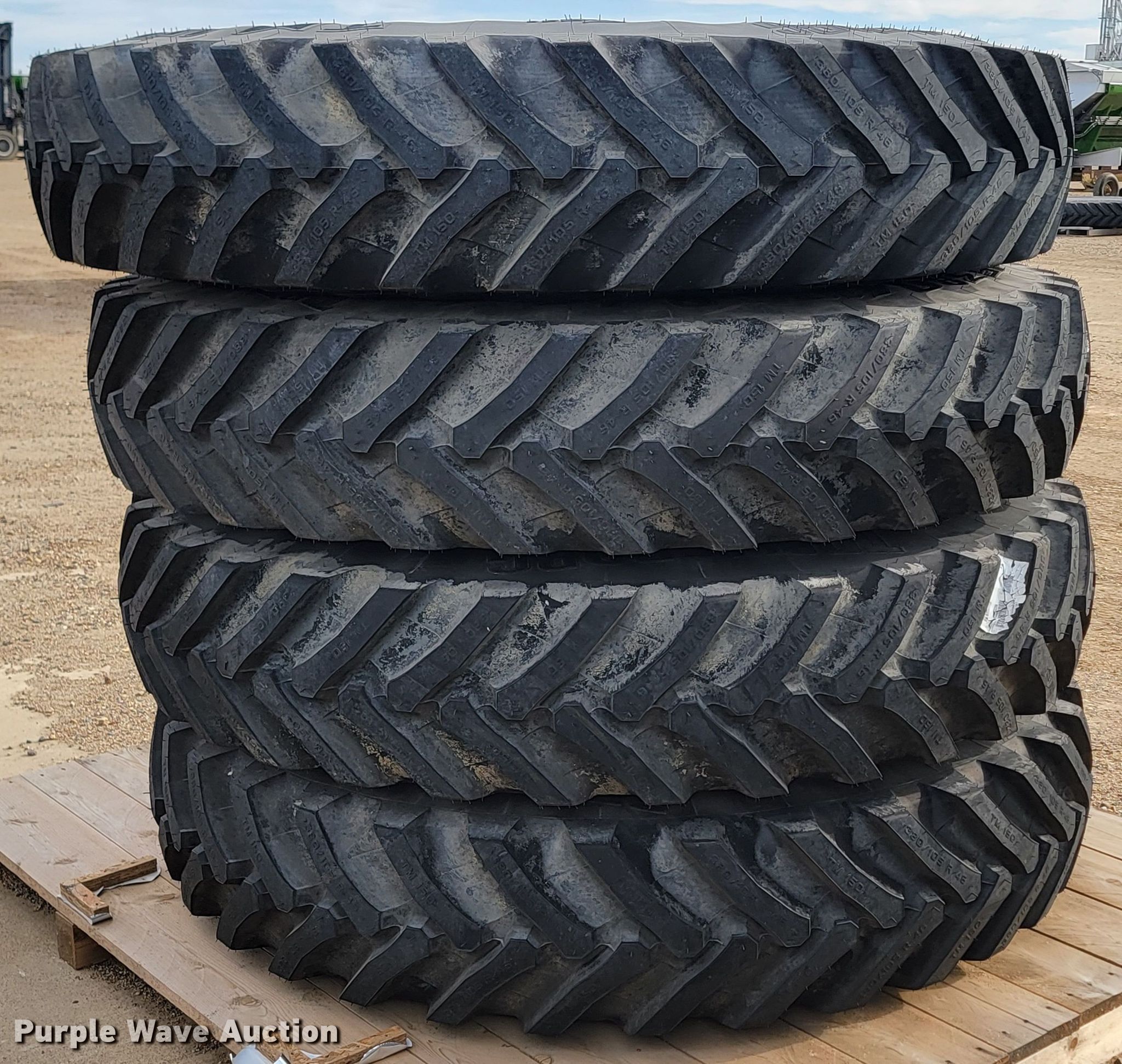 Purple Wave is selling a used Industrial Tires or Tracks in Minnesota. This item is a (4) Trelleborg TM150 VF 380/105R46 tires and wheels with the following: Unused