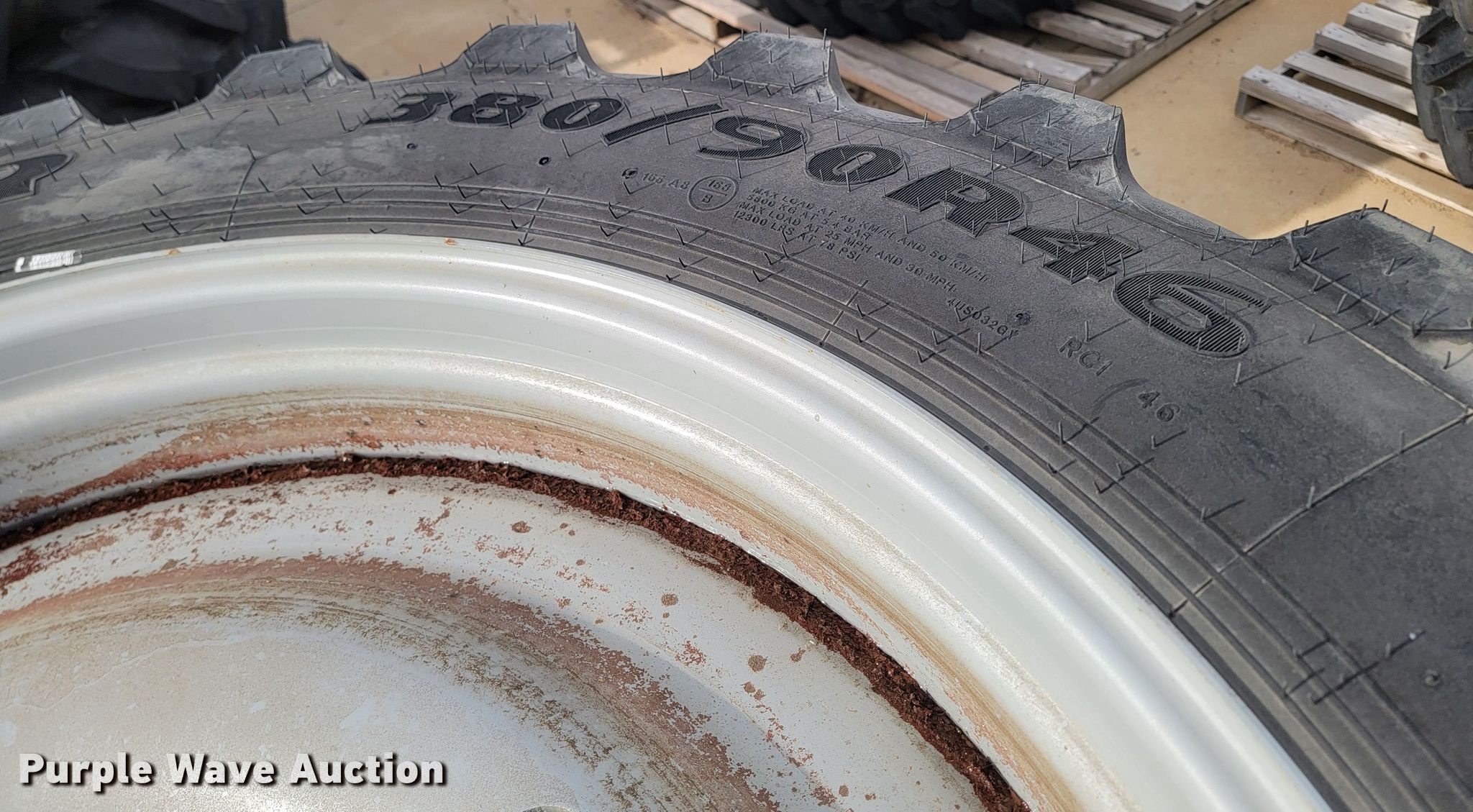 (4) Goodyear Ultra Sprayer 380/90R46 tires and wheels. Unused. AGCO. 202 Industrial Parkway. Jackson, MN 56143