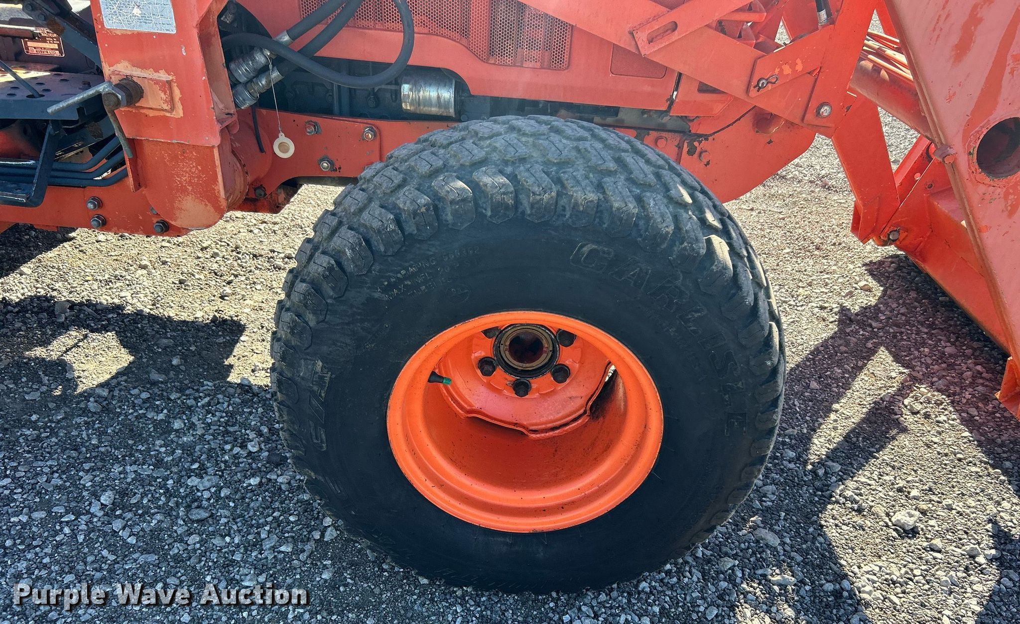 Kubota L4150DT tractor. Hours: 2,239 on meter, Serial: L4150DT-51678. Engine Cylinders: 5, Fuel type: Diesel. Transmission Synchro, 8F - 8R, Differential lock. Features PTO: 540, Three point Top link, Hydraulic remote sets Rear: 1, Loader Kubota BF900, Controls: Joystick, Bucket Width: 68".. Tires Front: 31x13.50-15 NHS, Rear: 46x25.00-20. 15107 North 137th East Avenue. Collinsville, OK 74021