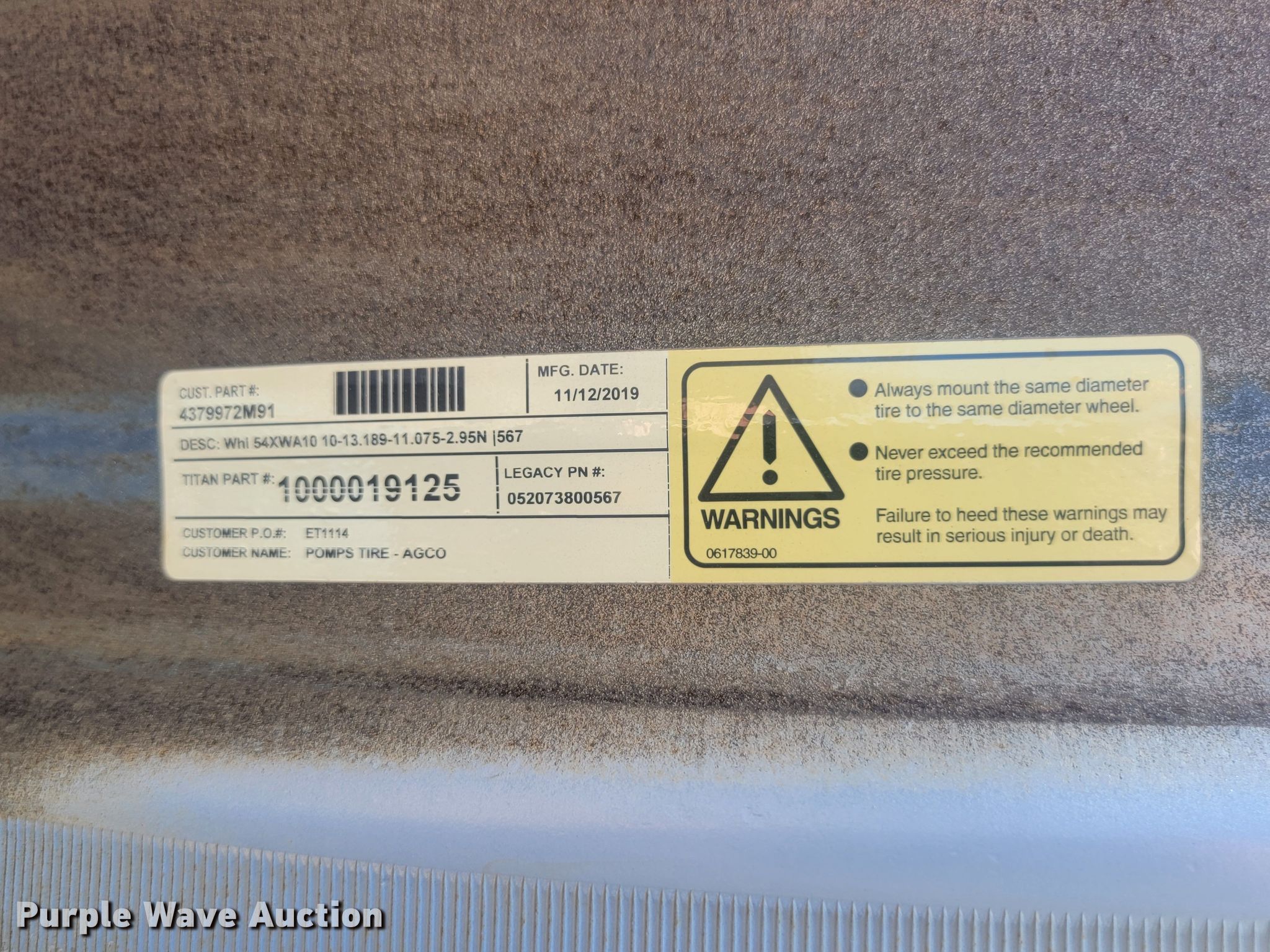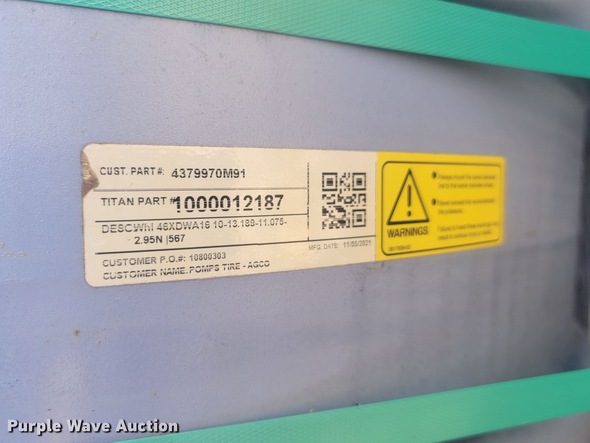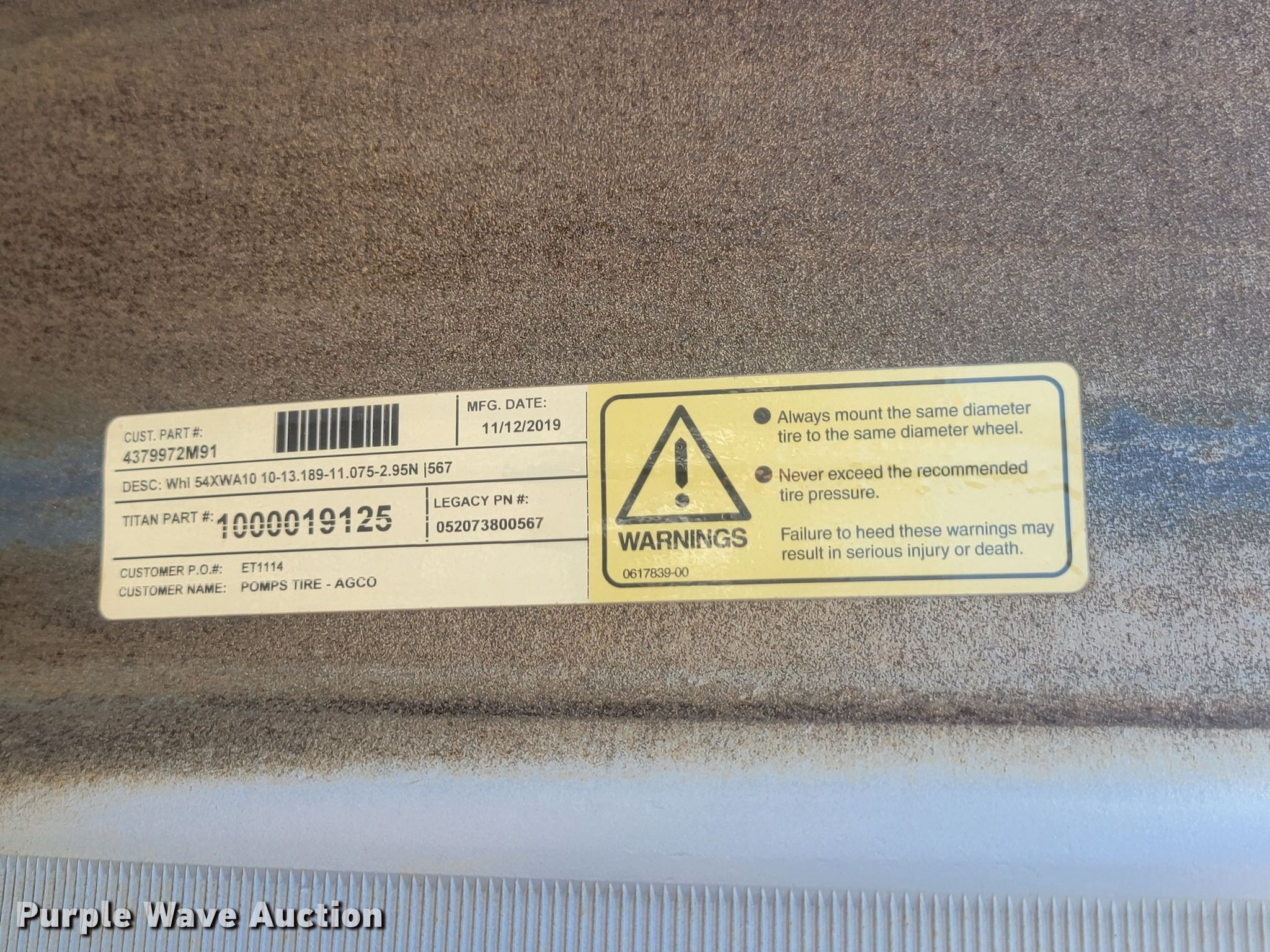 Purple Wave is selling a used Industrial Tires or Tracks in Minnesota. This item is a (51) Titan wheels with the following: Diameter: 48", Unused