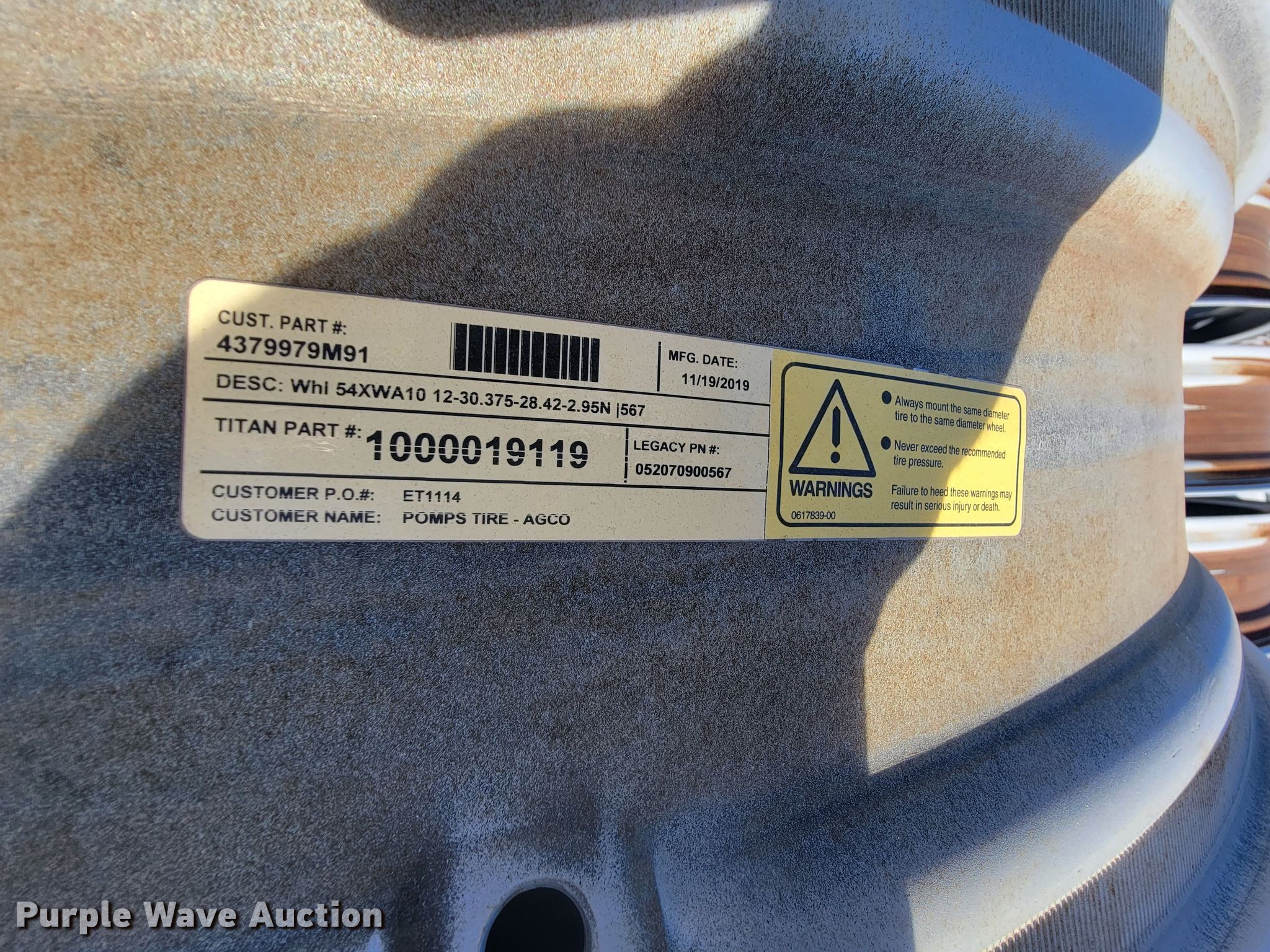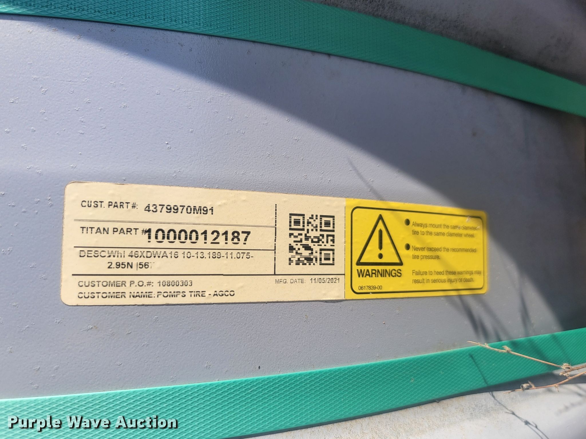 (60) Titan wheels. (48) wheels Diameter: 48", (12) wheels Diameter: 56", Unused. AGCO. 3 6th Avenue. Round Lake, MN 56167