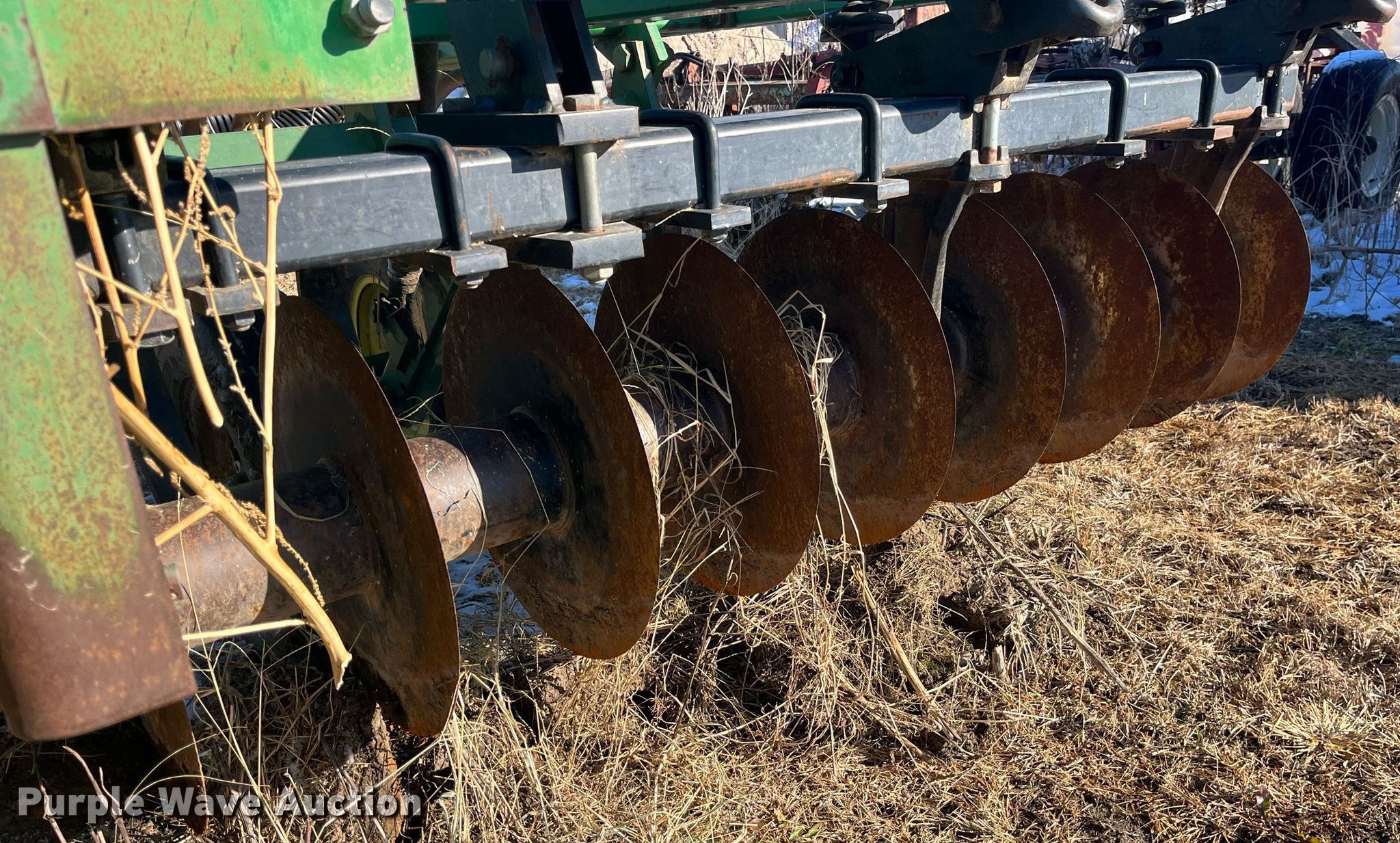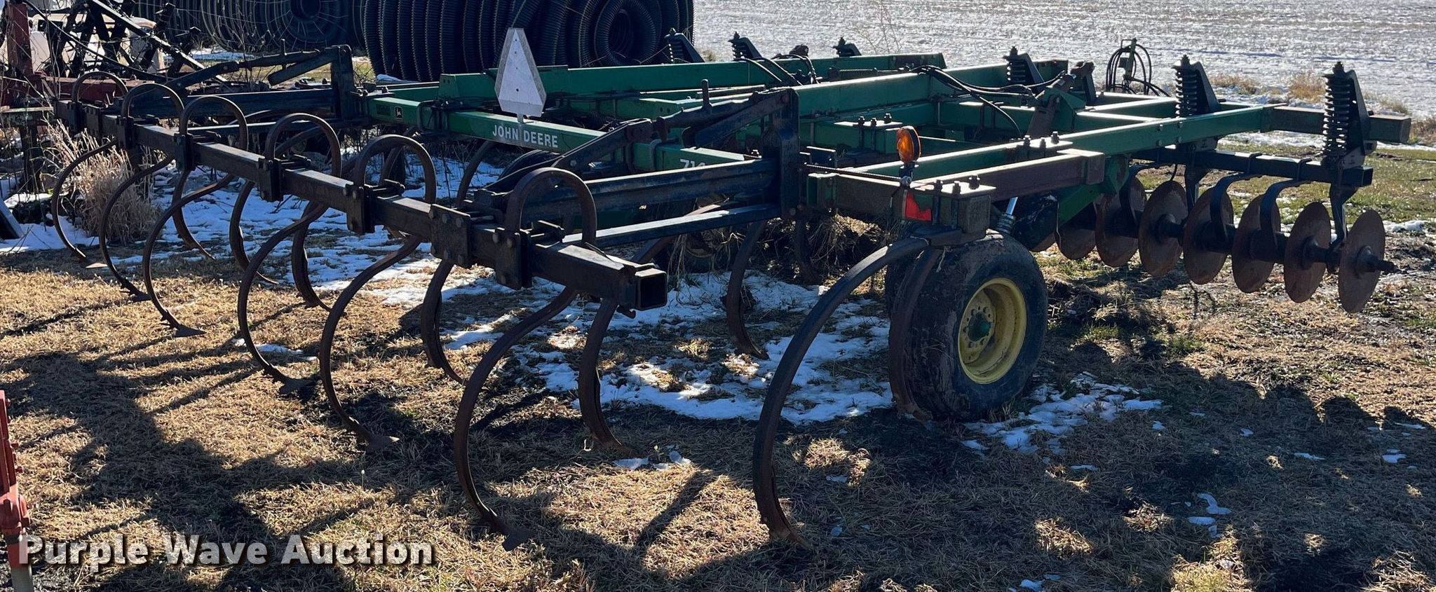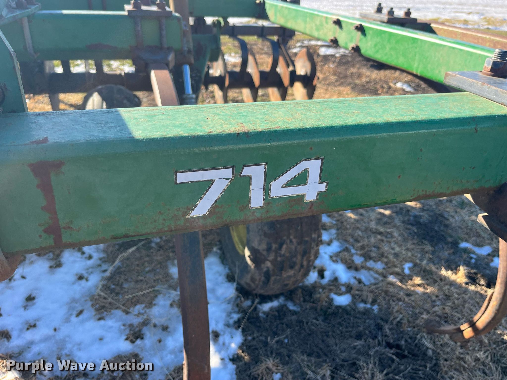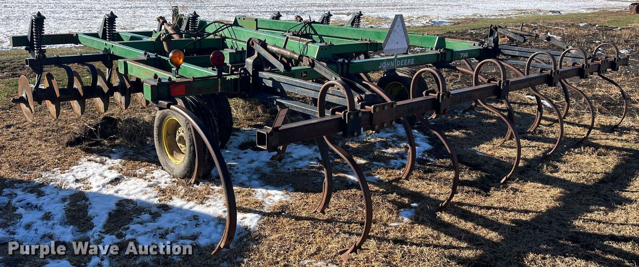 Purple Wave is selling a used Disk Ripper in Missouri. This item is a John Deere 714 disk ripper with the following: Overall width: 16', Serial: N00714X004769