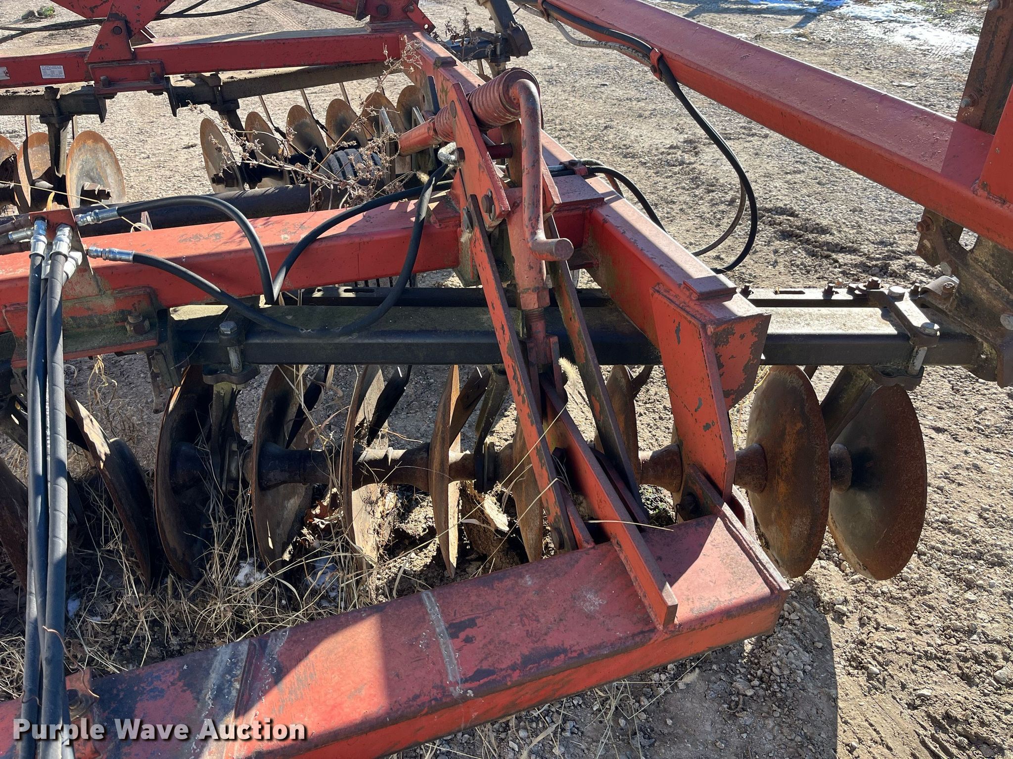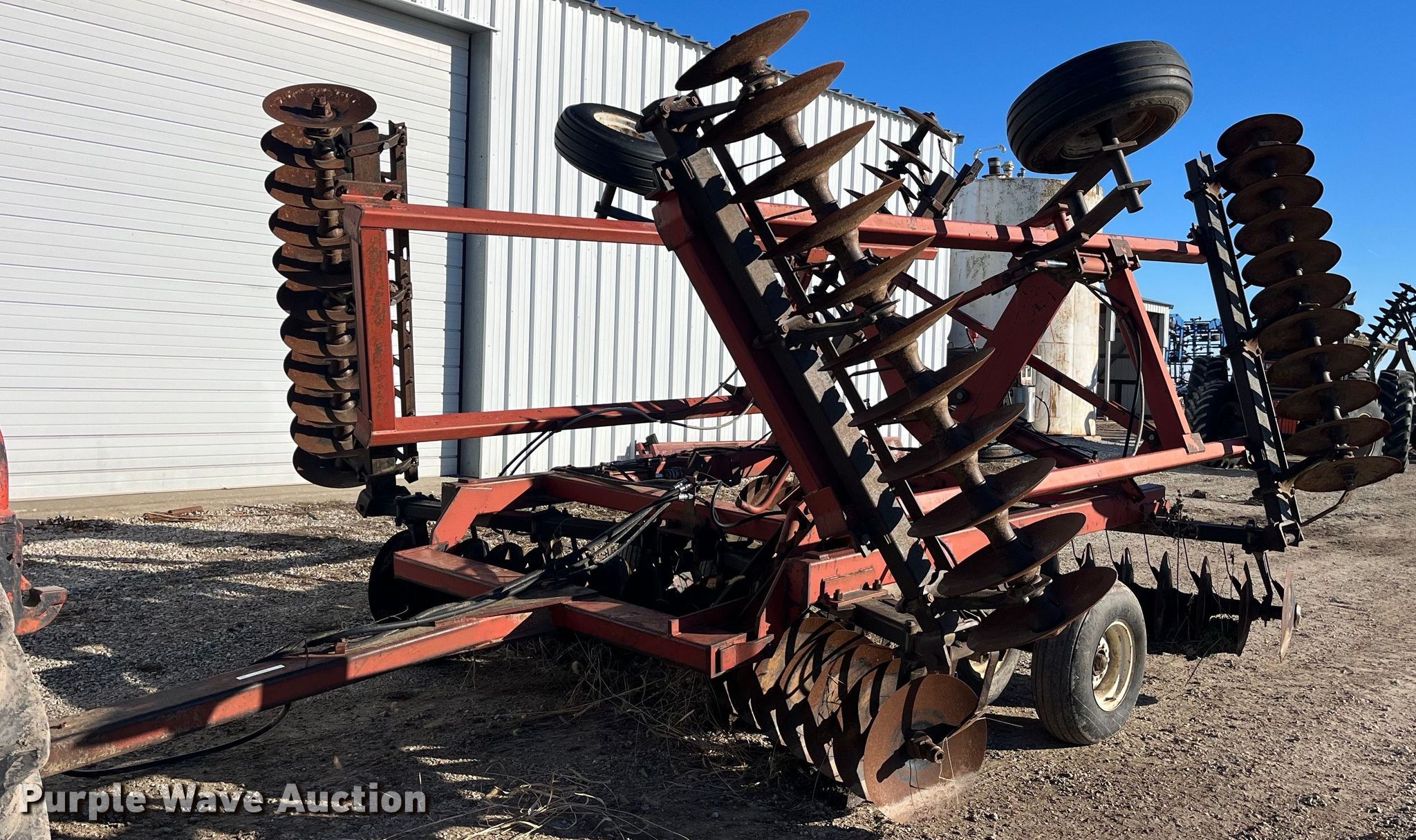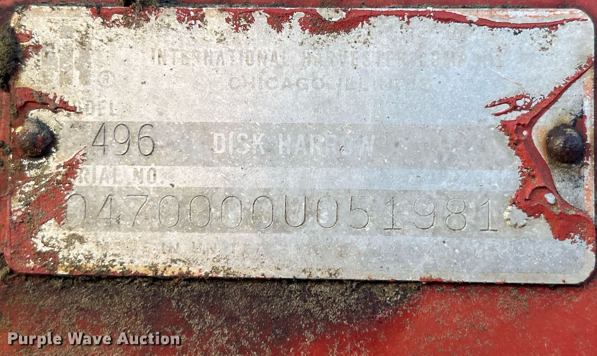 Purple Wave is selling a used Disk in Missouri. This item is a International Harvester 496 tandem disk with the following: Overall width: 18' 10", Serial: 0470000U051981