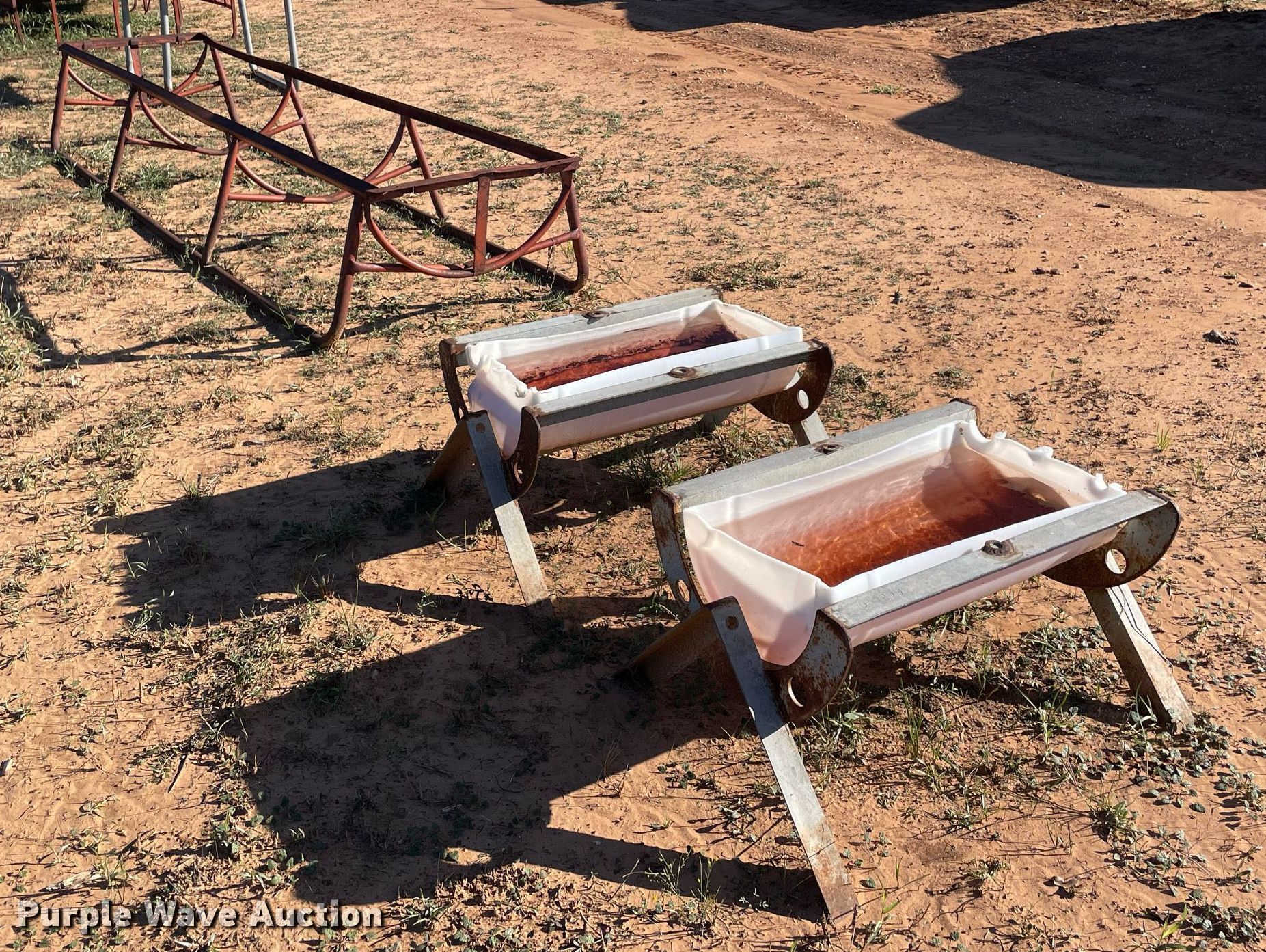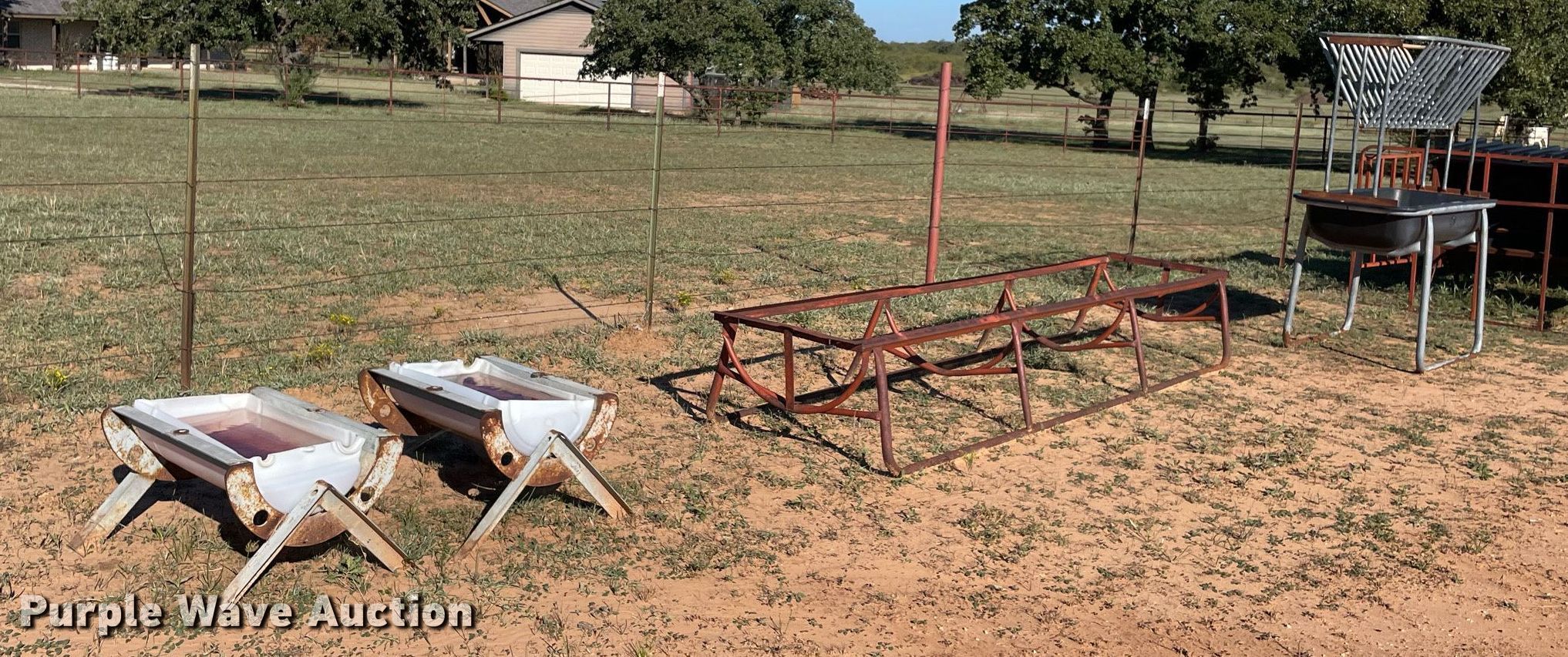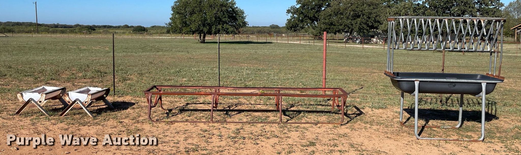 Purple Wave is selling a used Livestock Equip. in Texas. This item is a Livestock feeders with the following: (2) 24" x 16", 11' x 27", 5' x 2'