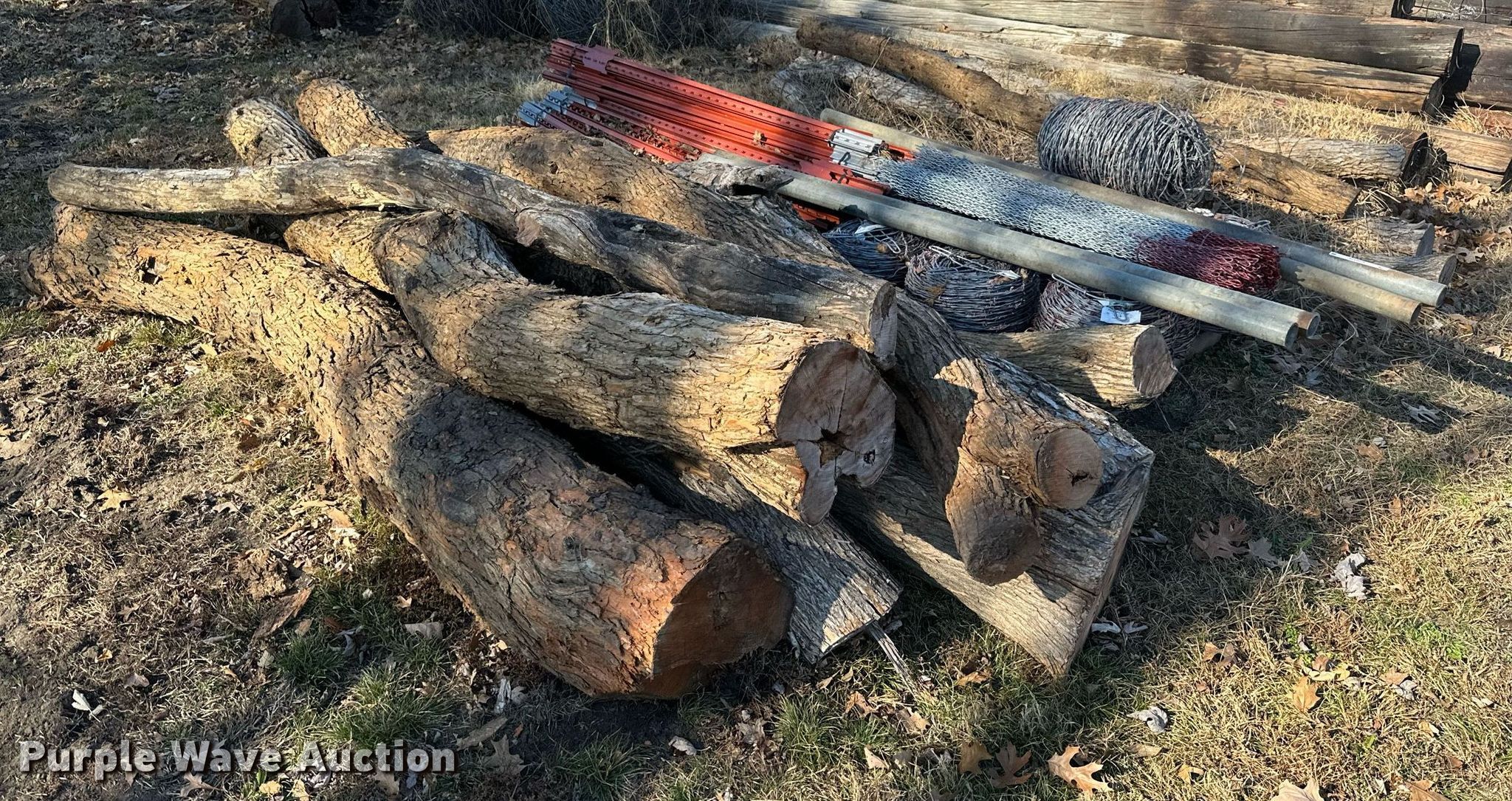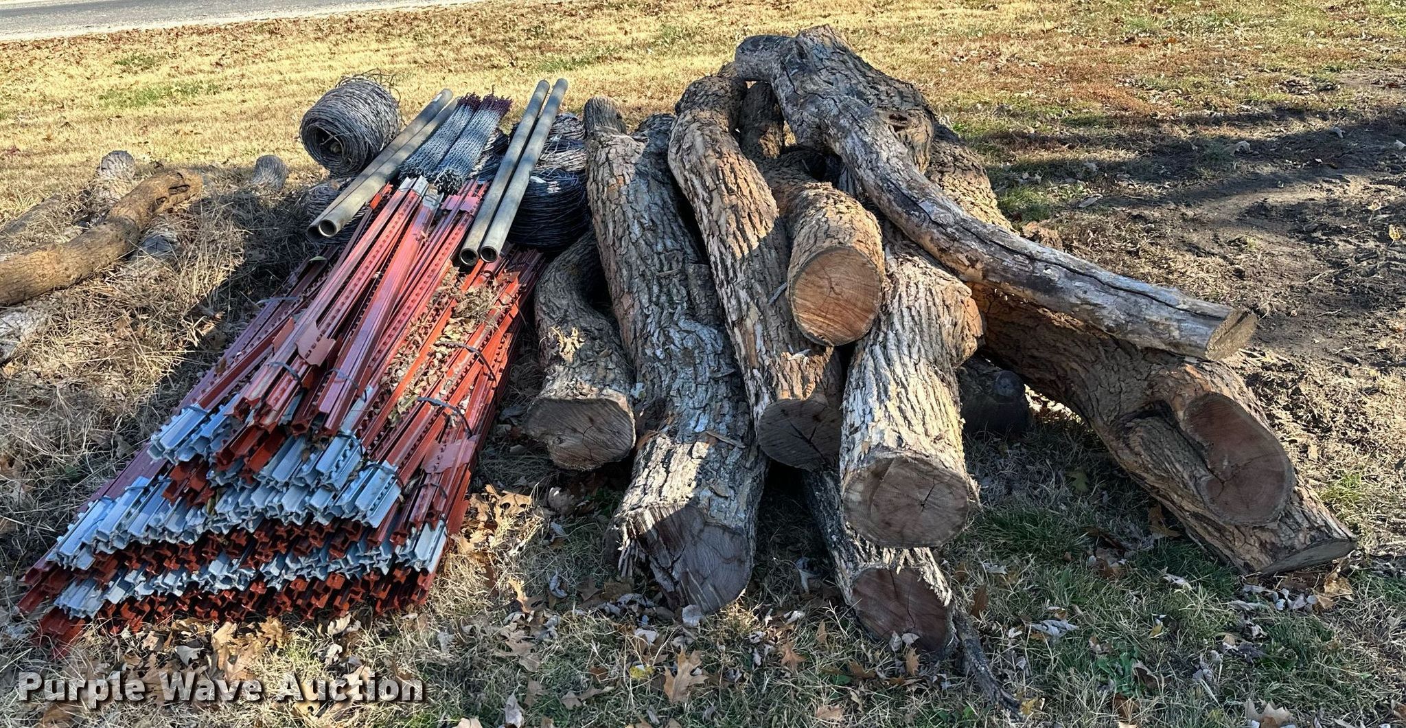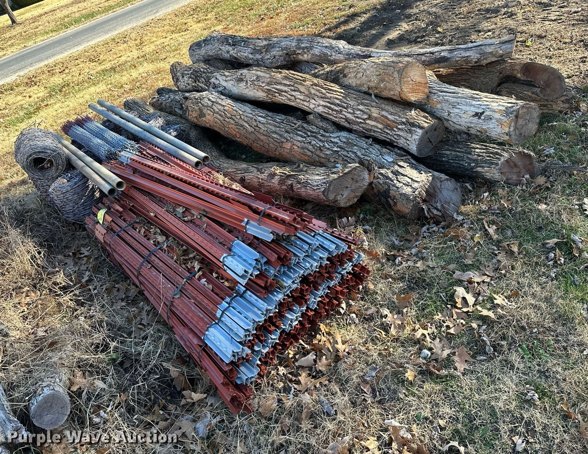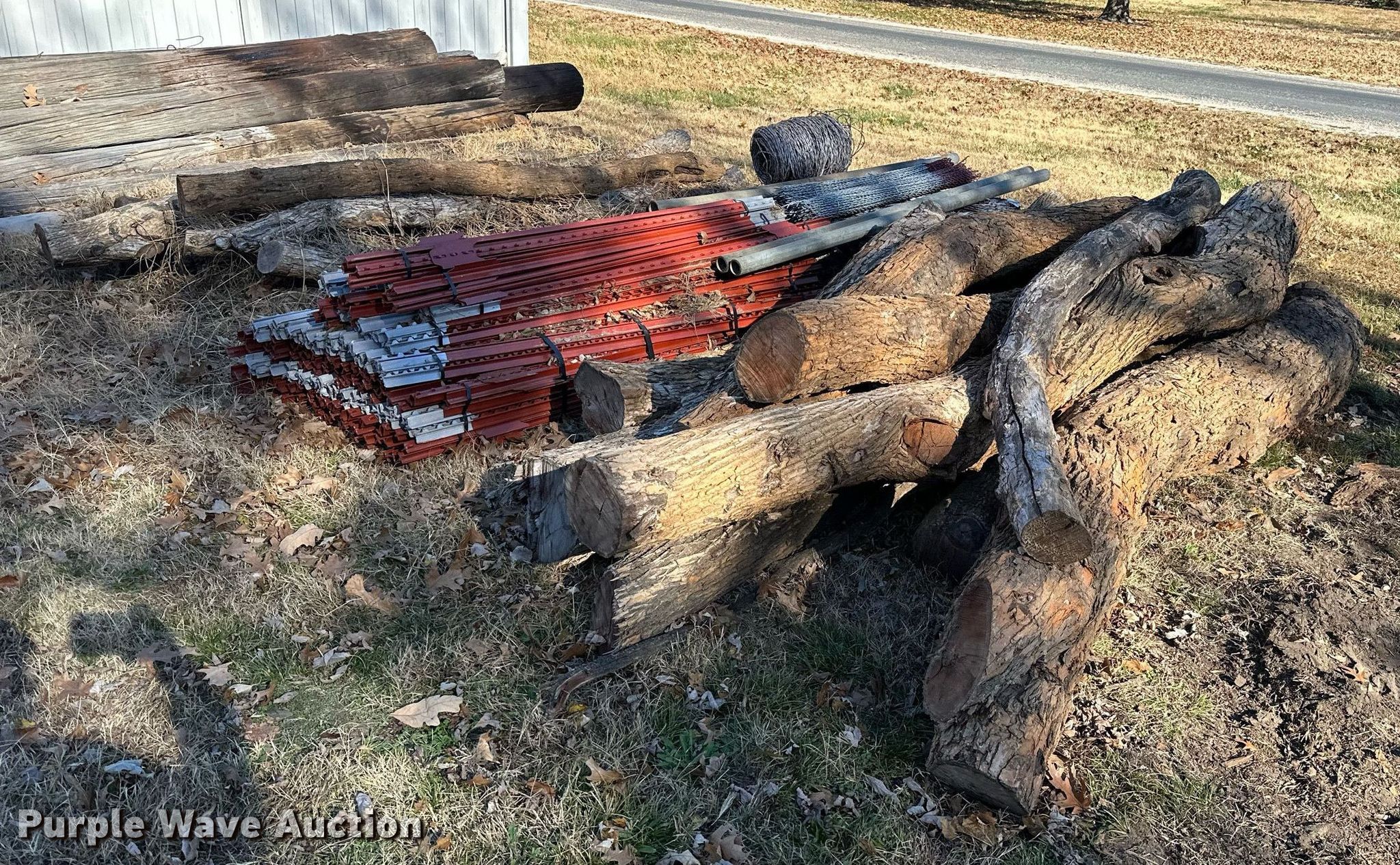 Purple Wave is selling a used Fencing Materials in Kansas. This item is a Fencing materials with the following: (9) large hedge posts, (10) rolls of barbed wire, (4) 2 3/8" x 7' brace bars, (2) bundles of stays, (250) 6' 1.33 T-post