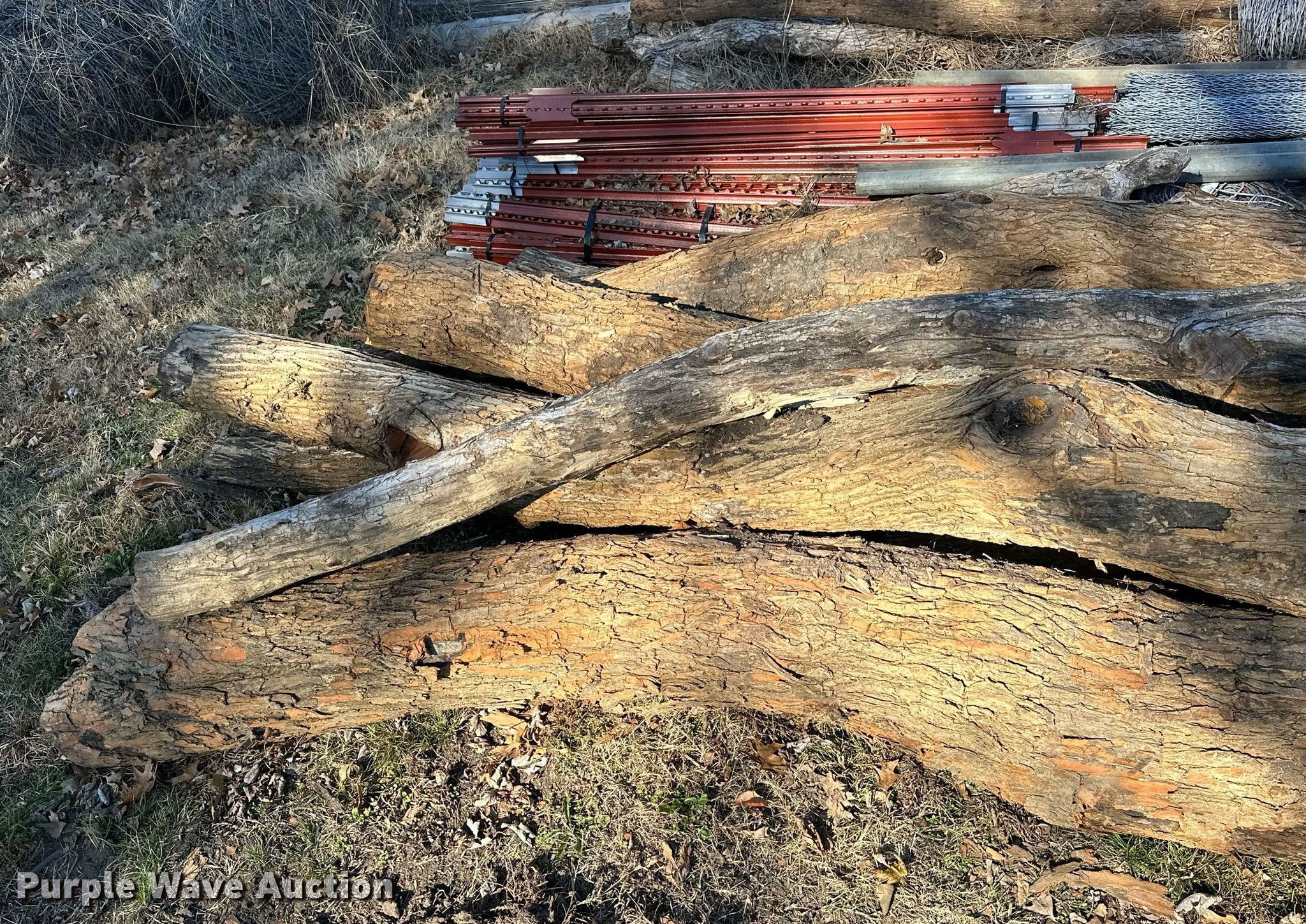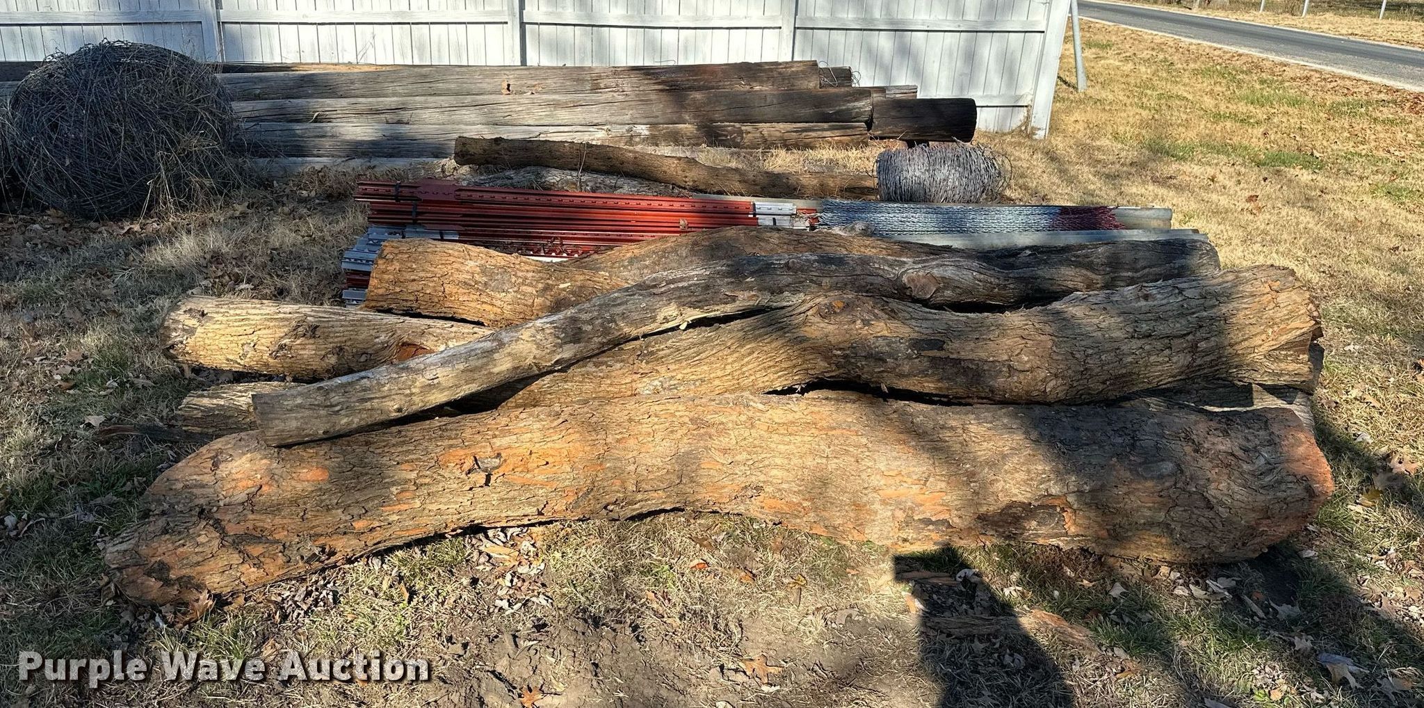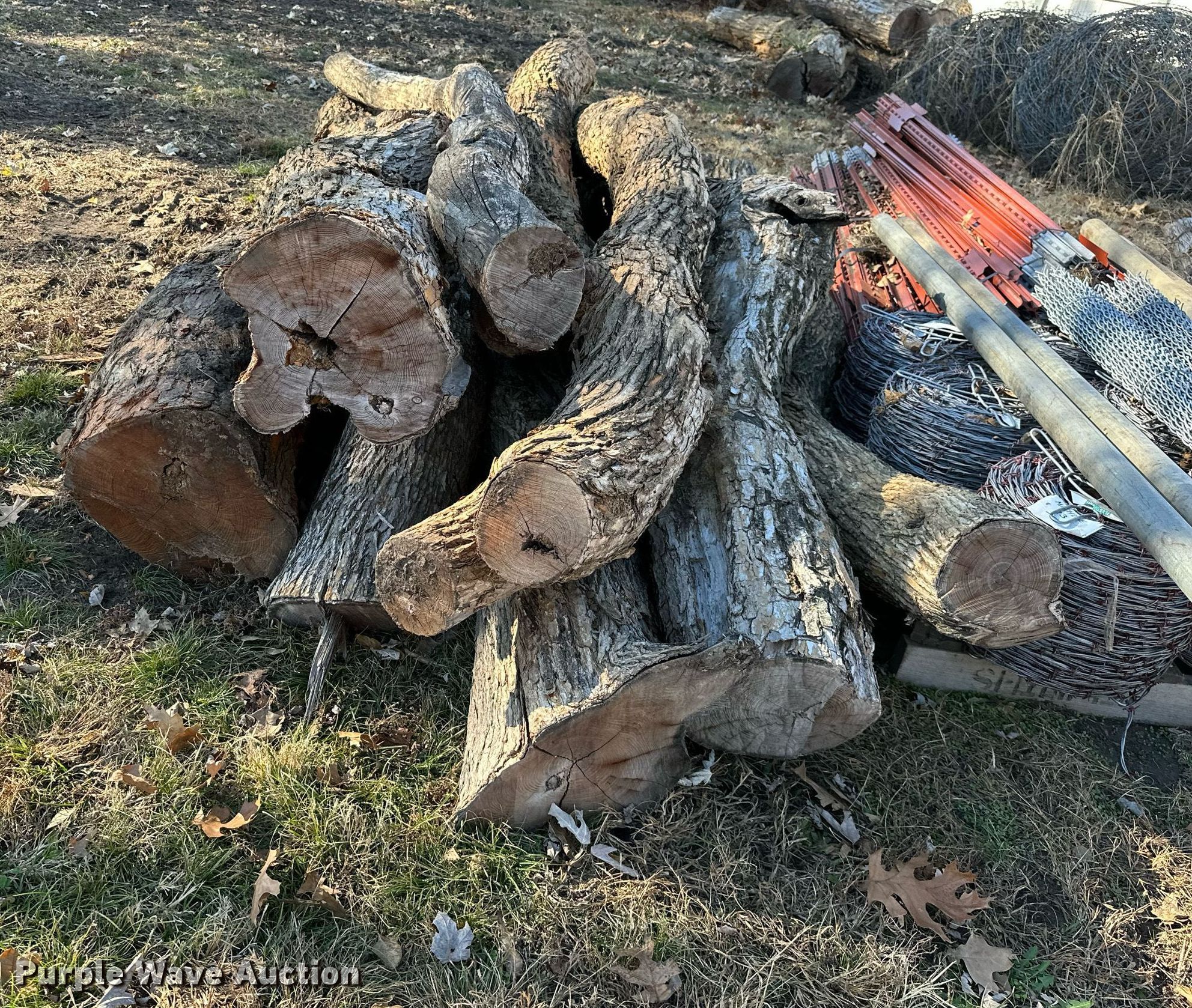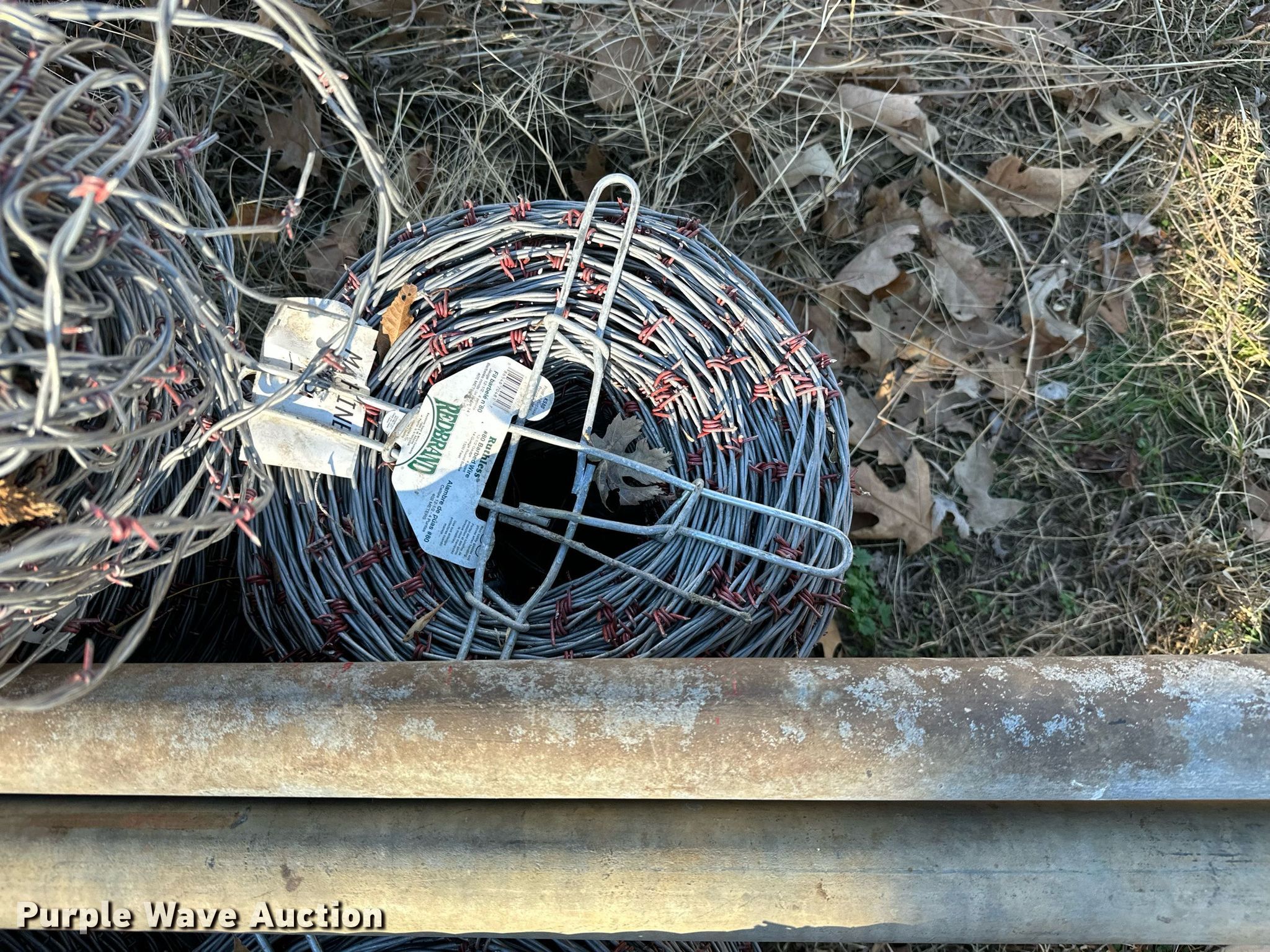Purple Wave is selling a used Fencing Materials in Kansas. This item is a Fencing materials with the following: (9) large hedge posts, (10) rolls of barbed wire, (4) 2 3/8" x 7' brace bars, (2) bundles of stays, (250) 6' 1.33 T-post