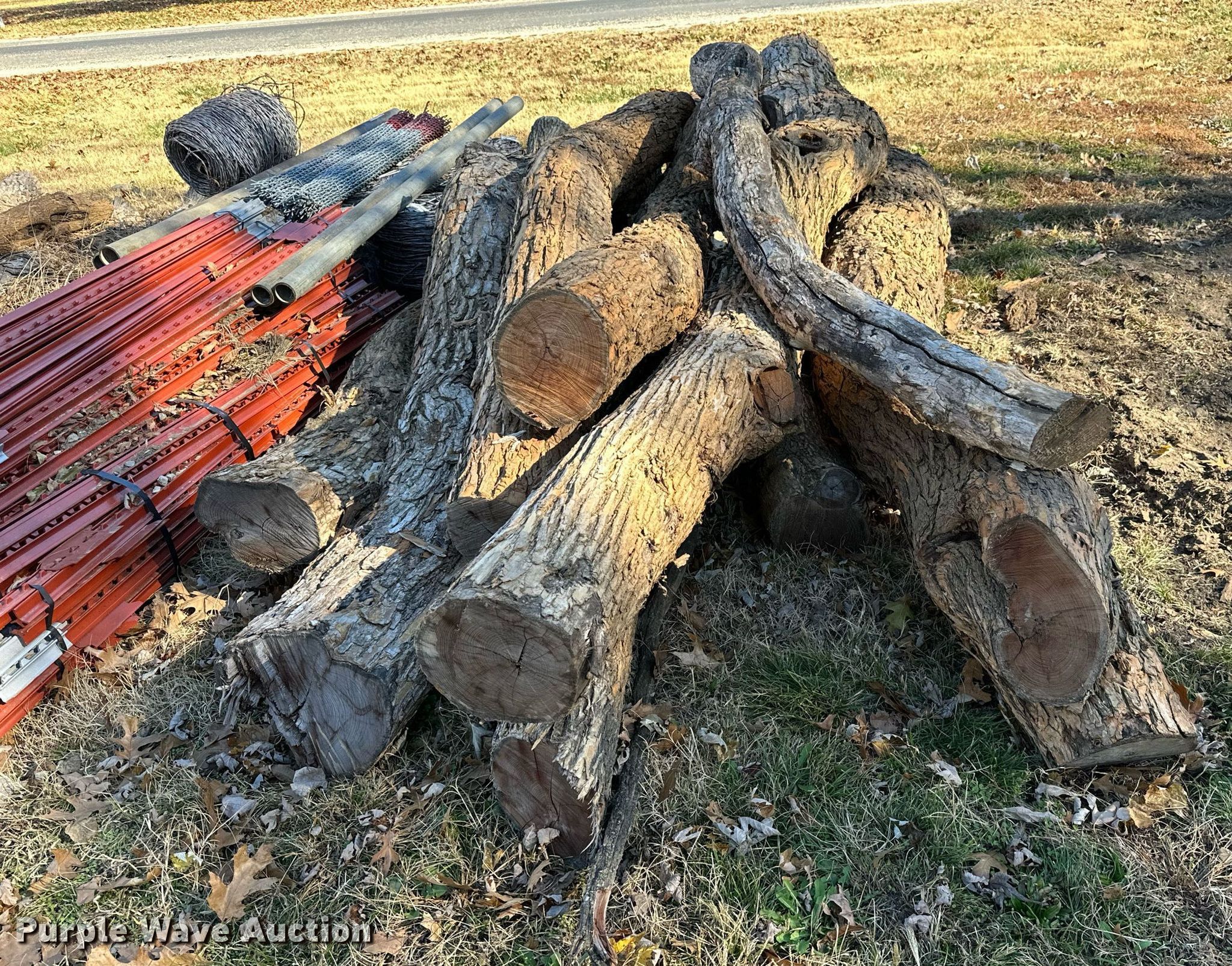 Fencing materials. (9) large hedge posts, (10) rolls of barbed wire, (4) 2 3/8" x 7' brace bars , (2) bundles of stays, (250) 6' 1.33 T-post. Mound Valley, KS 67354