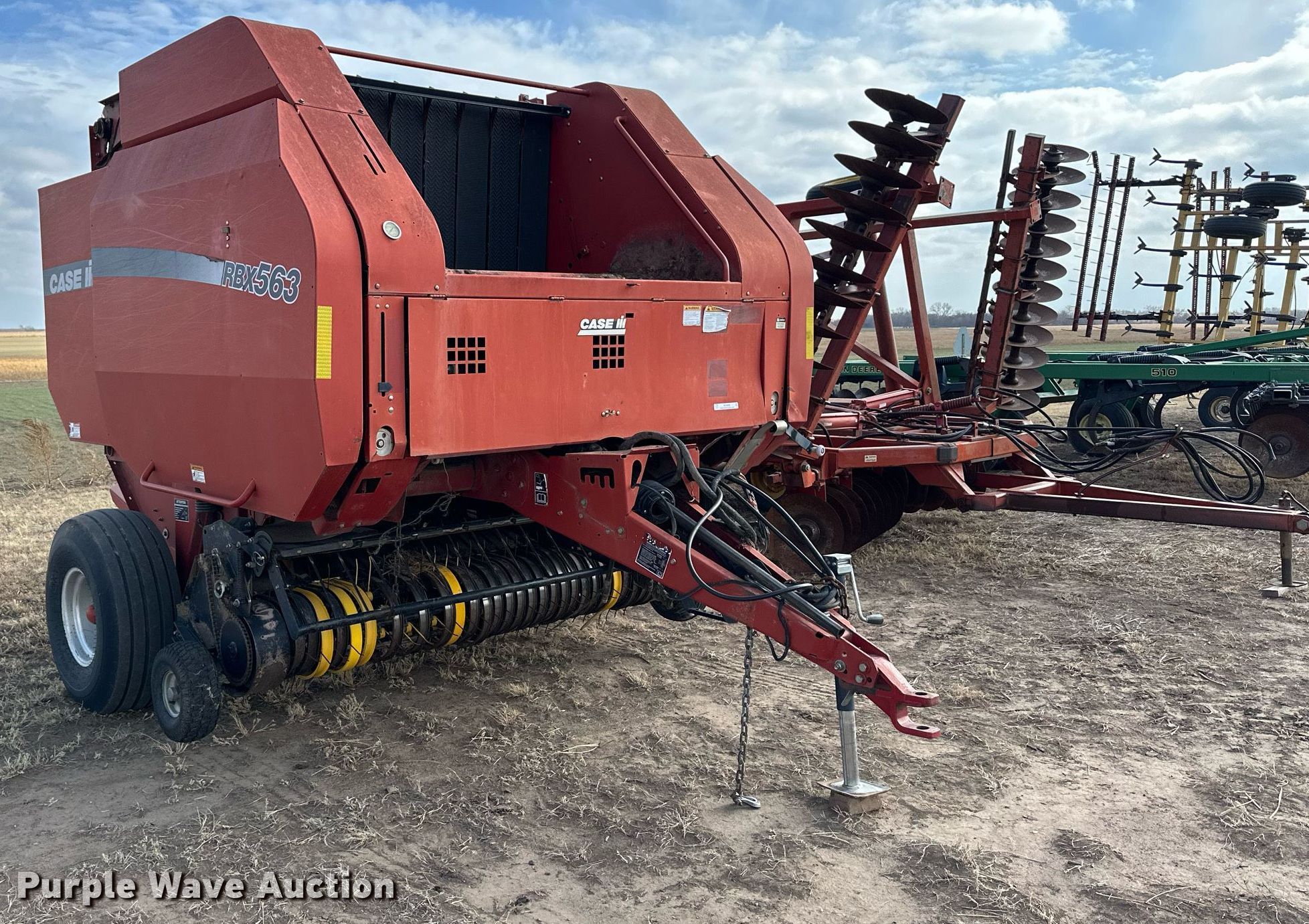 Purple Wave is selling a used Round Baler in Kansas. This item is a Case IH RBX563 round baler with the following: Serial: Y5NO11528