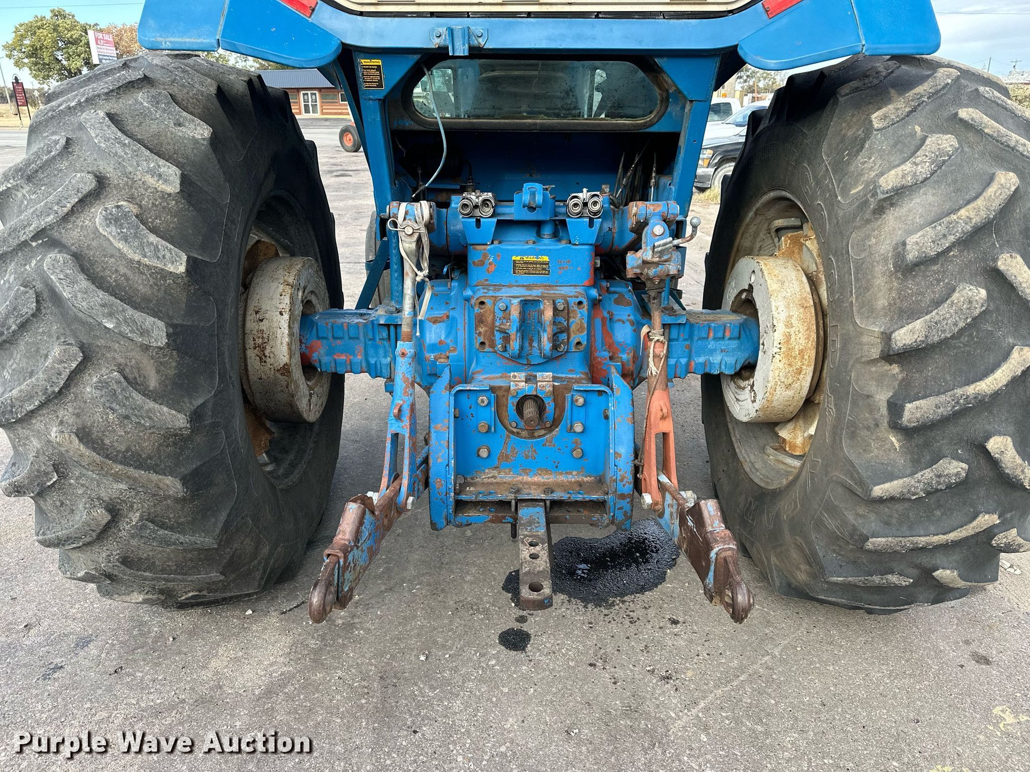Ford TW-30 tractor. Hours: 7,676 on meter. Engine Ford, Cylinders: 6, Fuel type: Diesel. Transmission Dual power, 16F - 4R. Operators station Heat. Features PTO: 1 3/4" 1000, Three point, Hydraulic remote sets Rear: 2, Suitcase weights: 12. Tires Front: 11.00-16, Rear: 20.8-38, Wheel weights: 7, Wheelbase: 110.5". Notes Dead battery. Leiker Farms & Trucking. 506 Vine Street. Hays, KS 67601