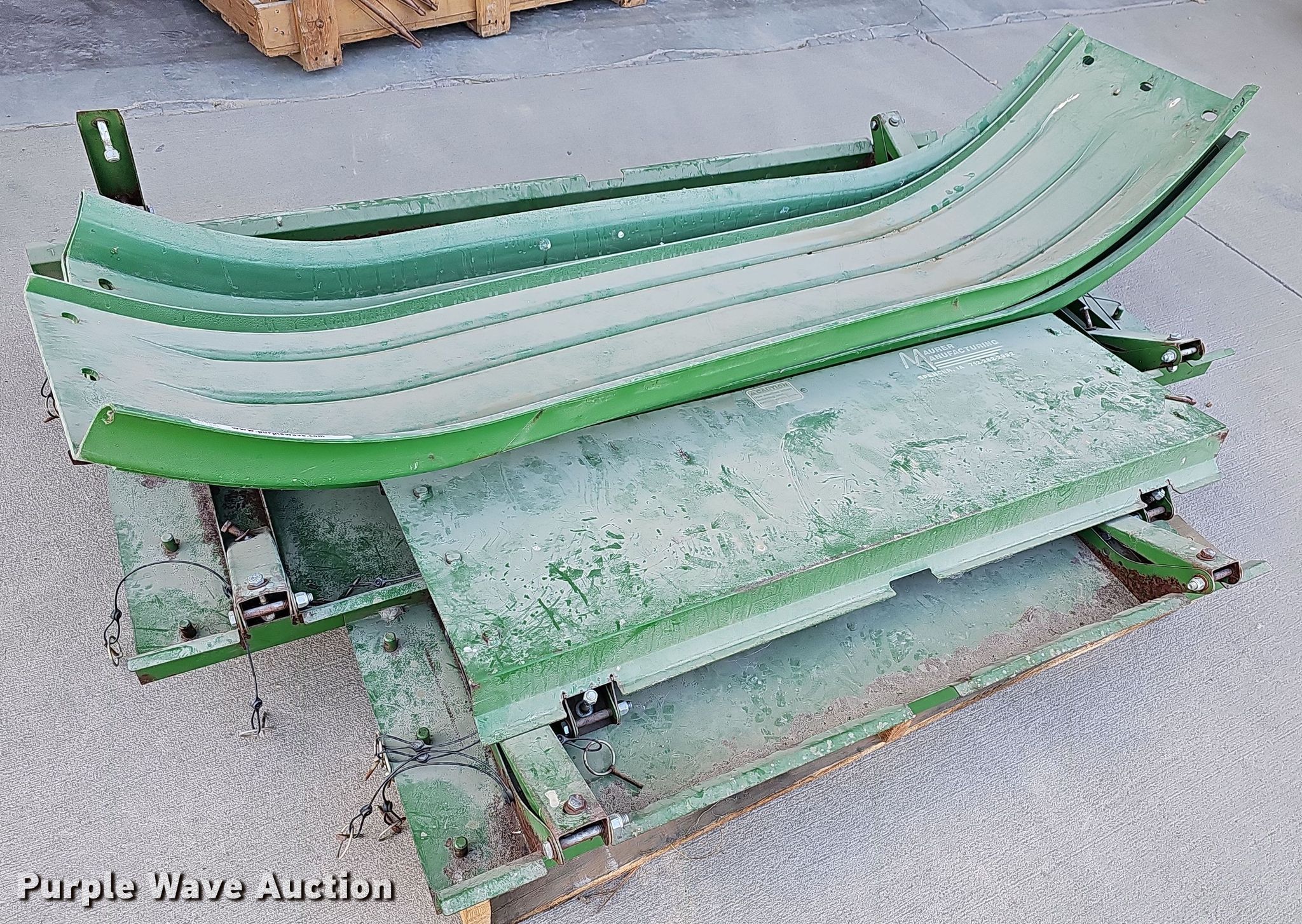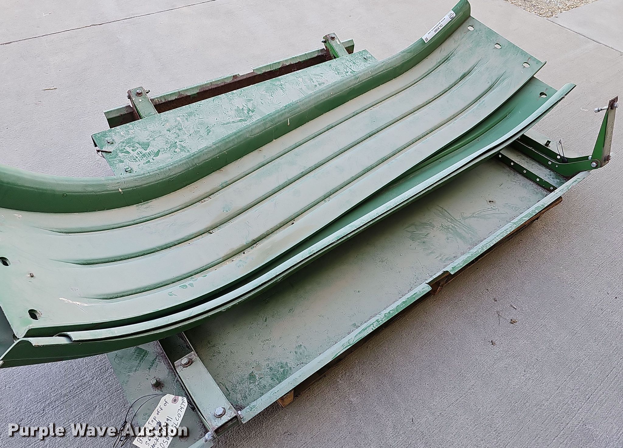 Purple Wave is selling a used Harvester Attach. in Kansas. This item is a Harvester parts with the following: (4) fenders, Covers, Fit John Deere combine