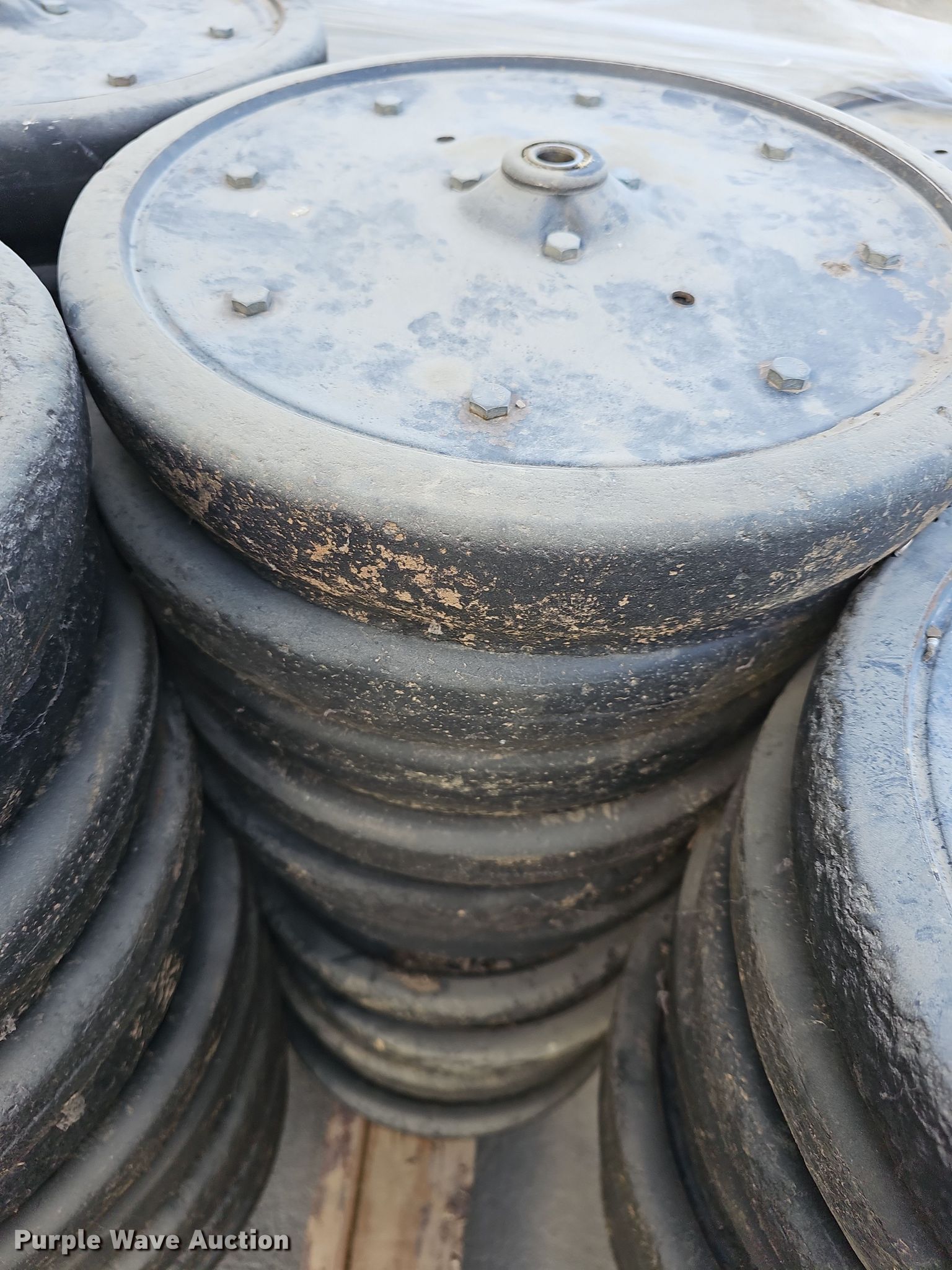 Approximately 58 16" rubber closer wheels. PrairieLand Partners. 1181 18th Rd. Clay Center, KS 67432