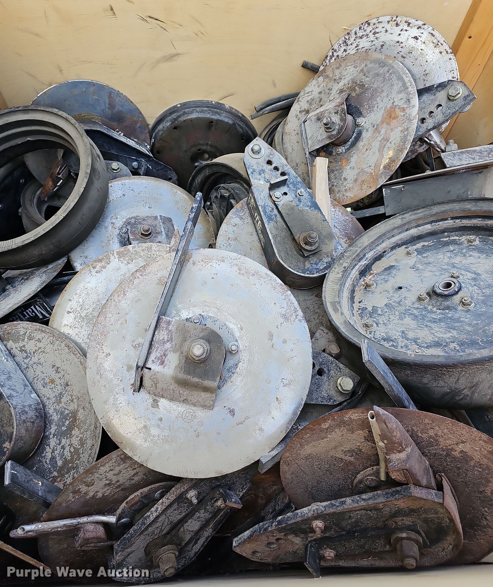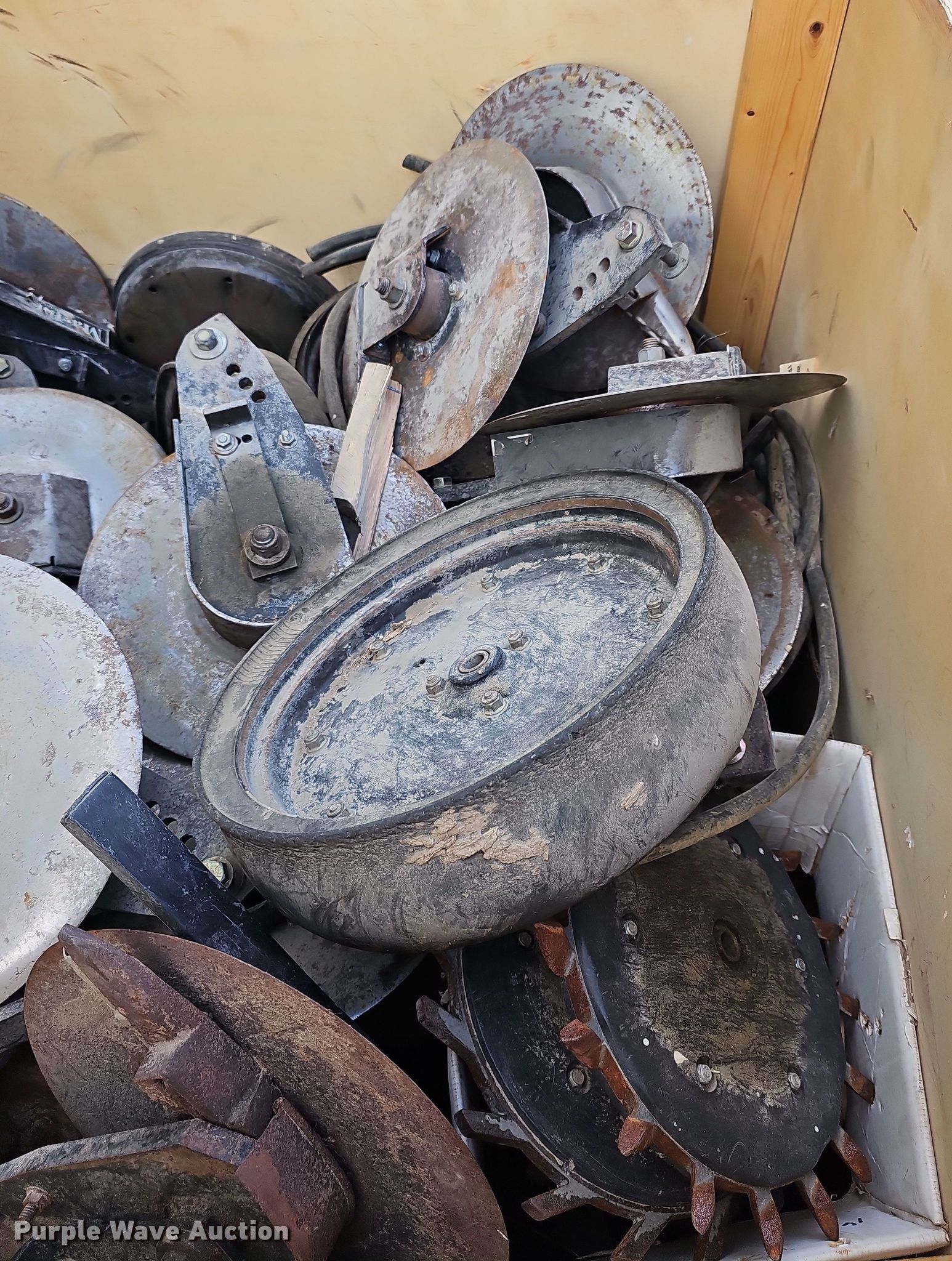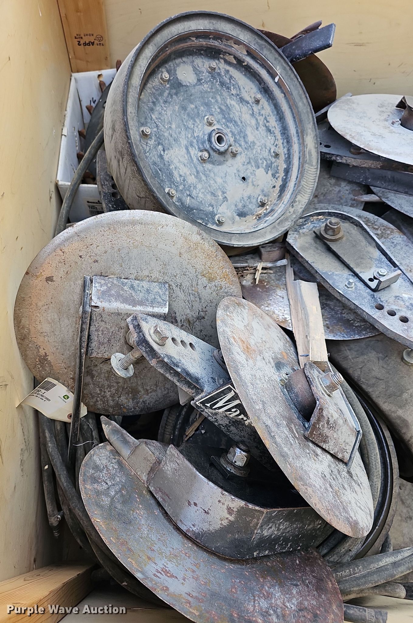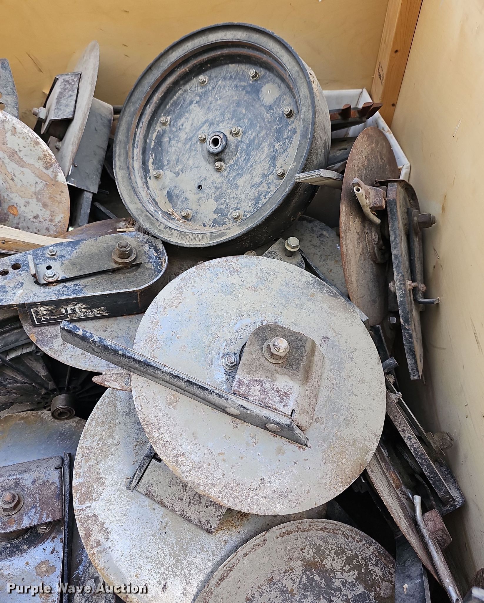 Purple Wave is selling a used Planter or Seeder Attach. in Kansas. This item is a Row closing system with the following: 15", Closing wheels, Scrapers and more, Fits John Deere 1791
